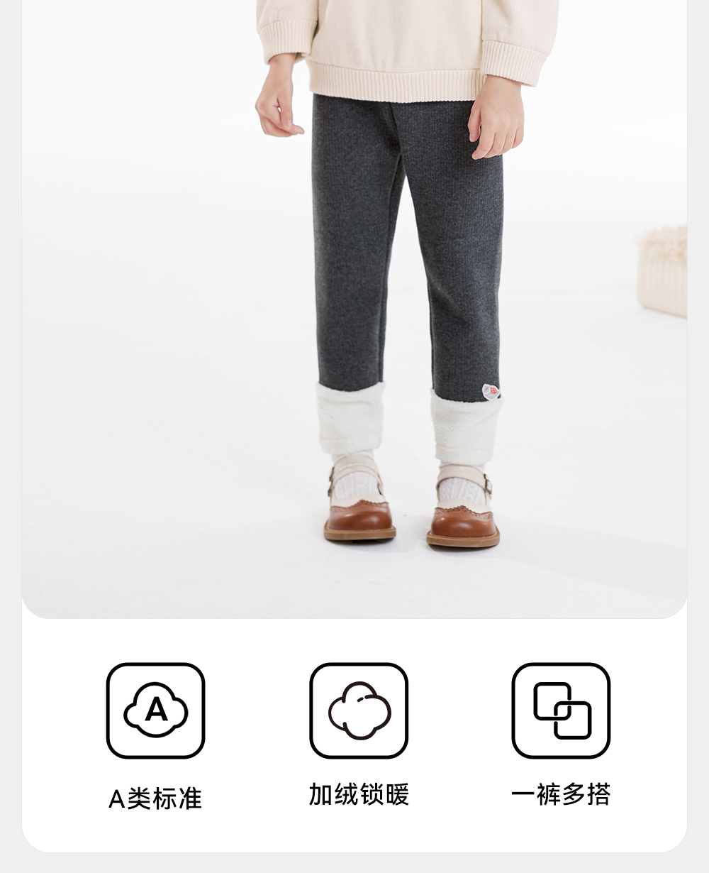 【商场同款】英氏女童打底裤秋冬摇粒绒保暖裤子百搭女宝长裤新款