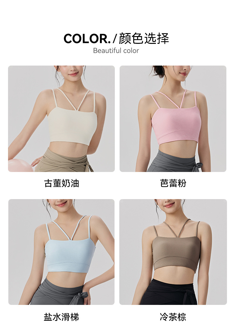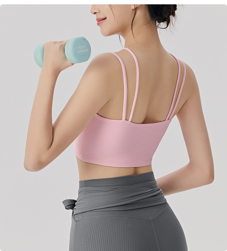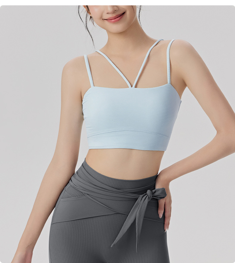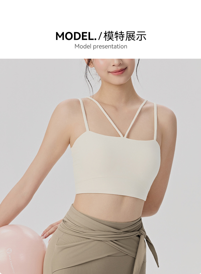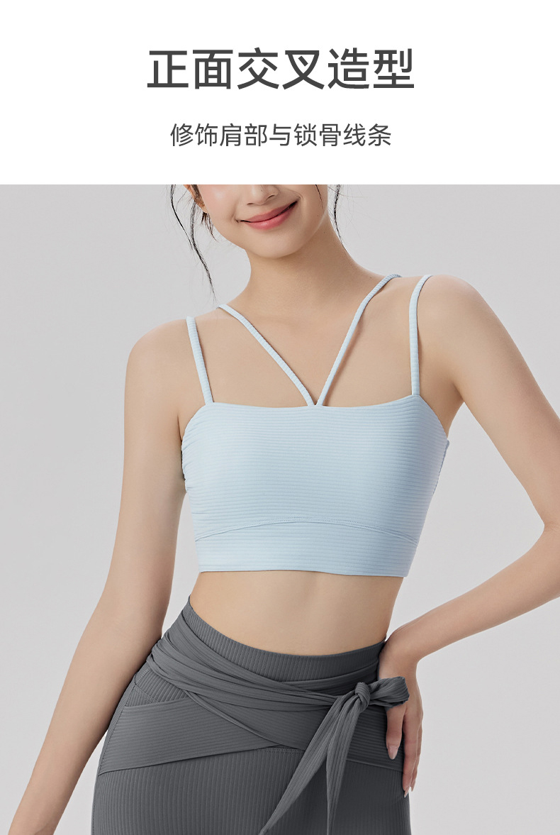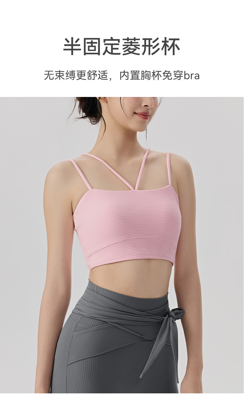 【限时秒】YOGACODE【火树银花系列】运动内衣女固定杯罗纹细肩吊带一体式瑜伽文胸健身内衣DWC116016