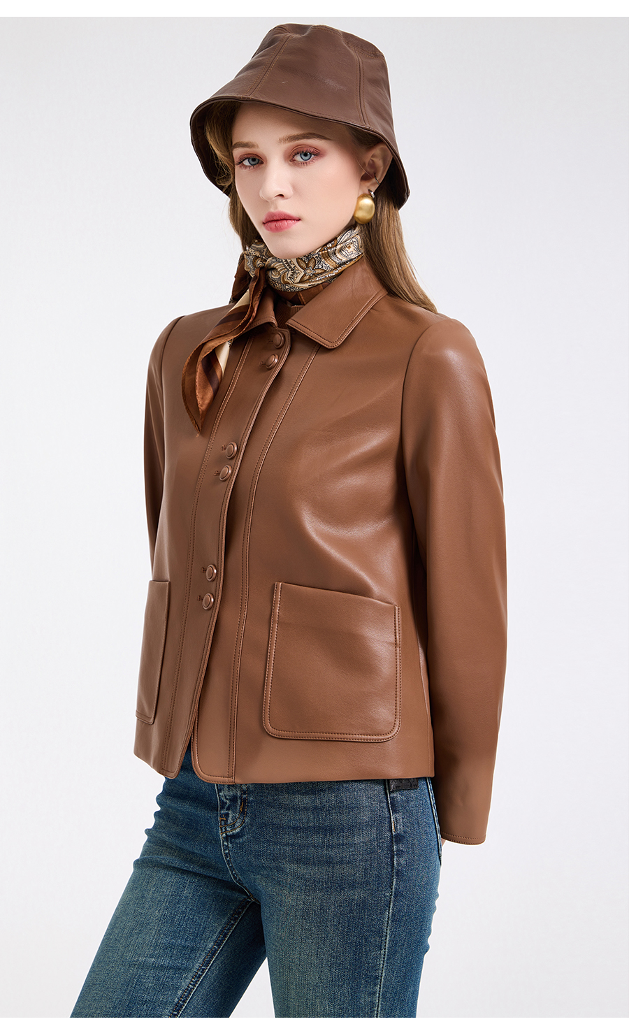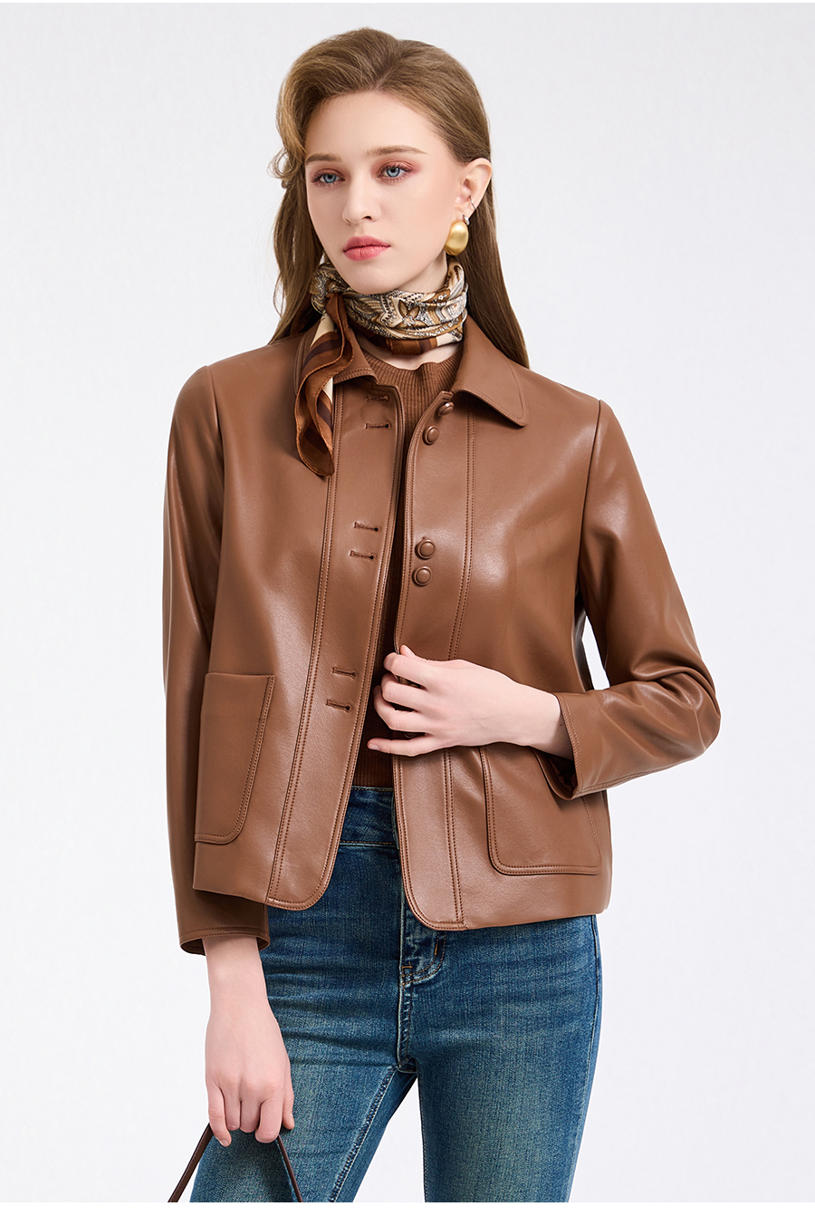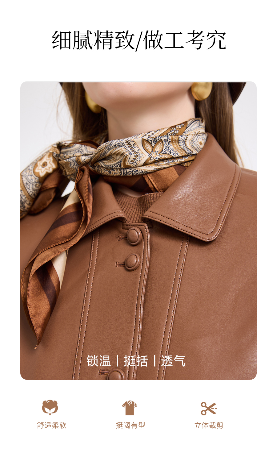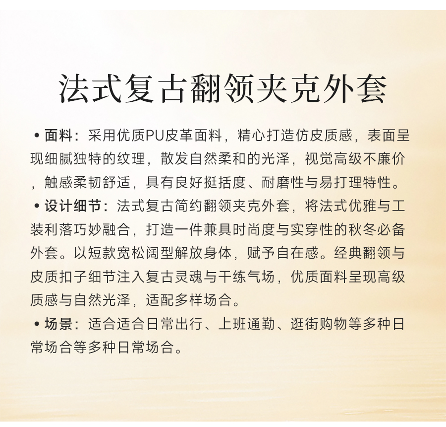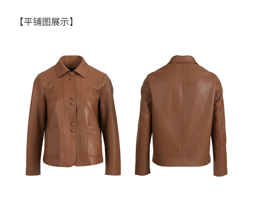 乔万尼复古翻领pu设计感简约利落感短外套ED4B748