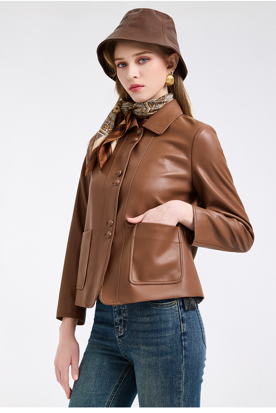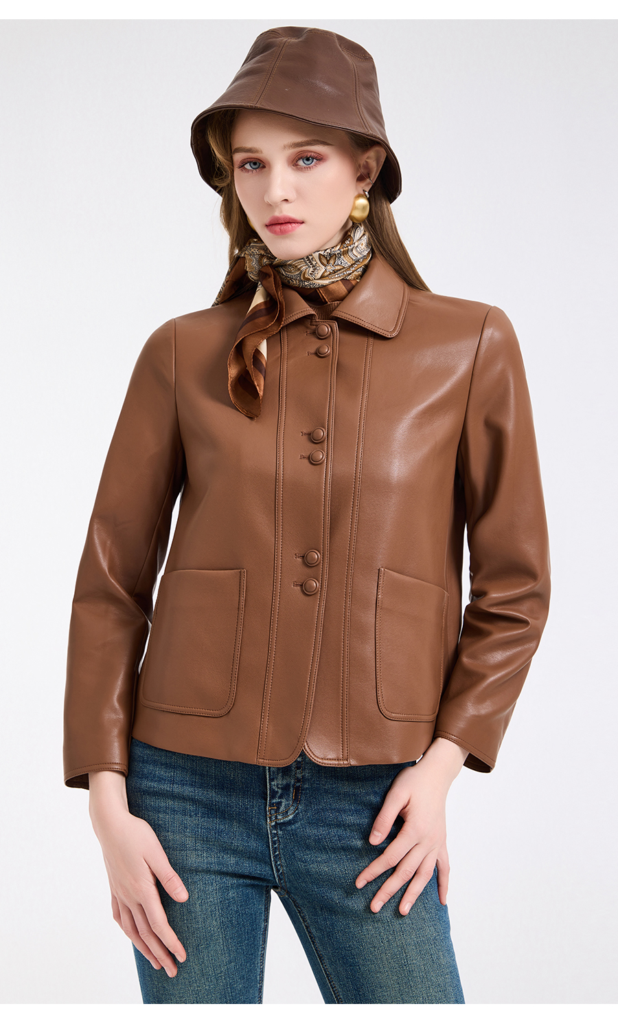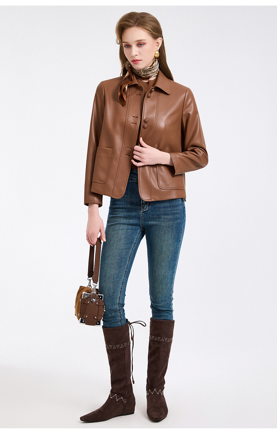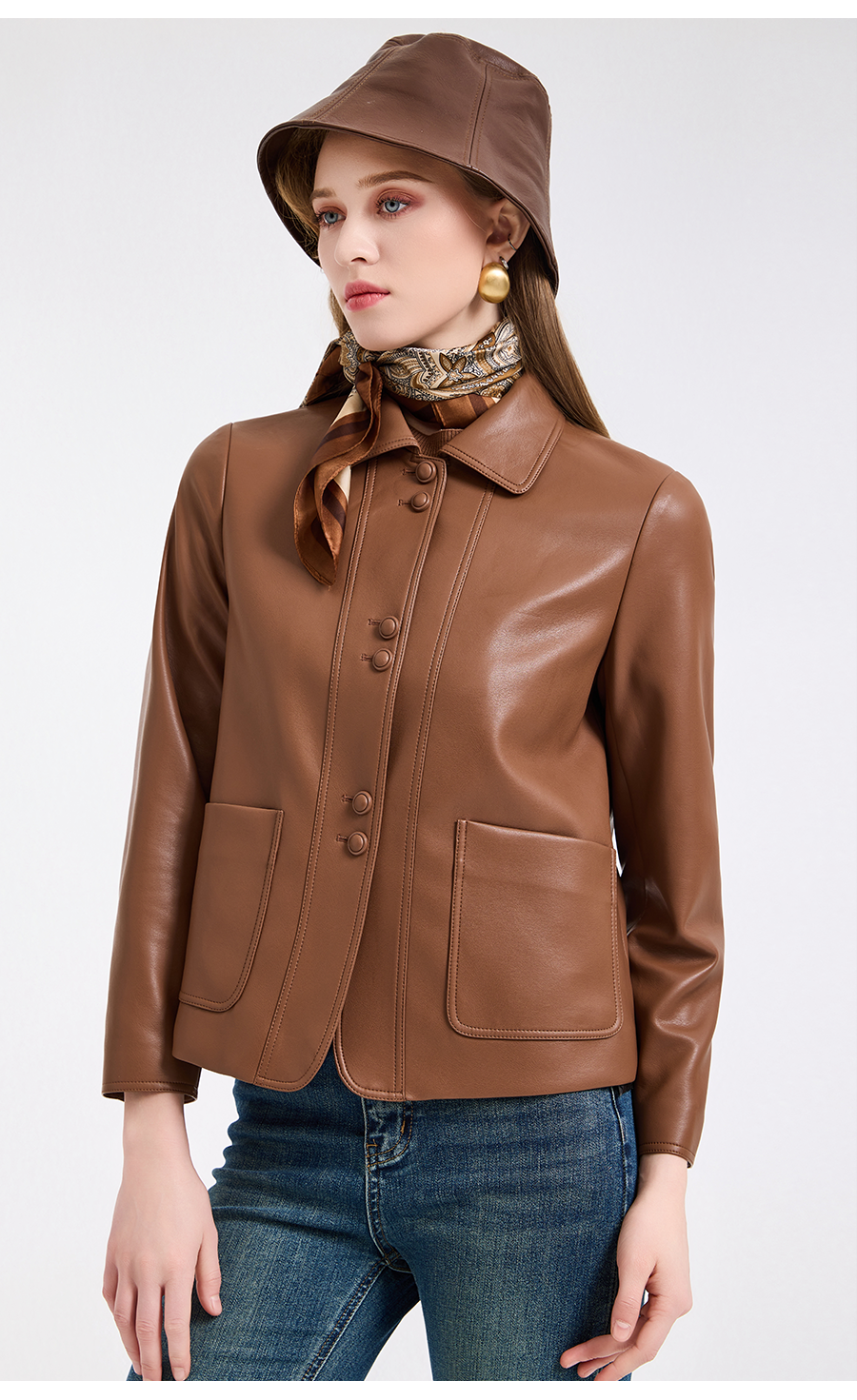 乔万尼复古翻领pu设计感简约利落感短外套ED4B748