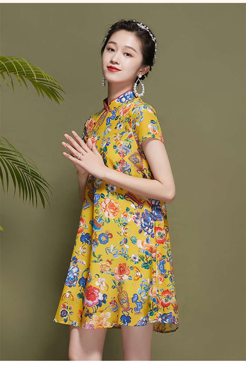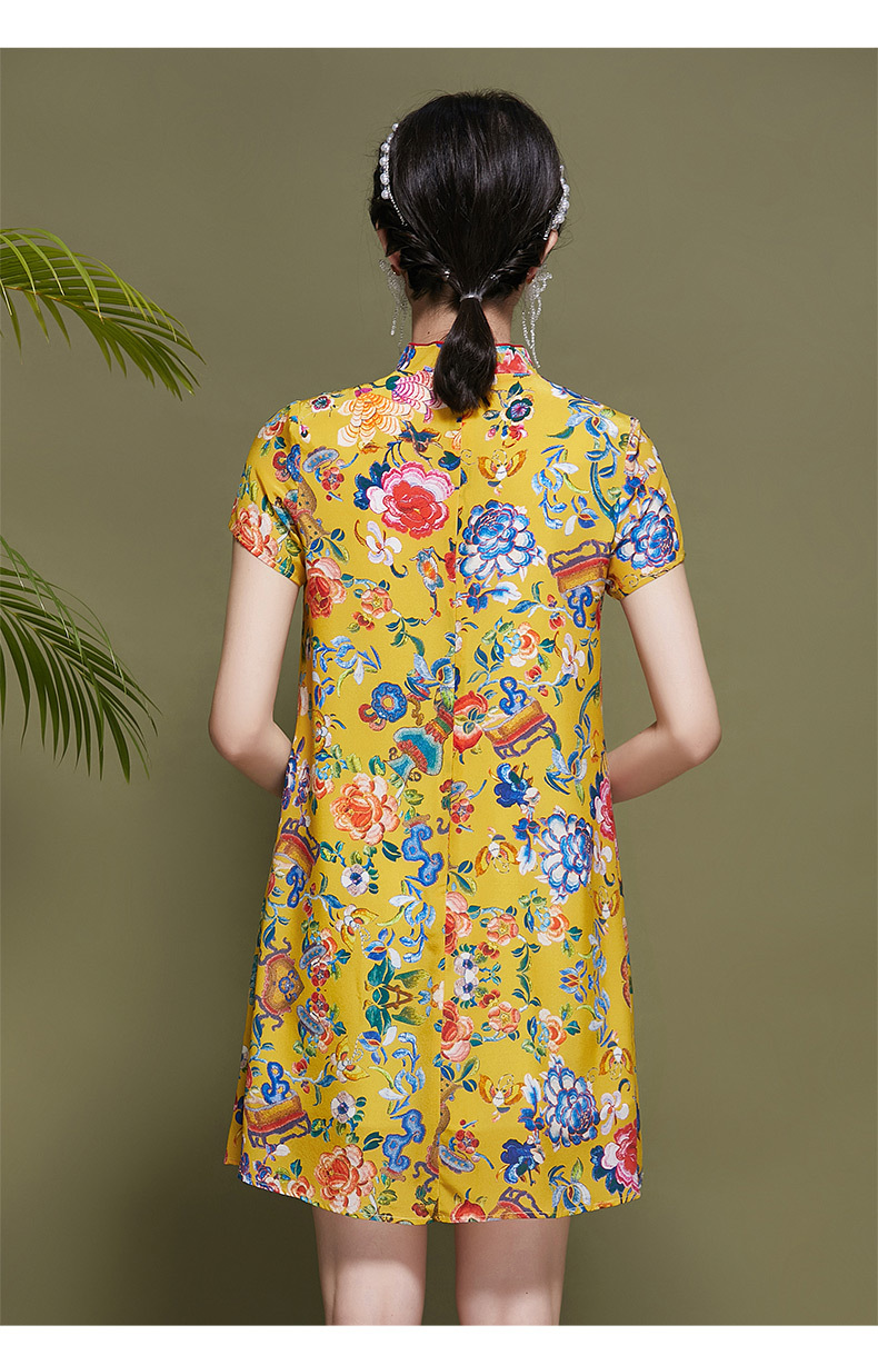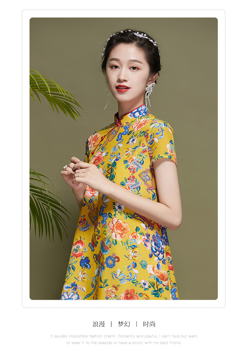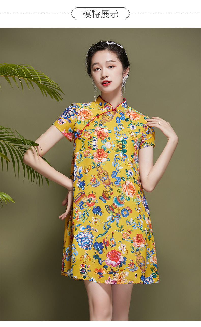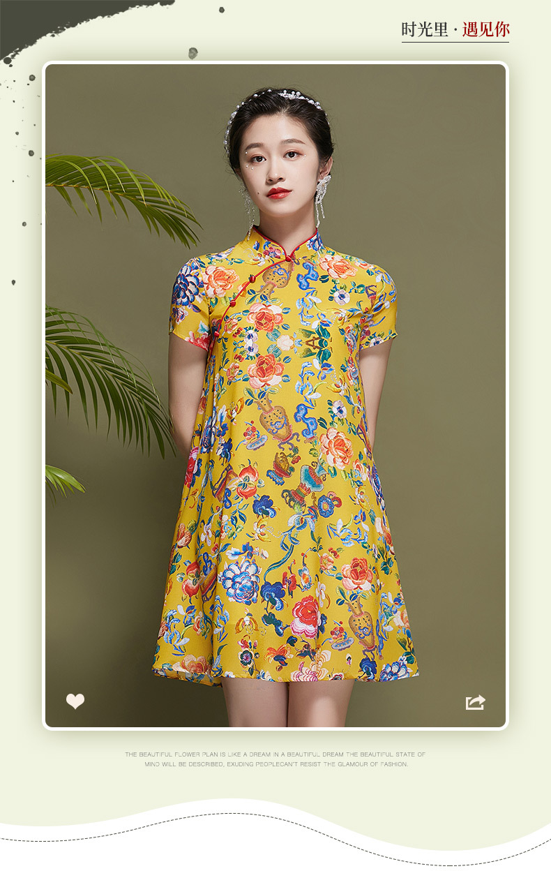 真丝印花改良旗袍裙新款中国风宽松短款连衣裙 OY21626