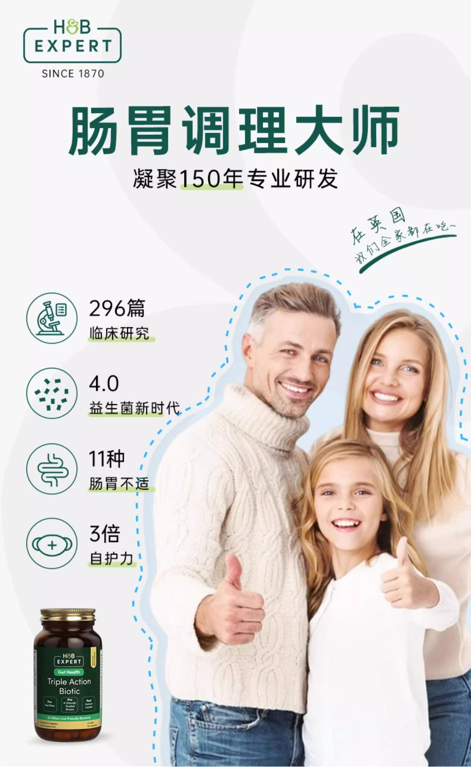 【赞赞专属】英国 HB荷柏瑞专家三重益生菌 60粒/瓶