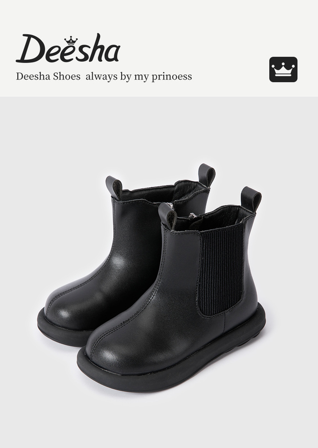笛莎Deesha 女童童鞋2025冬季新款短筒皮靴