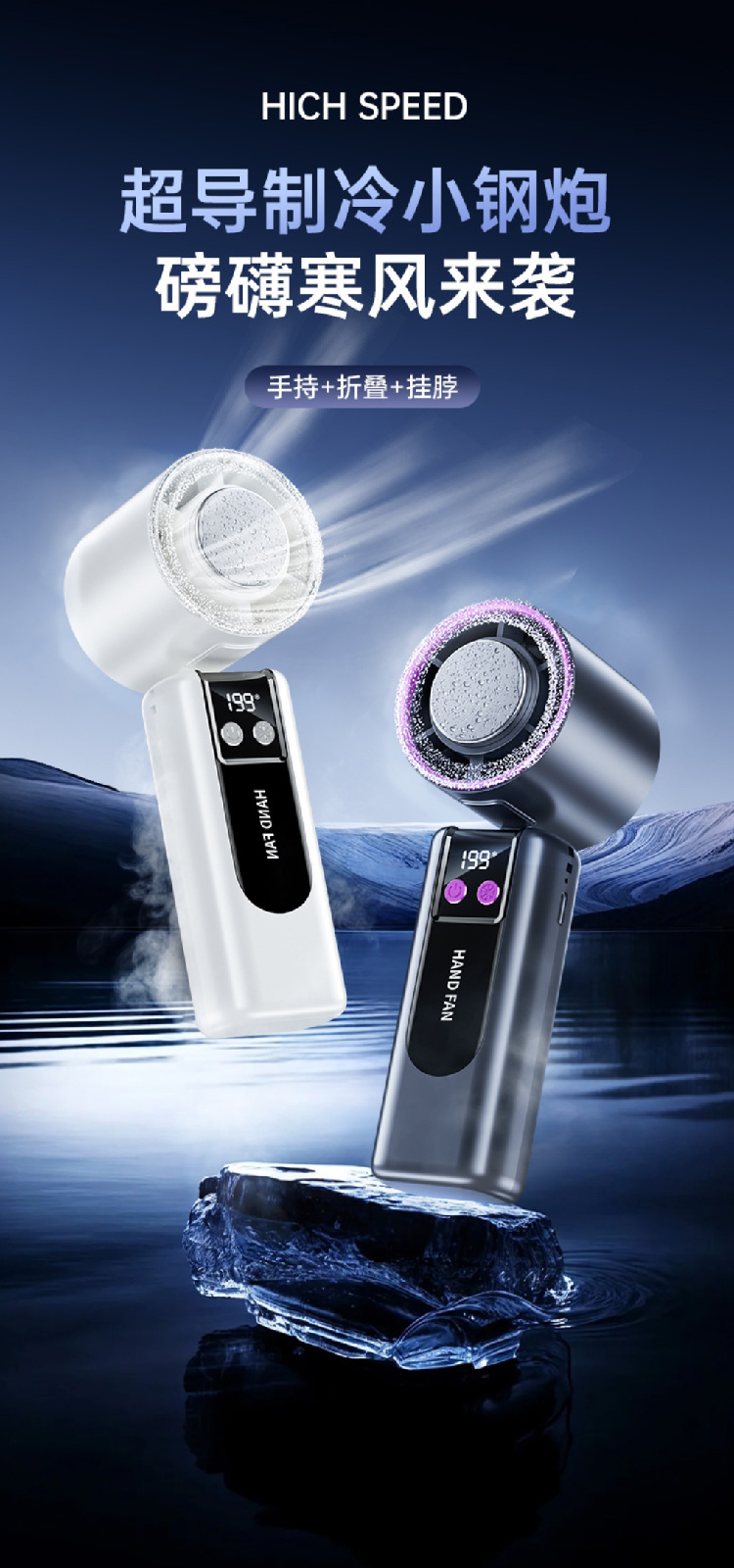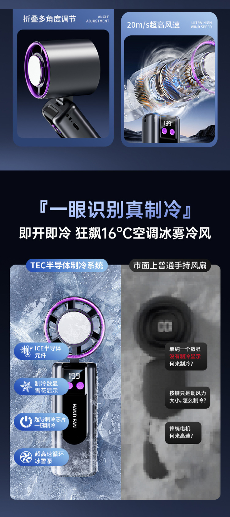 【冷风扇“小空调”】2025新款冰敷手持高速风扇半导体制冷 手持风扇便携式充电折叠小风扇