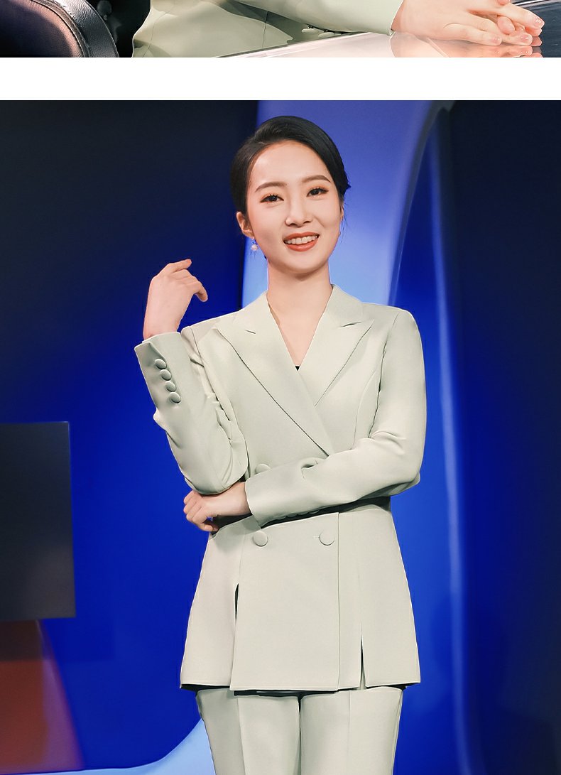 IWY/绿色主持人西装套装女气质职业装通勤演讲正装工作服两件套CP12307