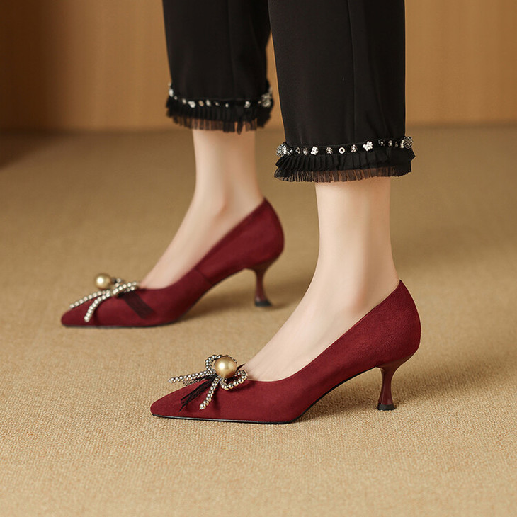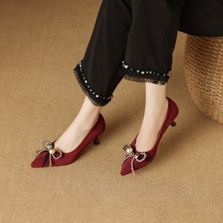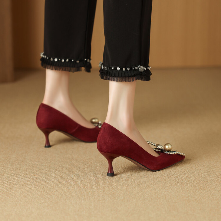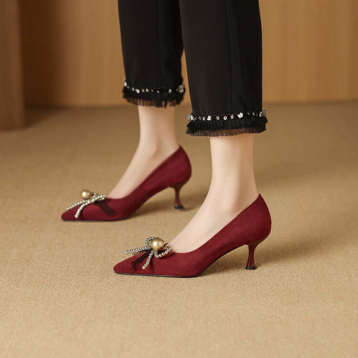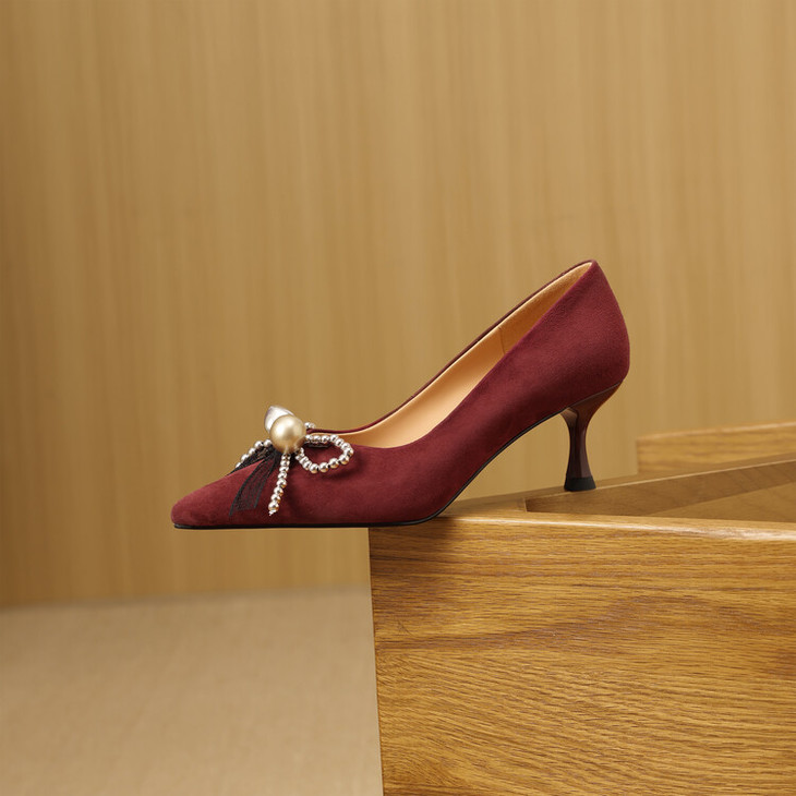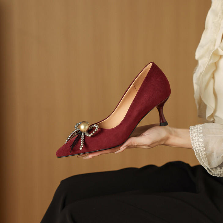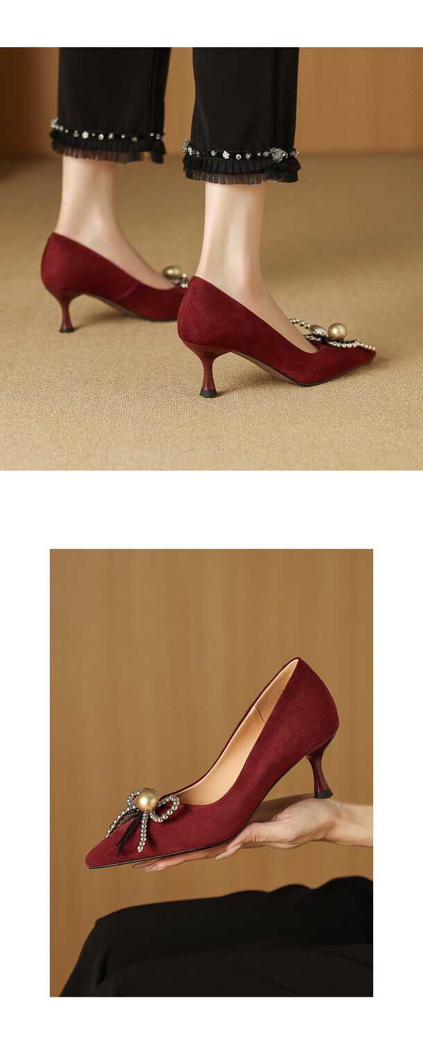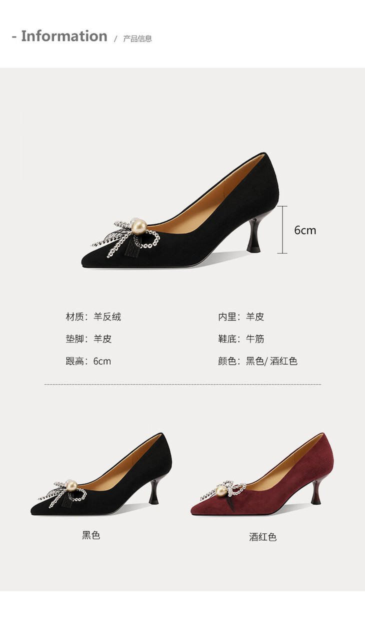 【鞋底】:牛筋底【跟高】:6CM 【内里材质】:头层羊皮 【膛底材质】:羊皮 【颜色分类】: 黑色 酒红色【尺码】:34-39