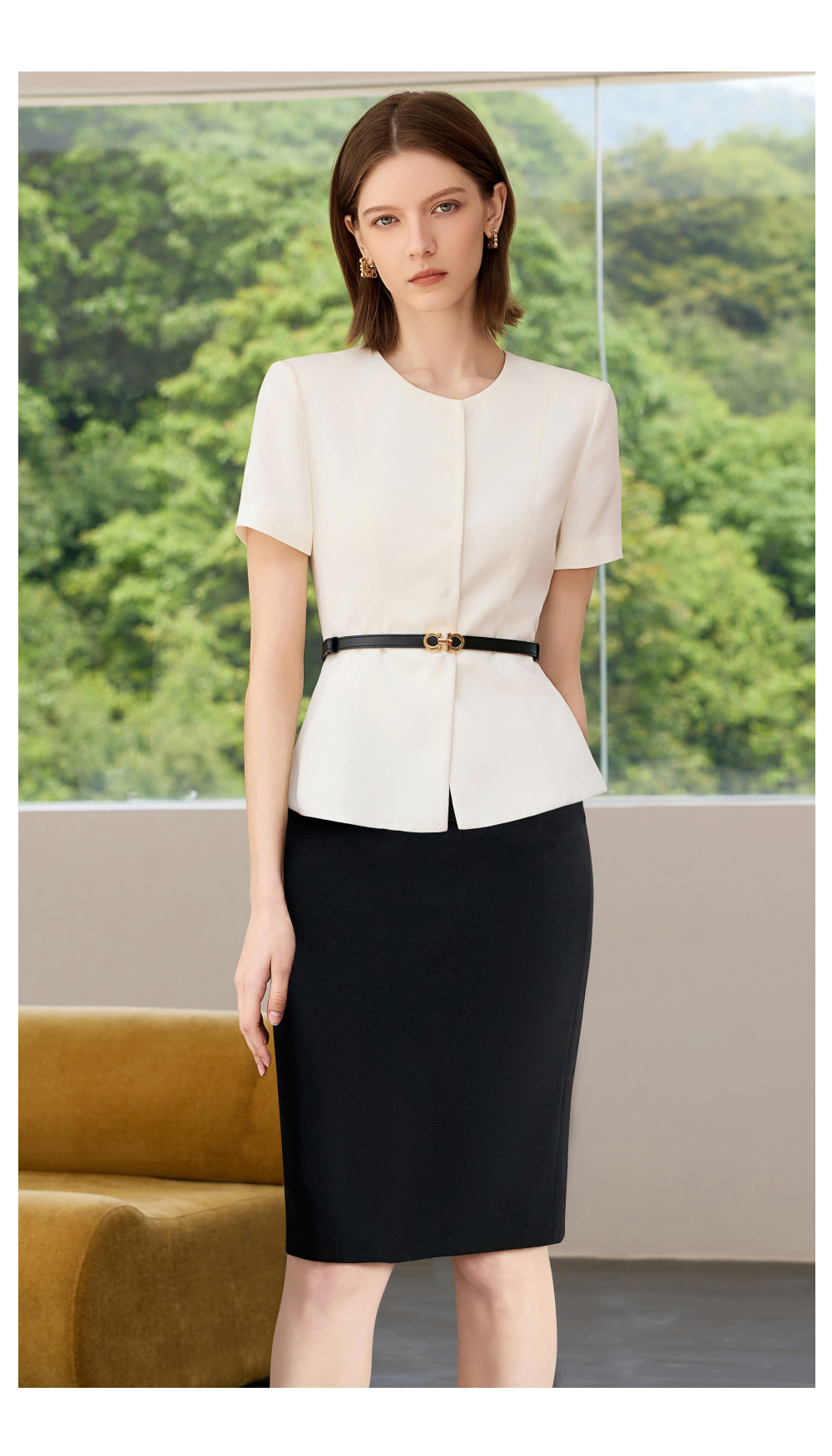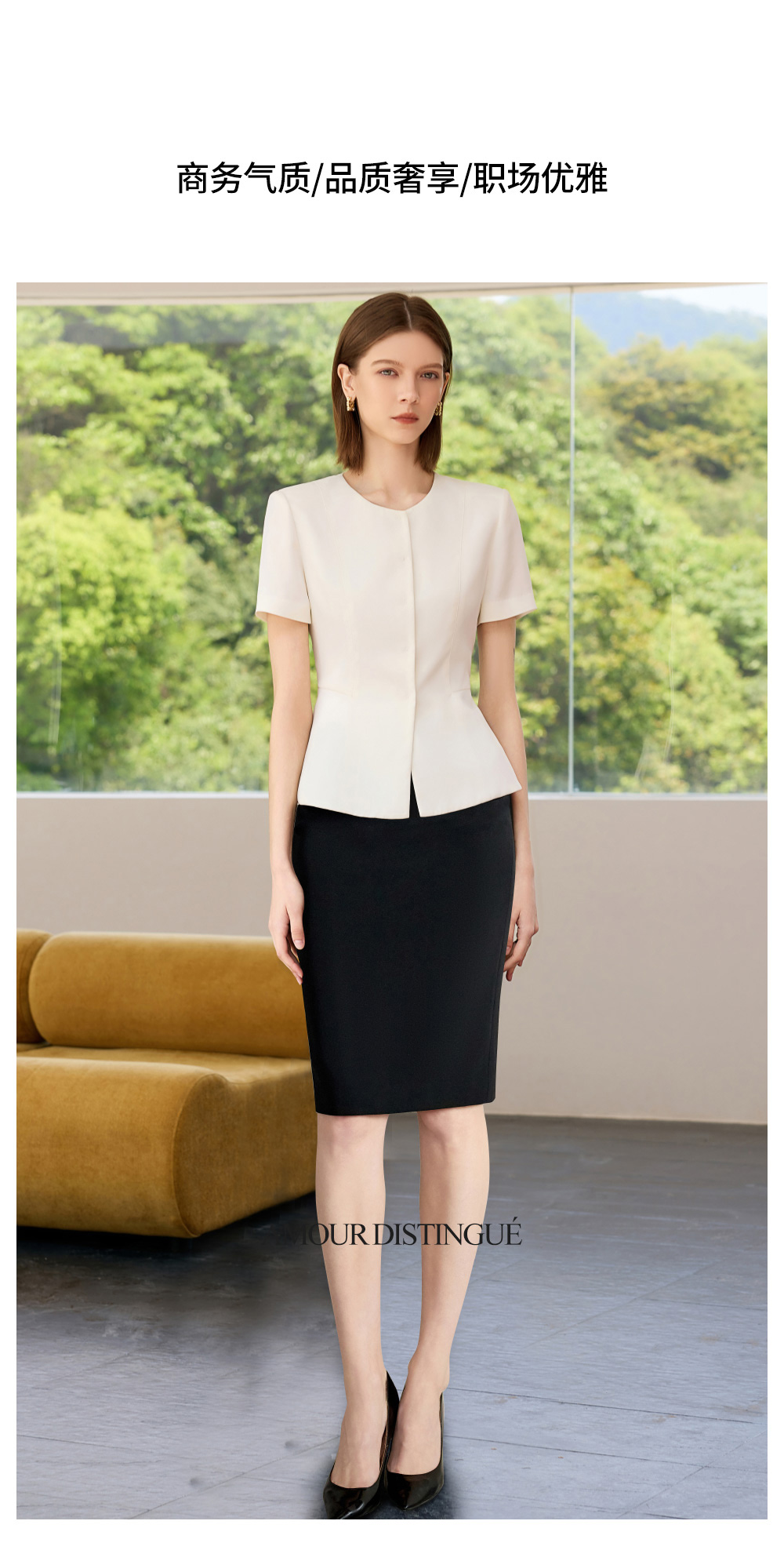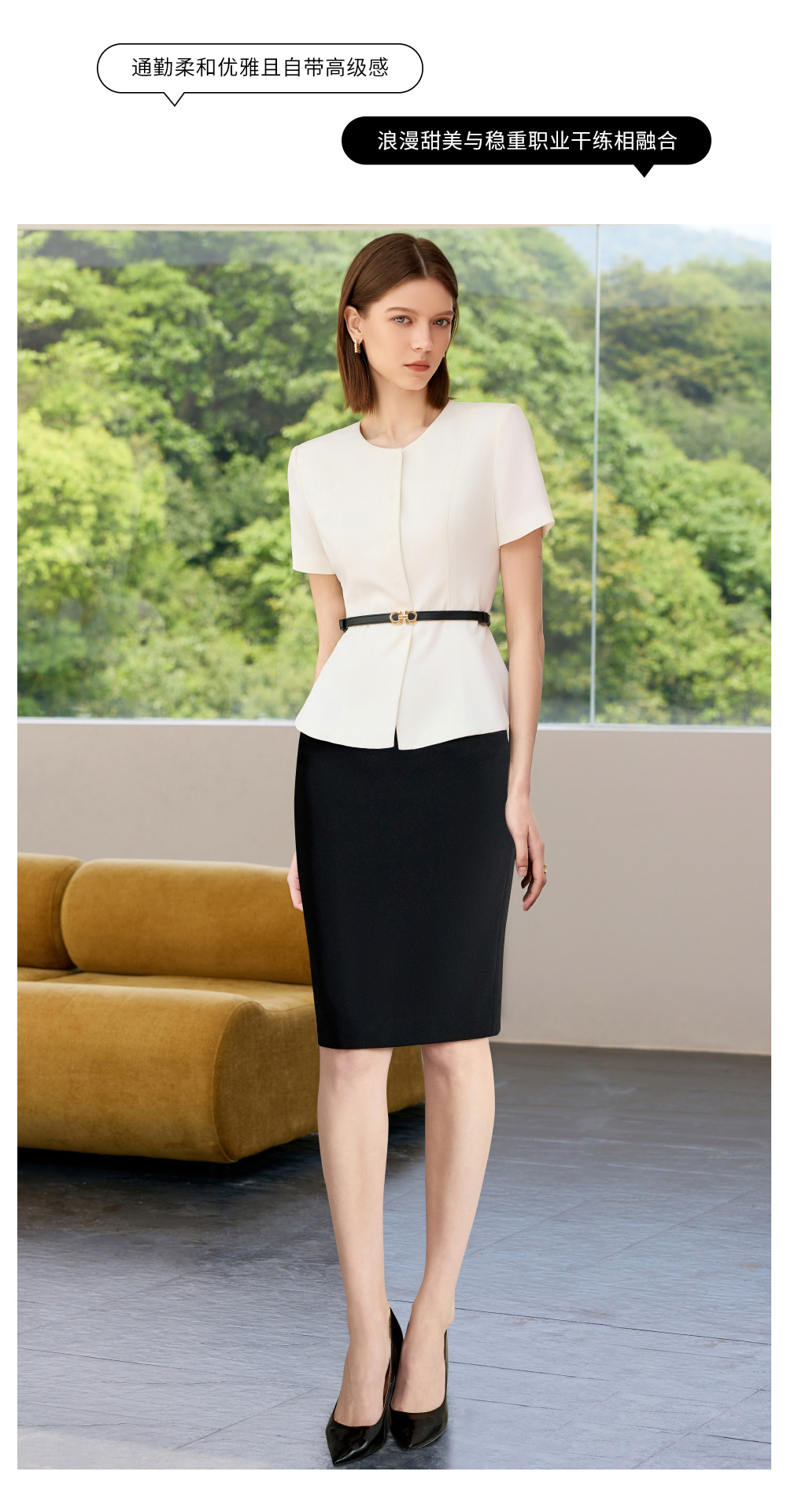 IWY/高端职业套装女神范气质工作服夏季新款短袖白色西装两件套C2299+S2255