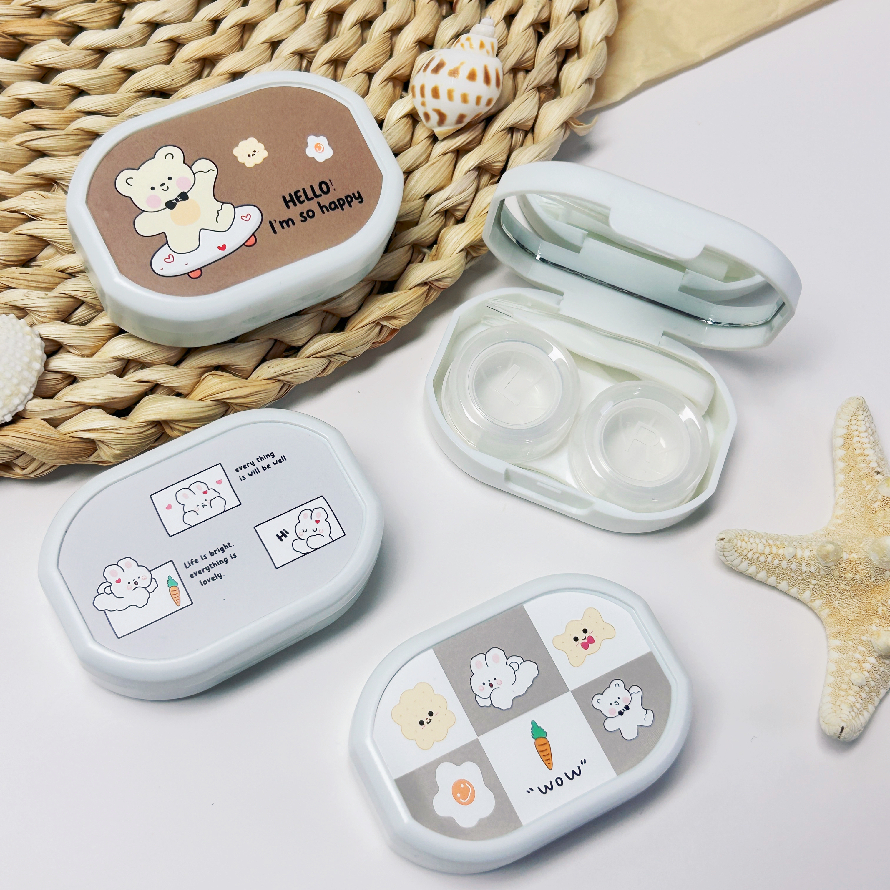 新款可爱卡通便携美瞳盒隐形眼镜护理盒双联盒伴侣盒WL159