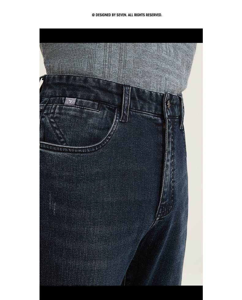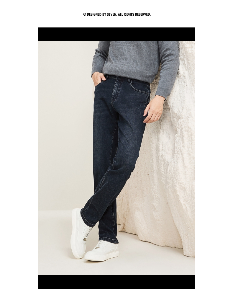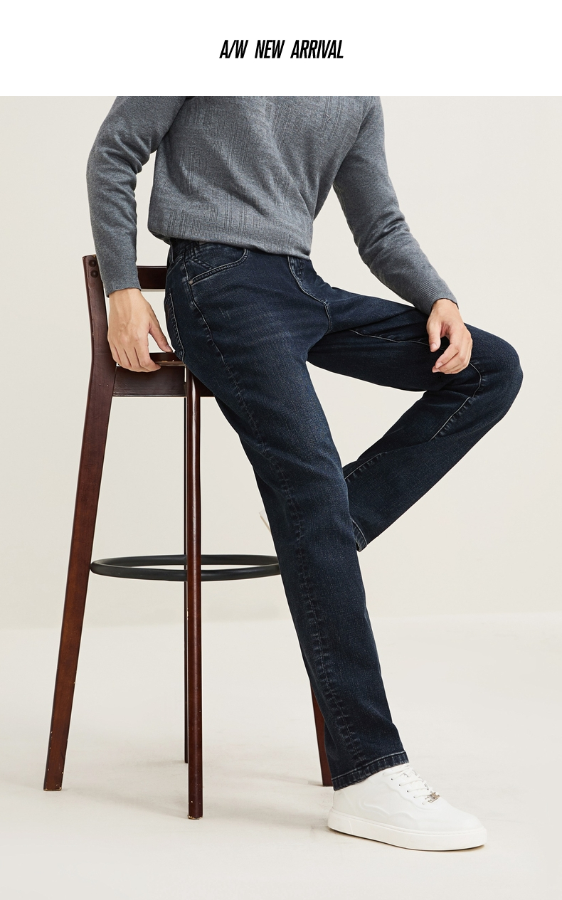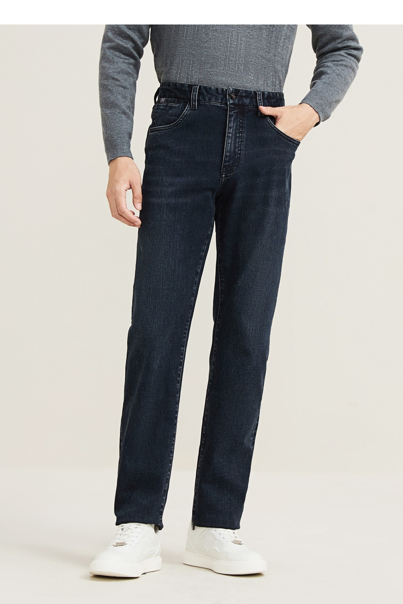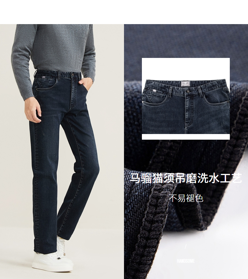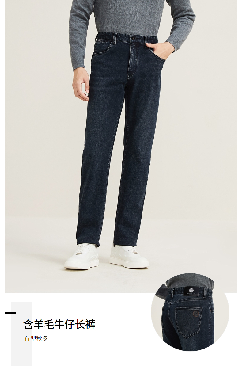 【含羊毛】柒牌牛仔裤男士2025秋冬新款直筒弹力休闲中青年长裤子129H71320