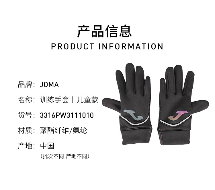 JOMA/霍马冬季训练防寒儿童保暖足球手套男3316PW3111010