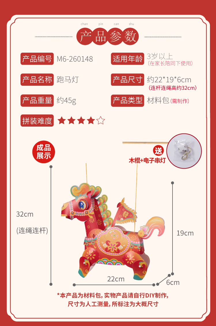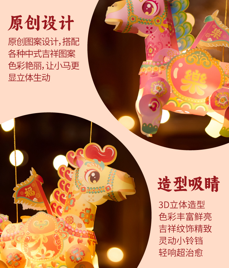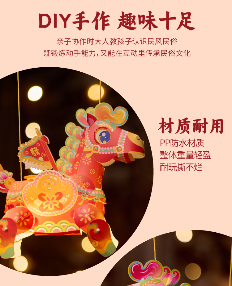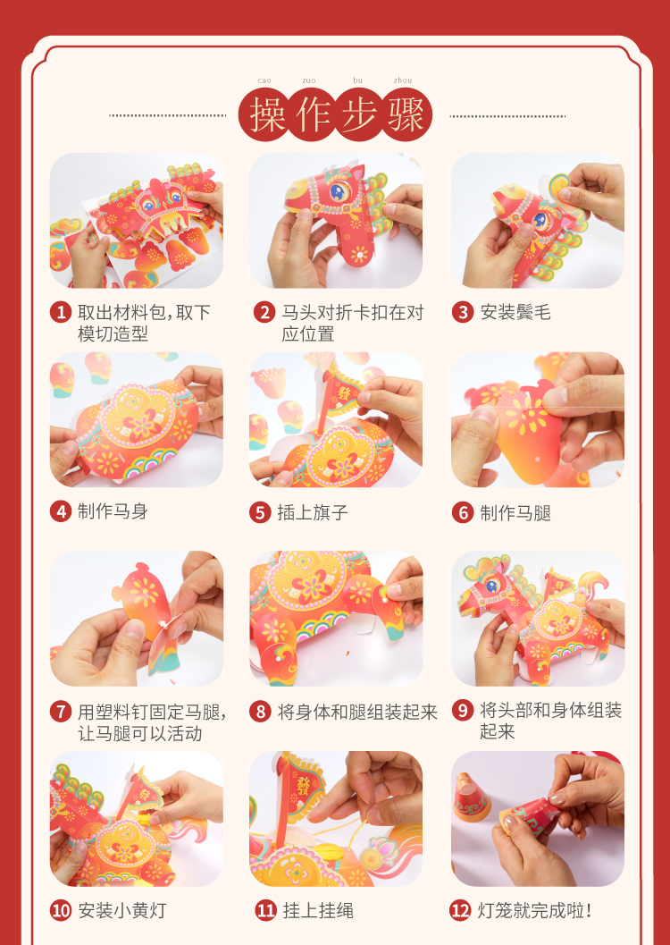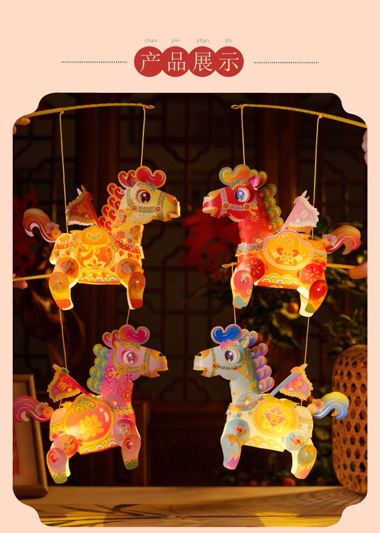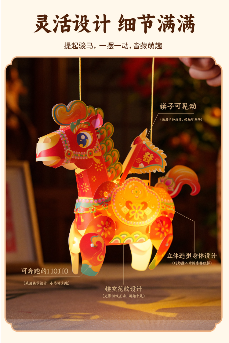 新年春节元旦马年跑马灯手工diy灯笼儿童制作材料包花灯装饰2026