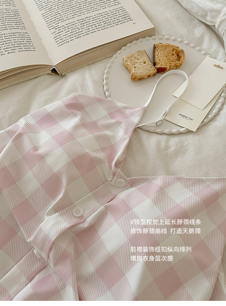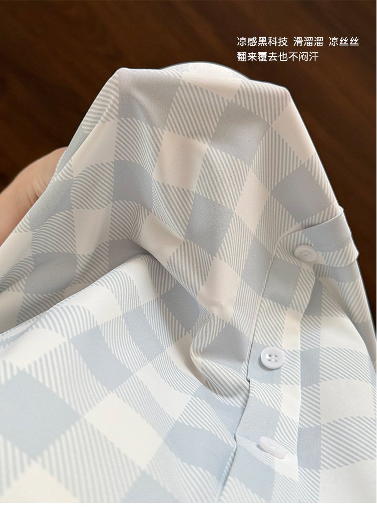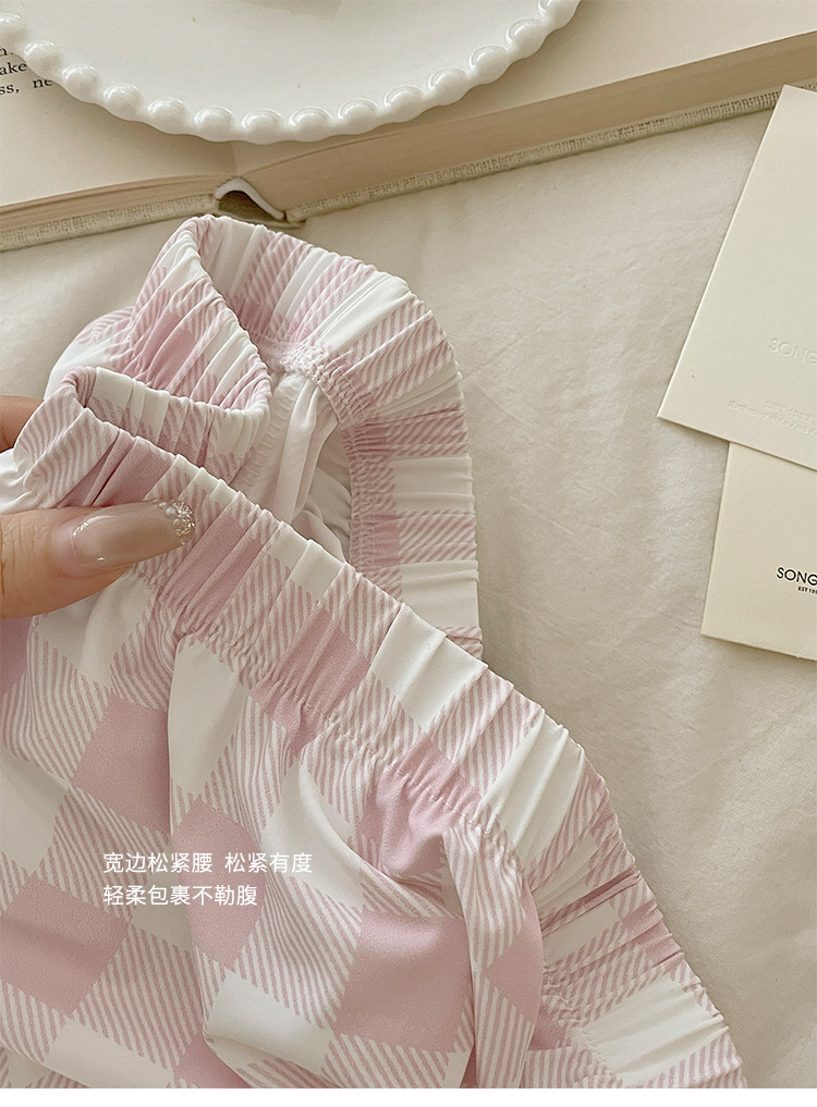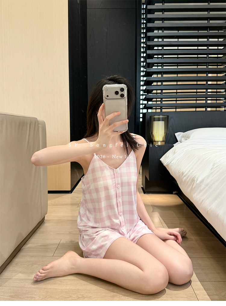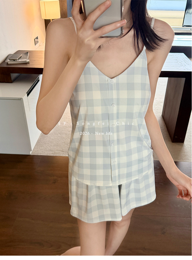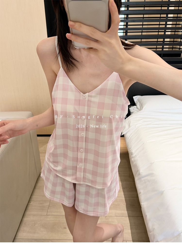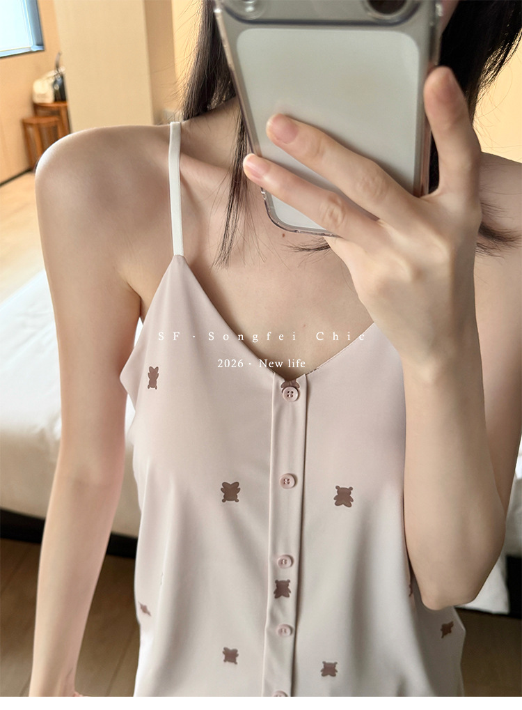 【冰皮带胸垫家居服】夏季女士冰丝凉感吊带睡衣 免穿内衣薄款家居服套装