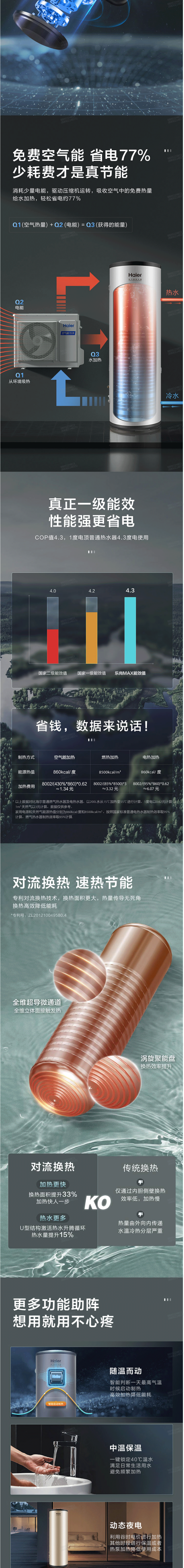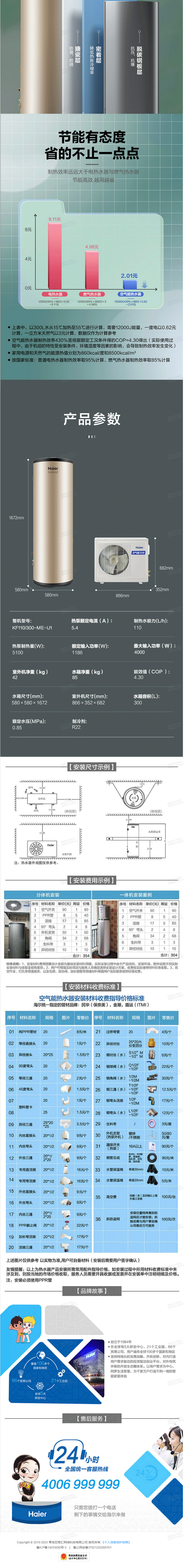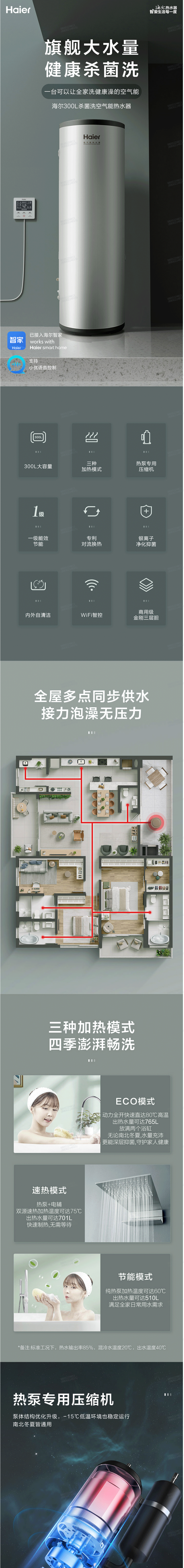 海尔空气能热泵热水器 300升大水量 三种加热模式 一级能效 银离子净化抑菌 外机自清洁 wifi智控 KF110/300-ME-U1