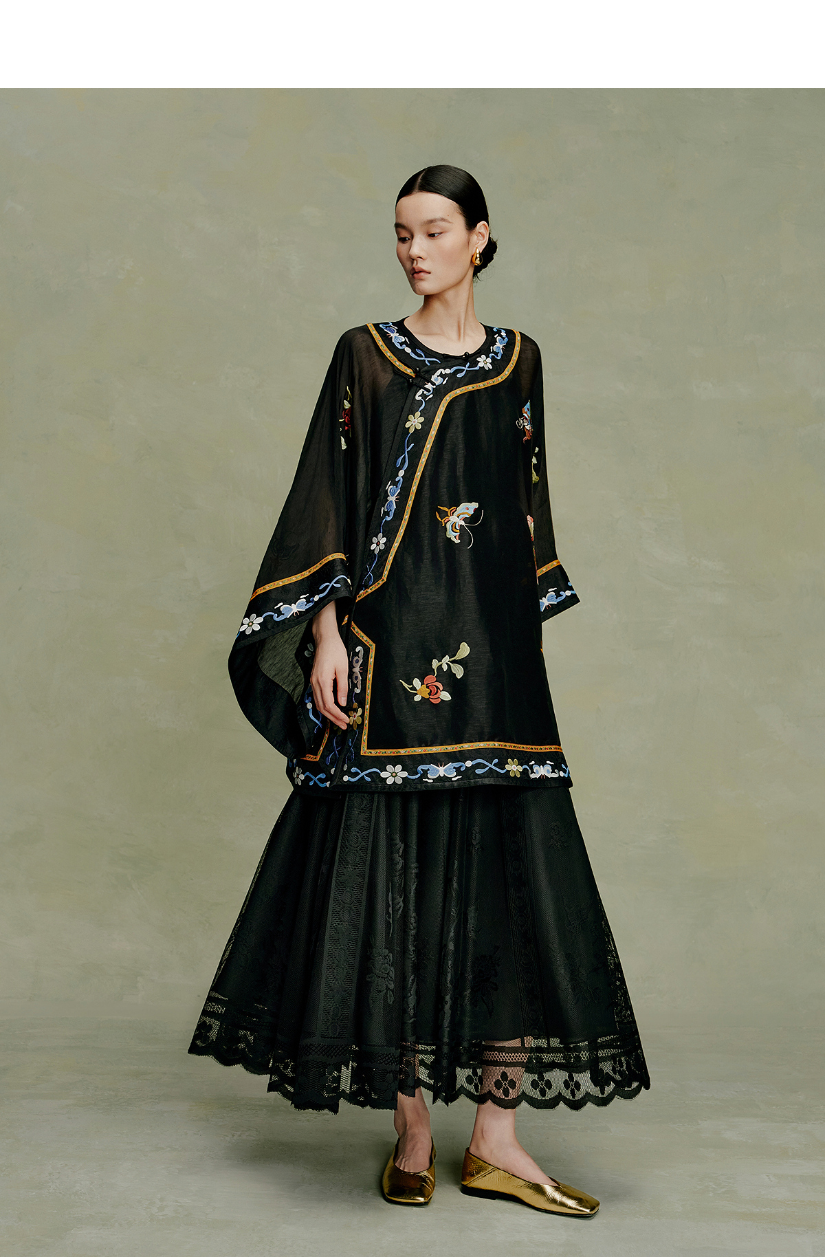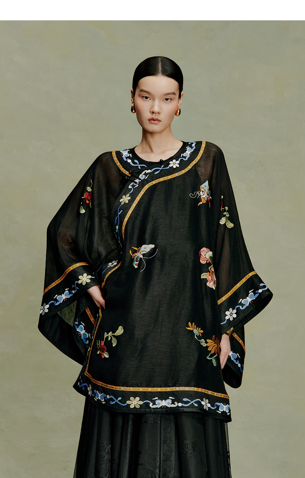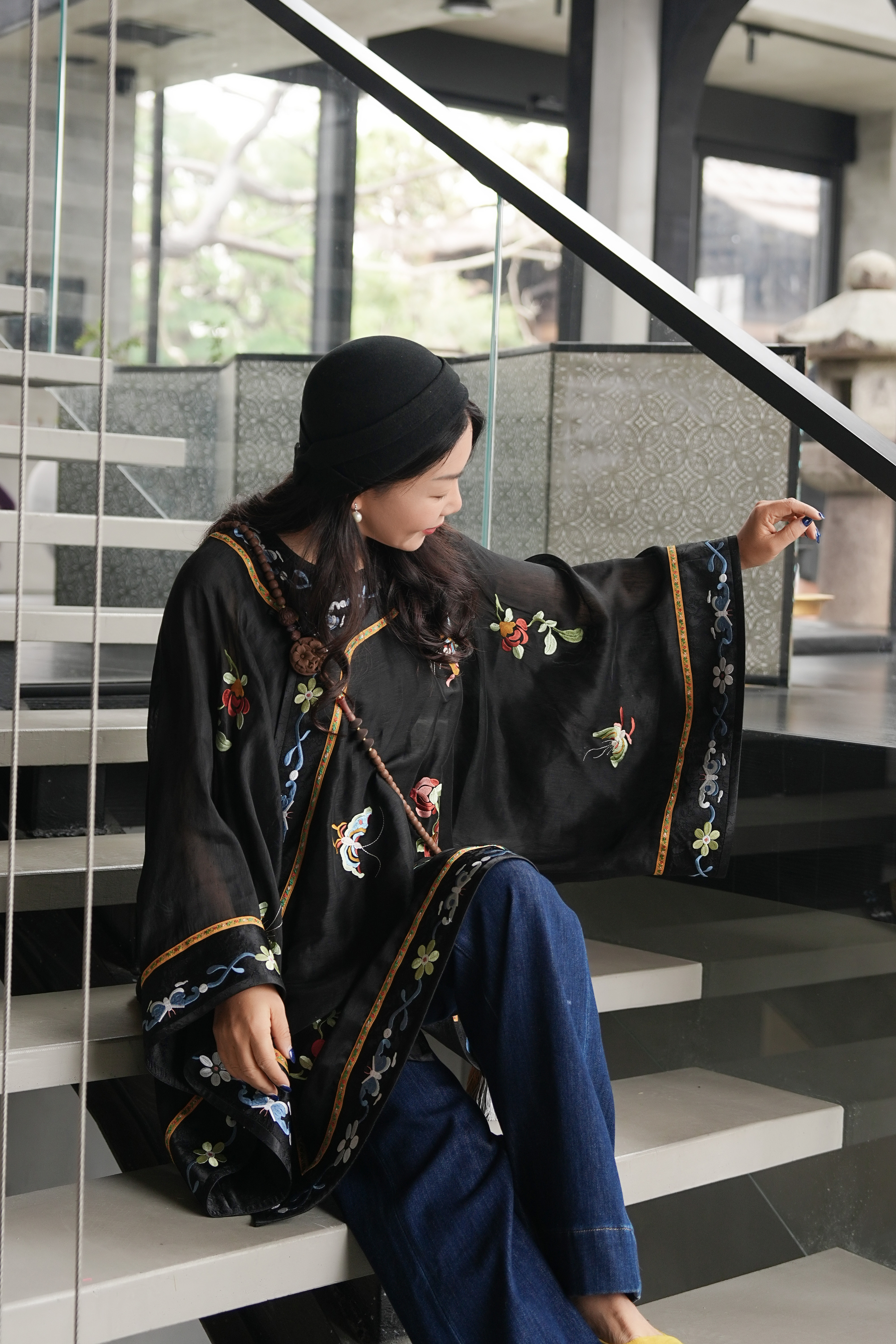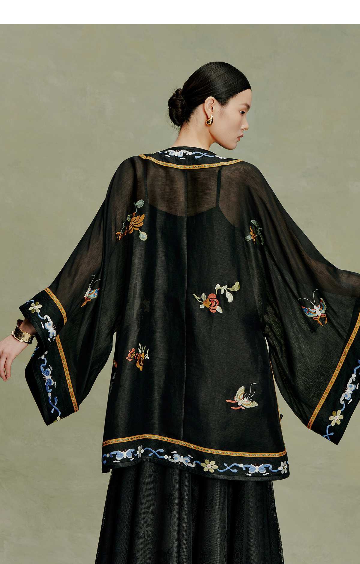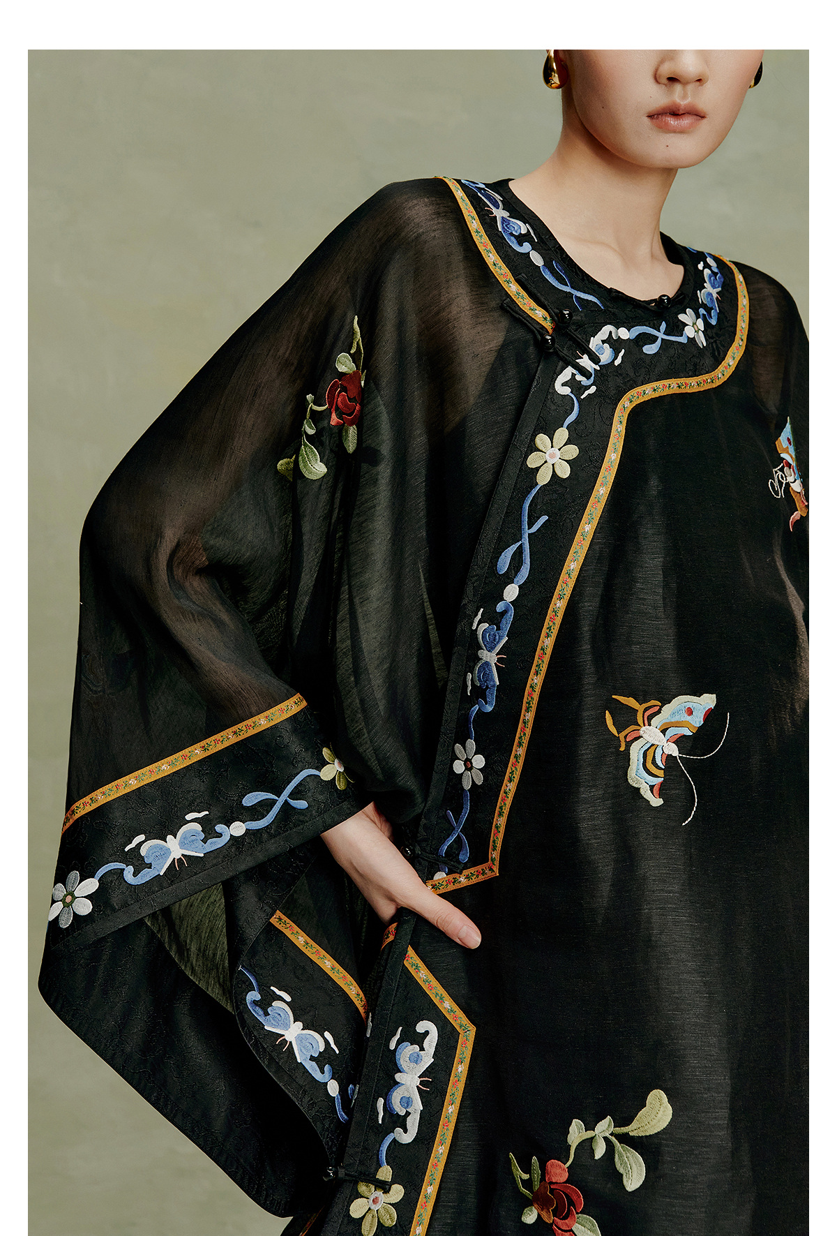 【林栖设计小店】月夜清影|黑色复古绣花2026夏新款衬衣改良氅衣1962079