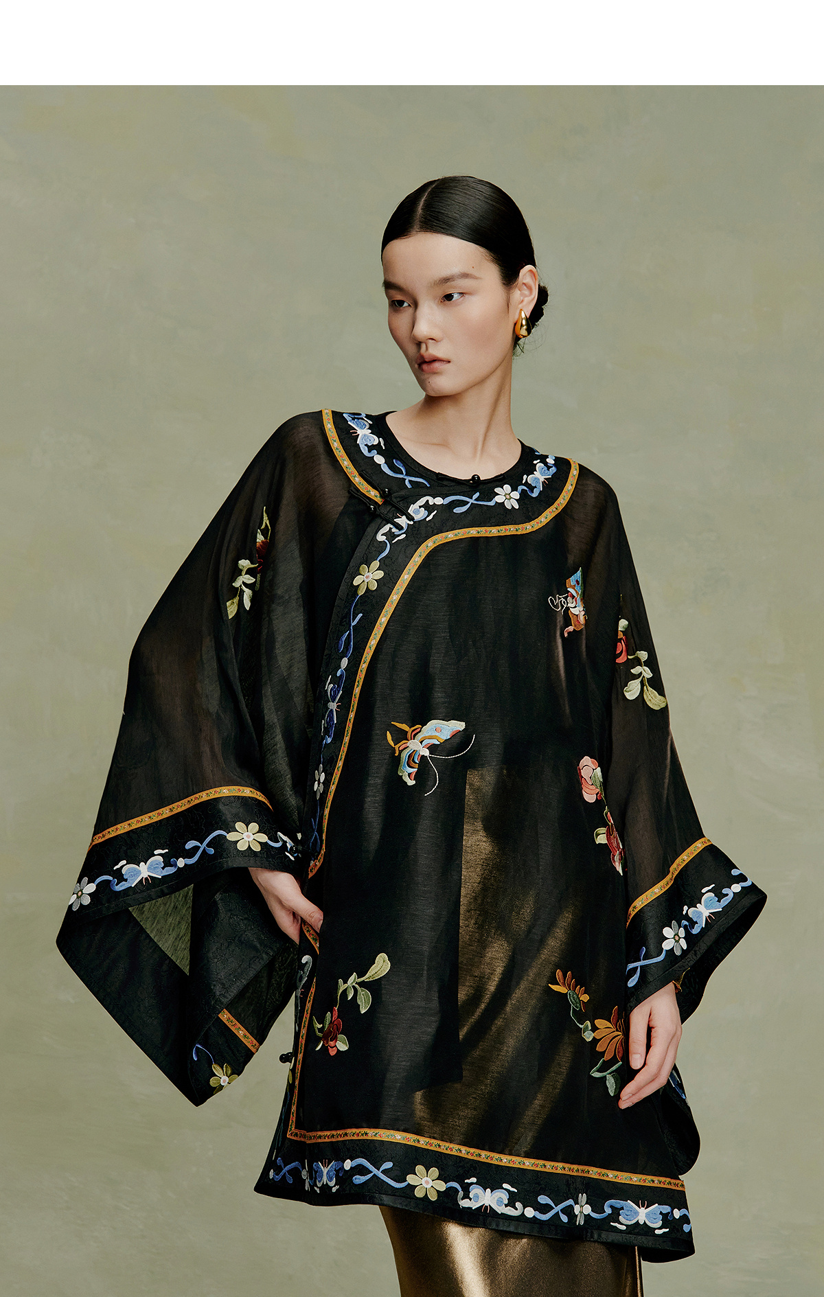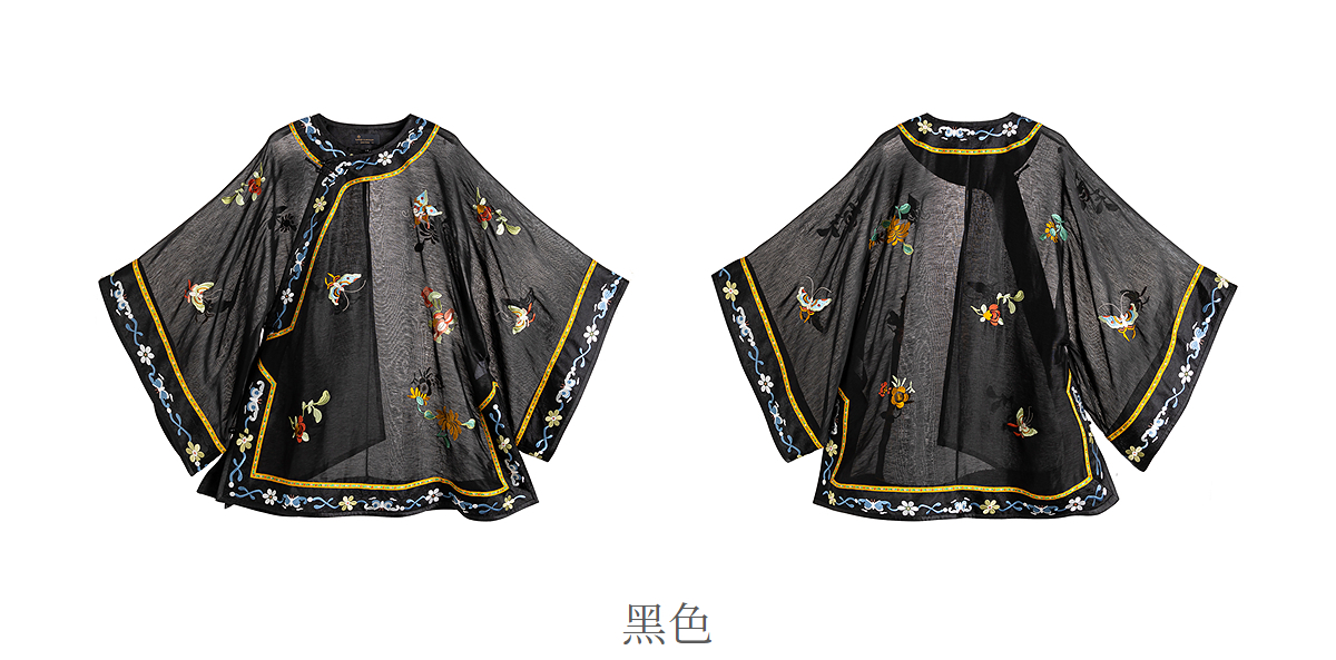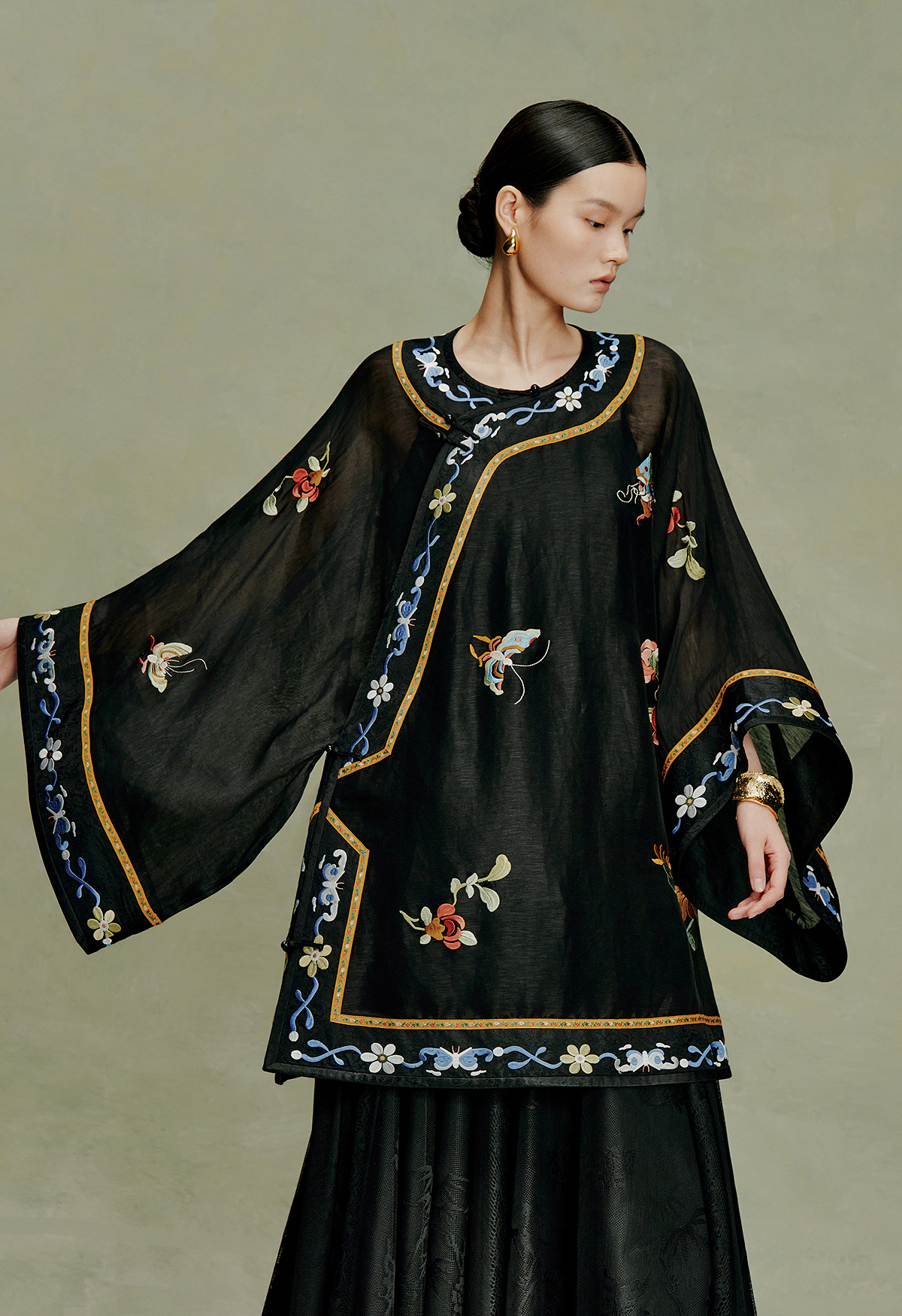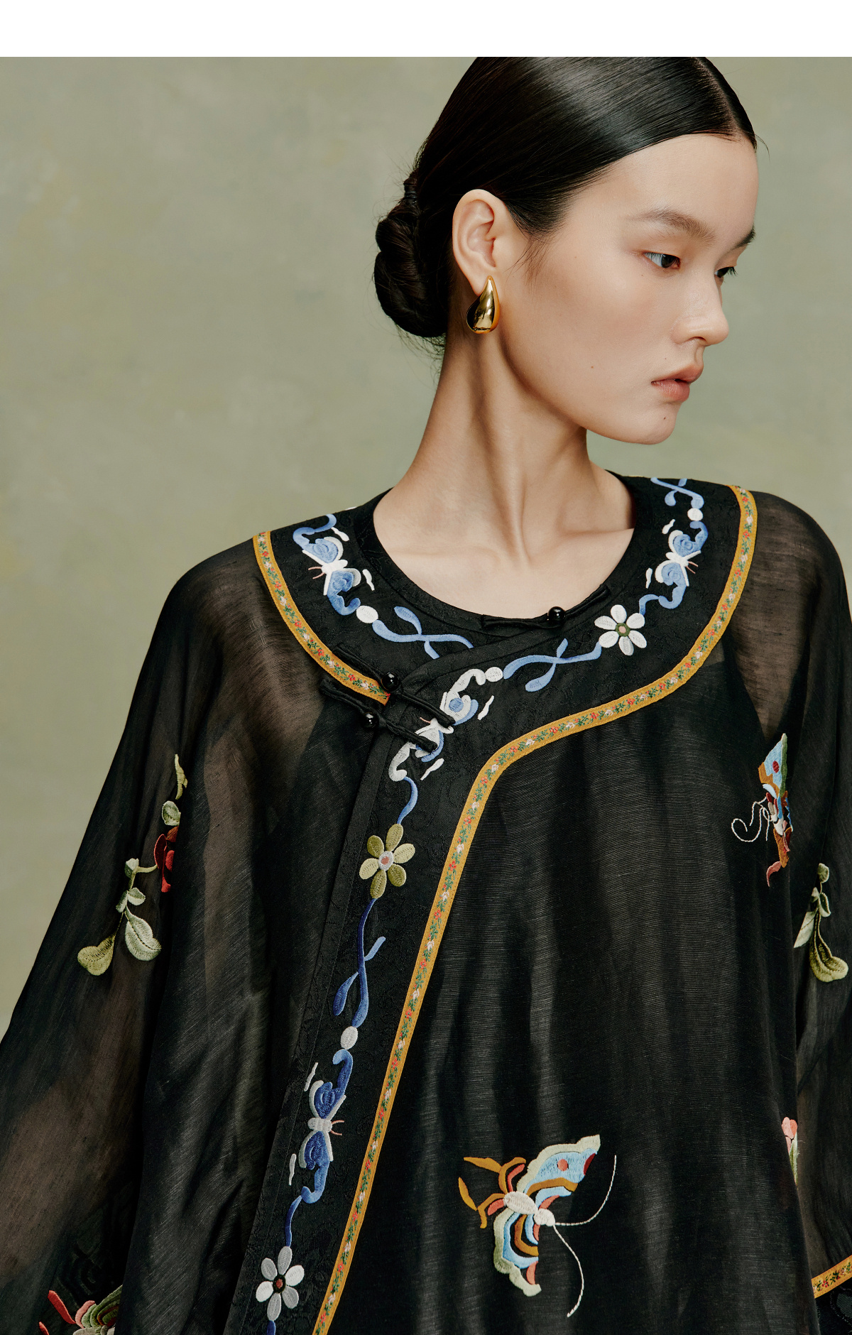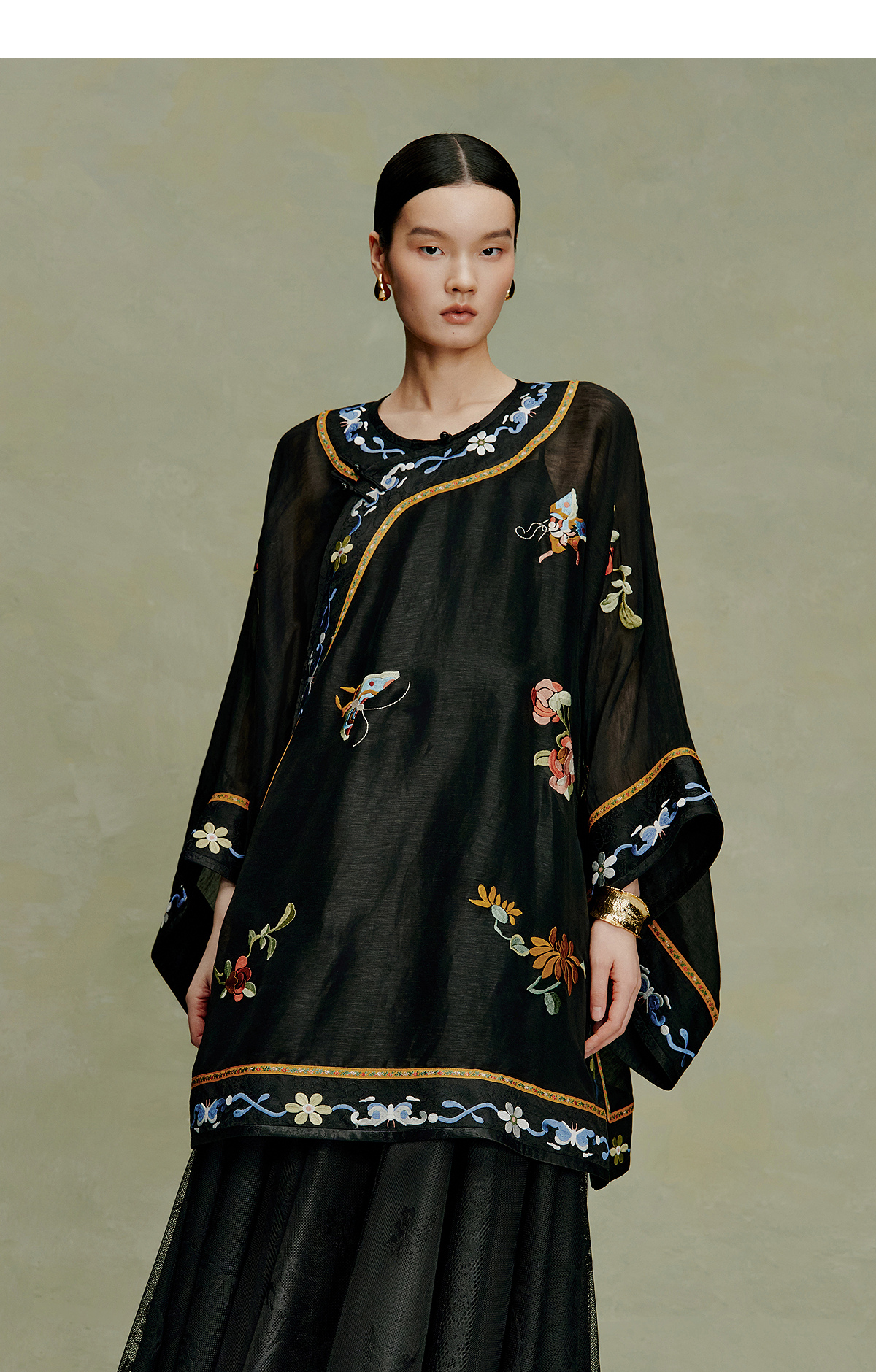 【林栖设计小店】月夜清影|黑色复古绣花2026夏新款衬衣改良氅衣1962079