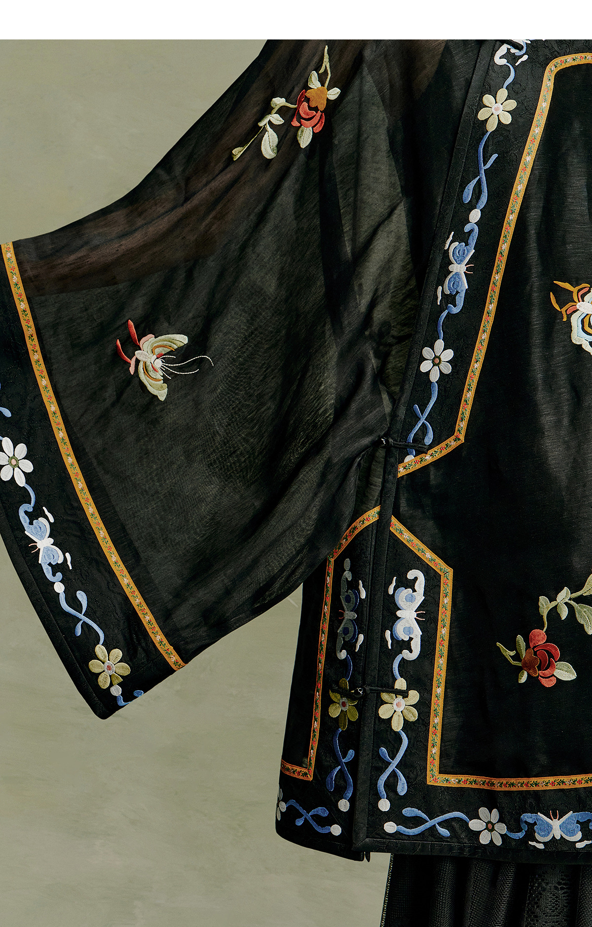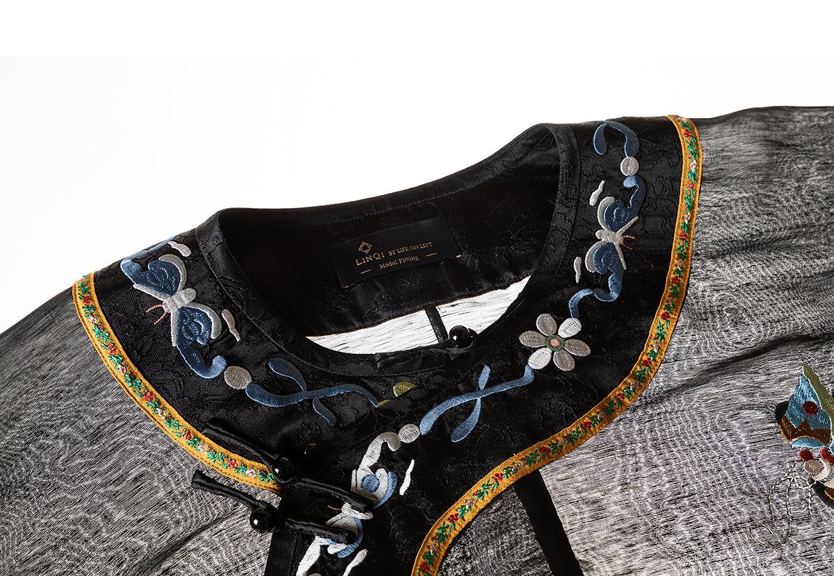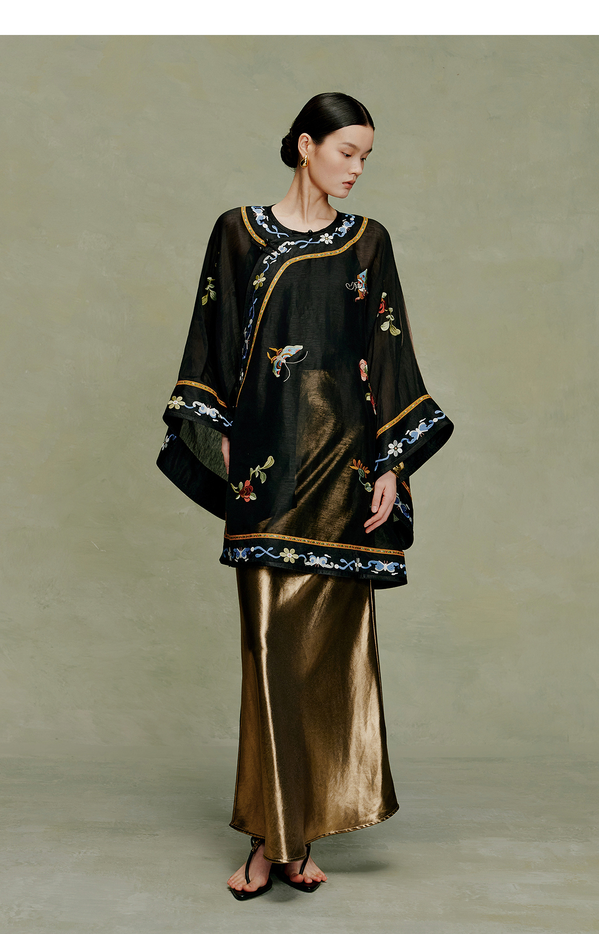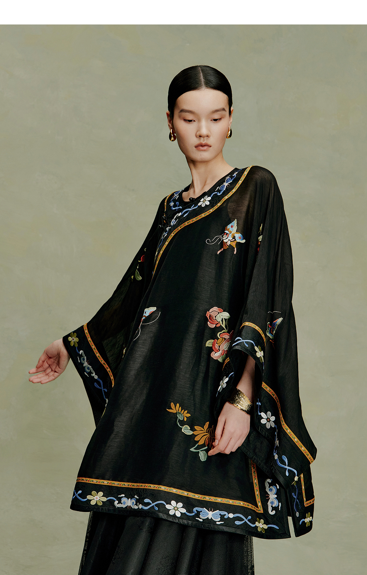 【林栖设计小店】月夜清影|黑色复古绣花2026夏新款衬衣改良氅衣1962079