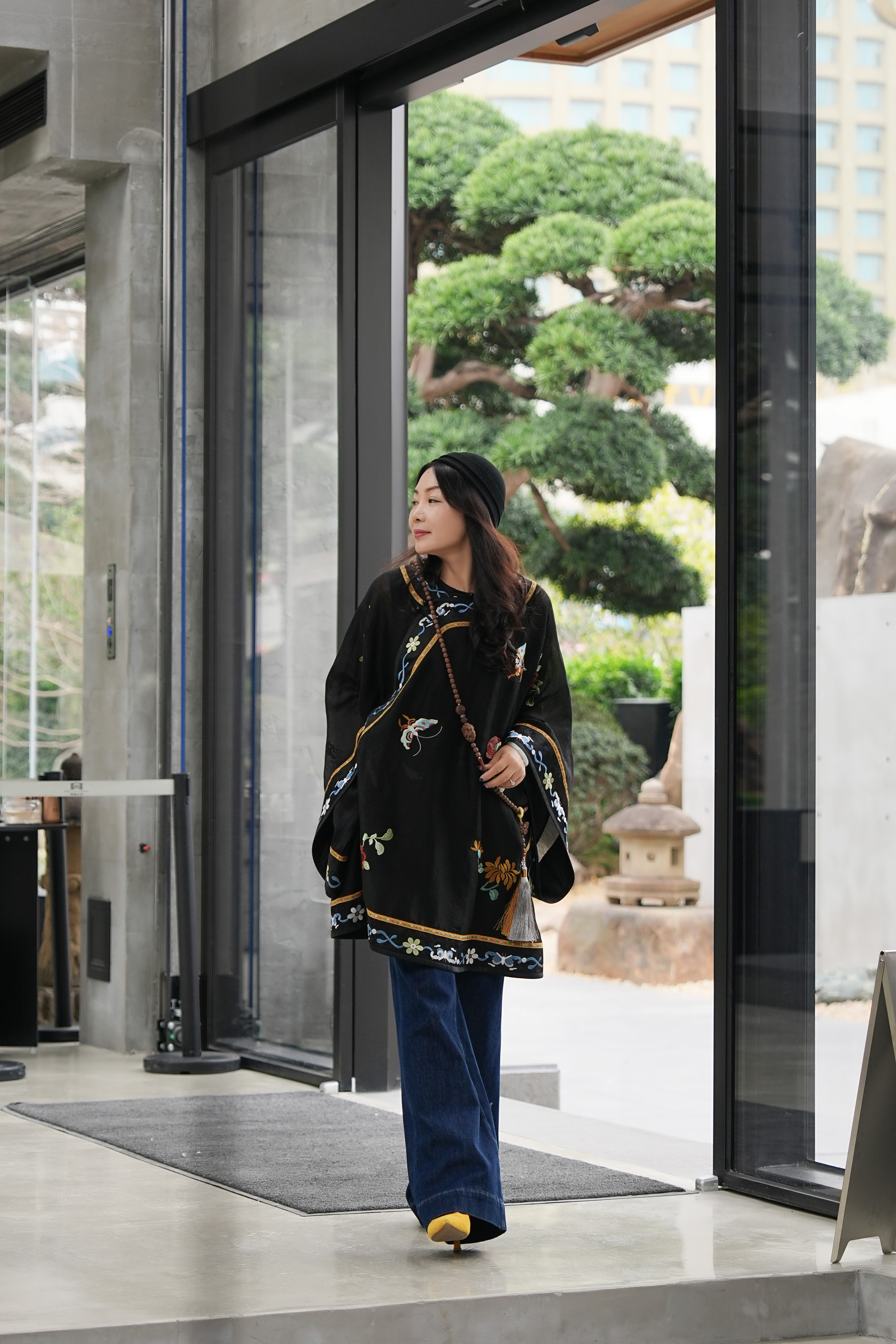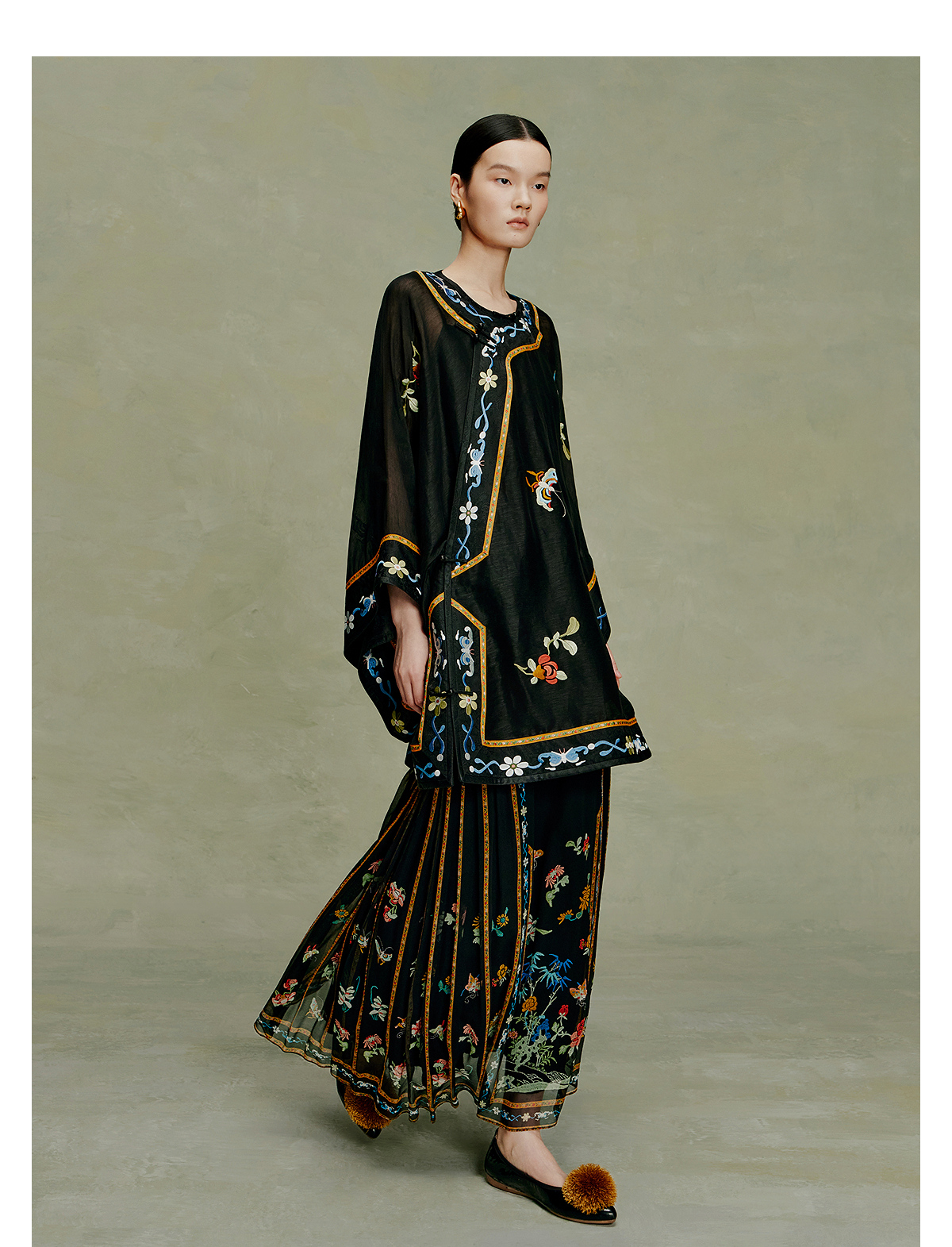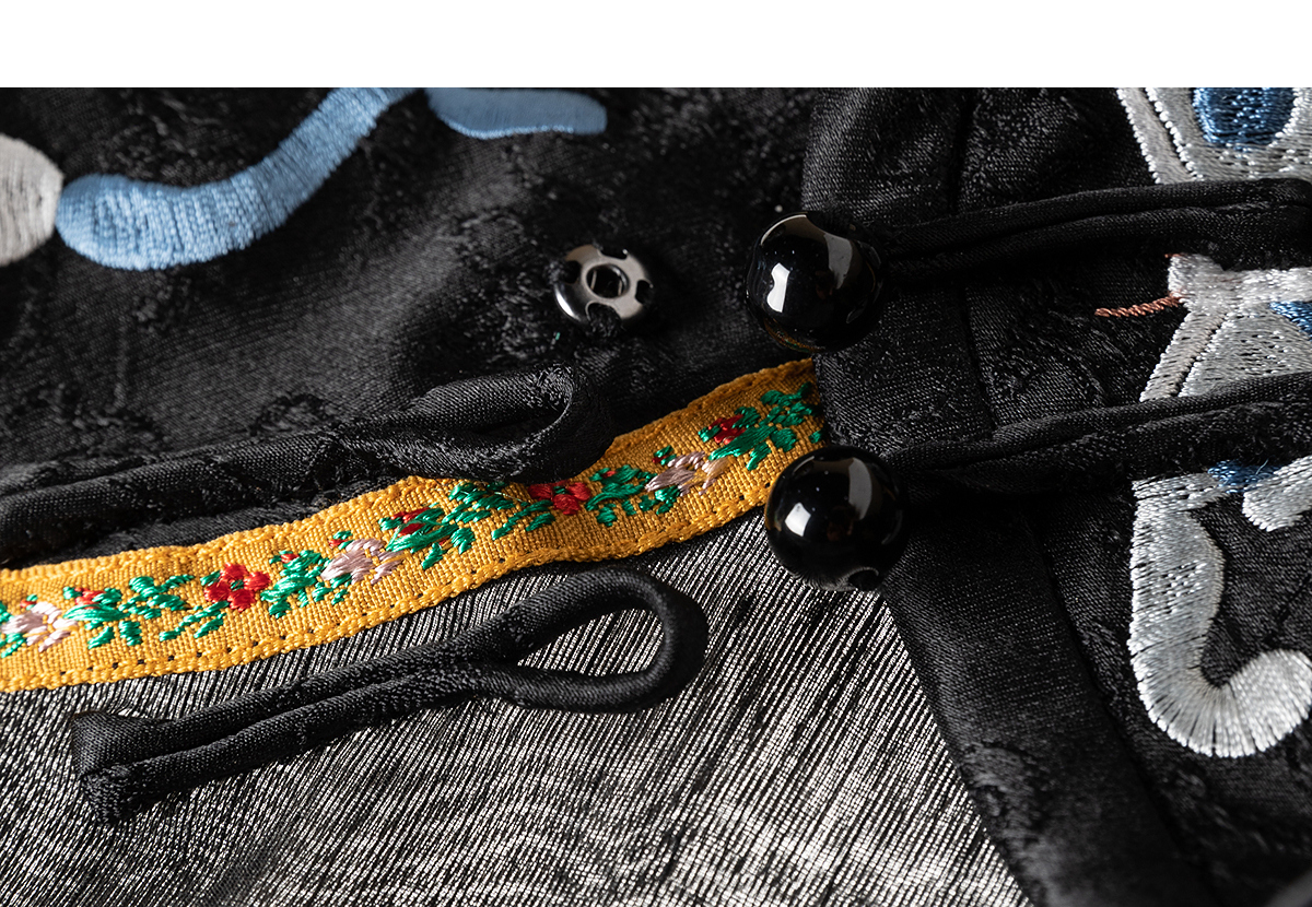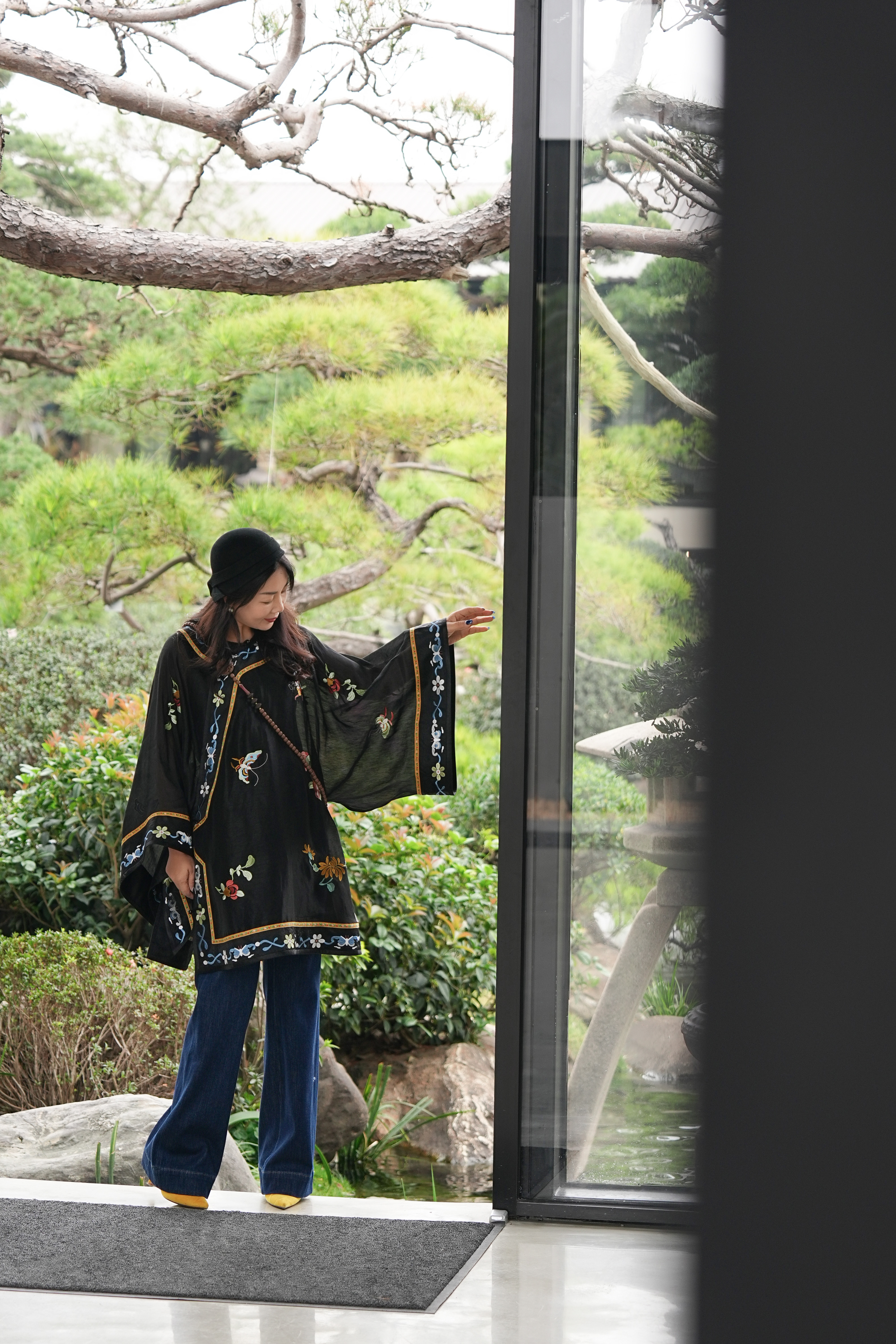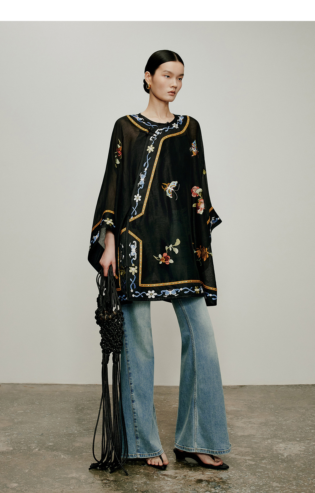 【林栖设计小店】月夜清影|黑色复古绣花2026夏新款衬衣改良氅衣1962079