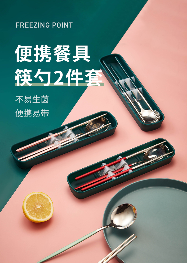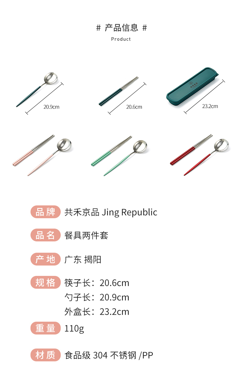 共禾京品304不锈钢单人装便携餐具筷勺2件套