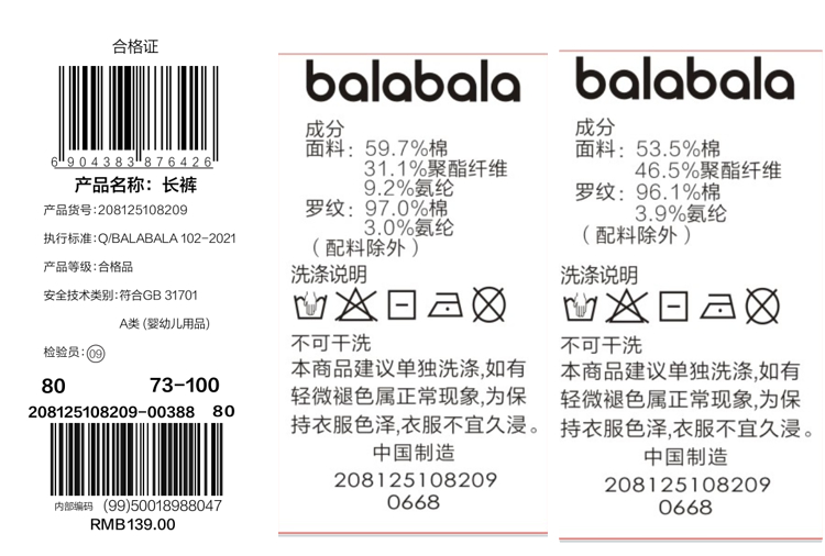 巴拉巴拉宝宝裤子婴儿长裤男童运动裤PP裤女童休闲裤2025新款春装