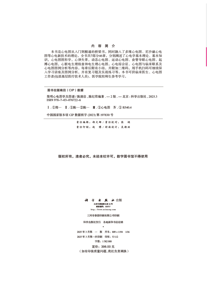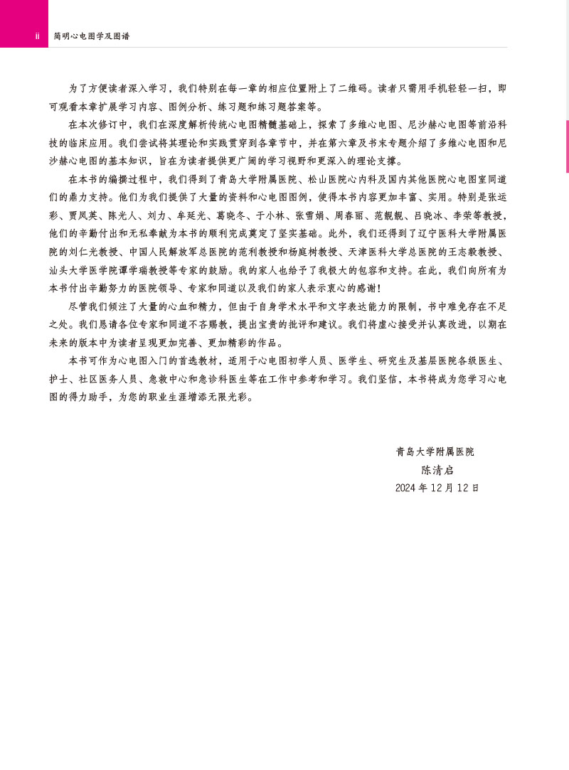 简明心电图学及图谱 第2二版 陈清启 分别阐述了心电学基本理论基本知识心电图图形学心律失常动态心电图等附加二维码学习实战练习