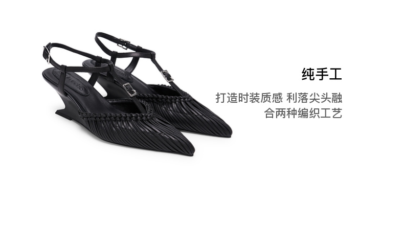 lost in echo2026春夏新款时髦尖头坡跟镂空手工编织单鞋高跟鞋女
