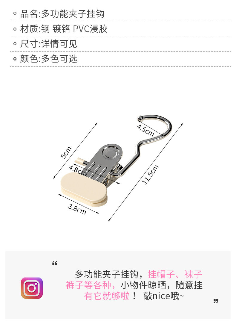 浸塑夹子袜多功能3晾晒小夹夹子带无痕防滑夹简约帽子挂钩字便携