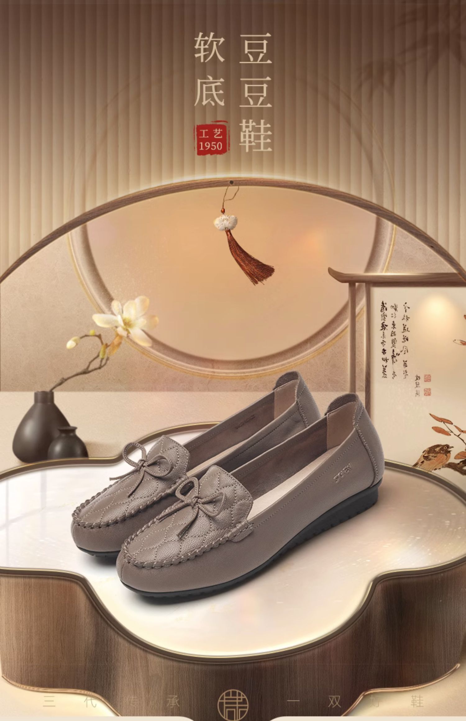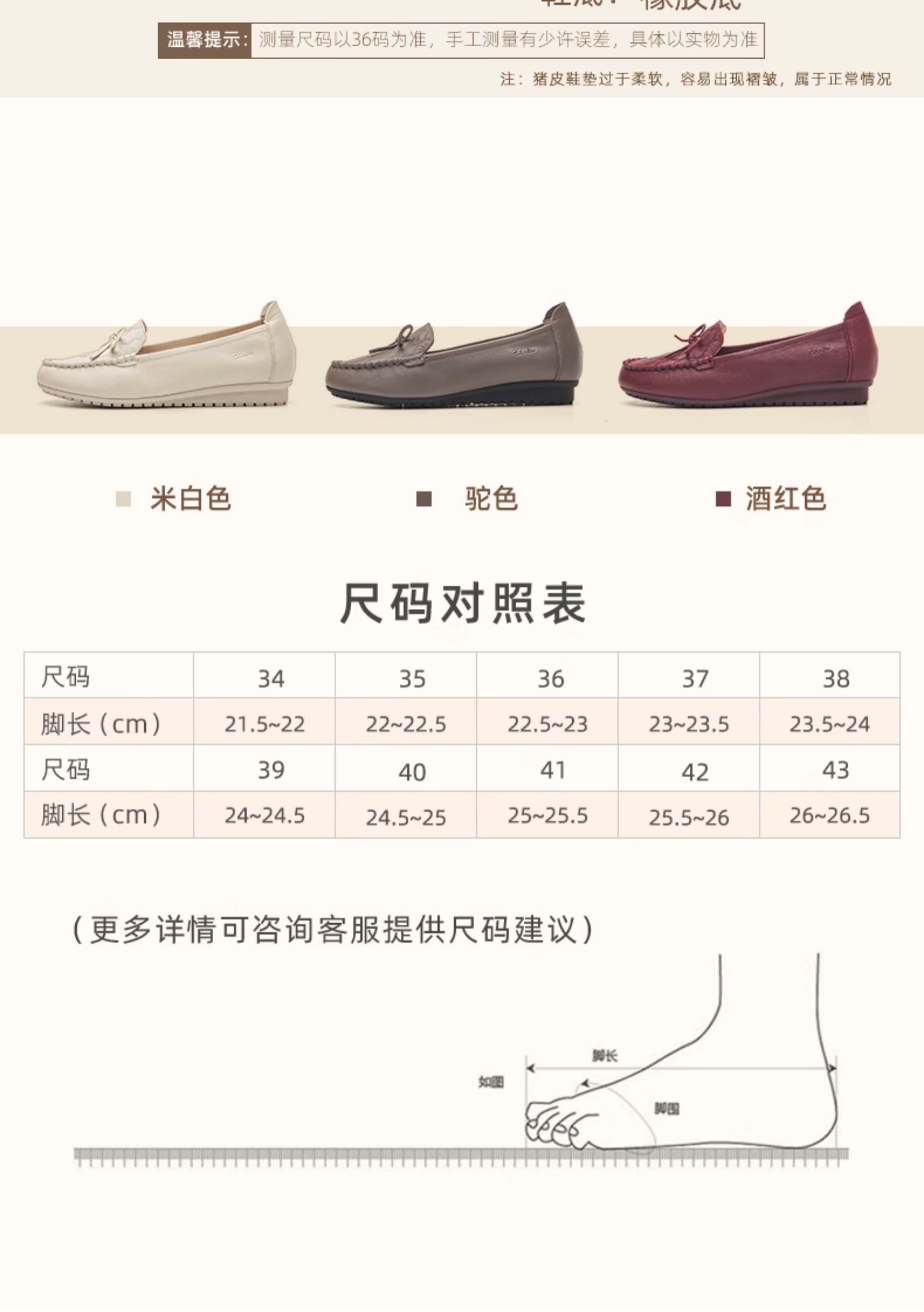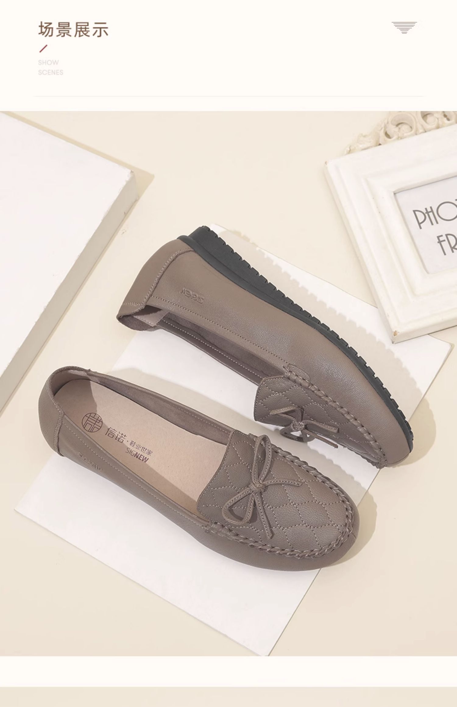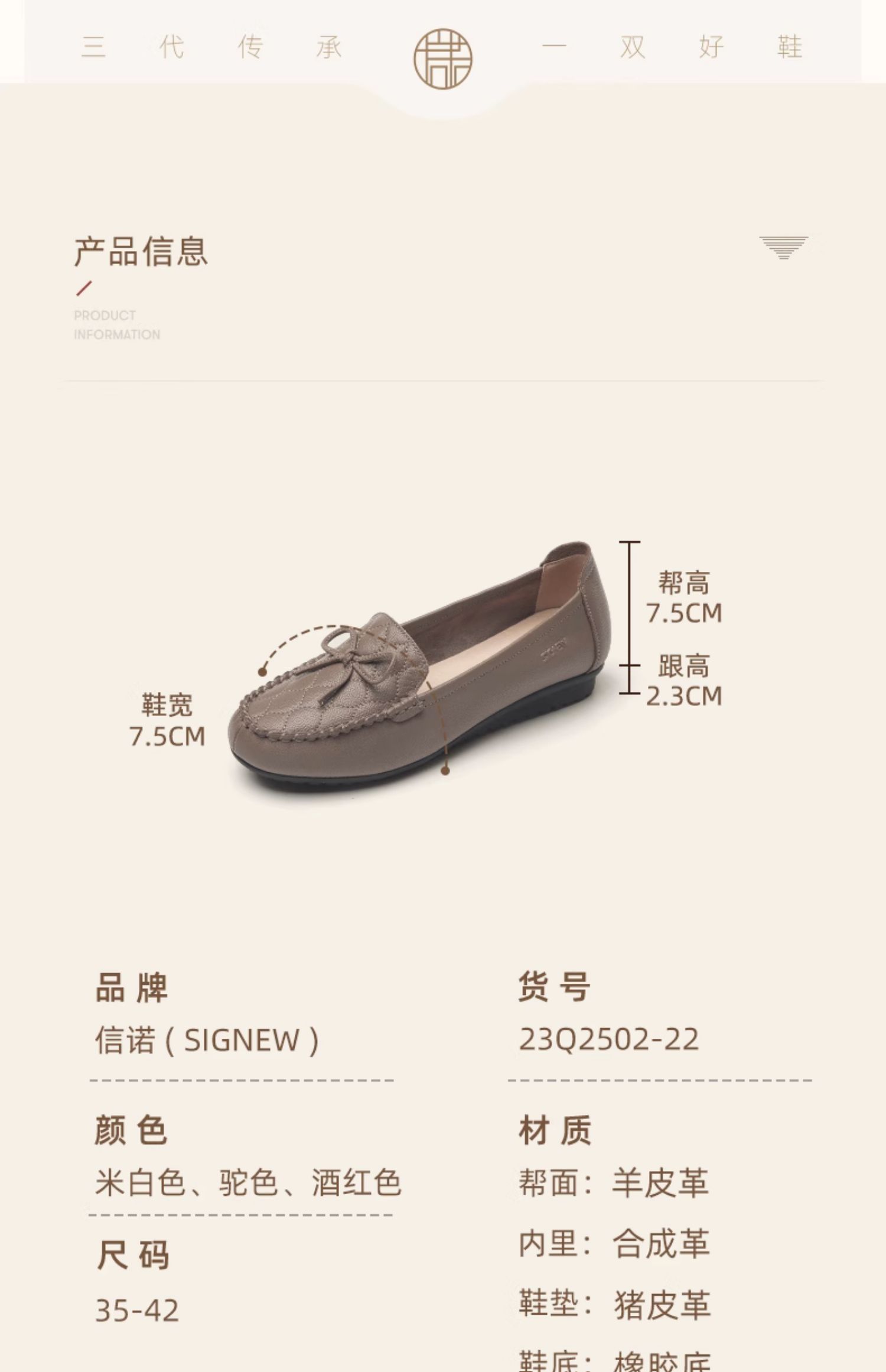 信诺头层羊皮女鞋23新款秋季超软豆豆鞋一脚蹬休闲单鞋妈妈鞋皮鞋23Q2502-22