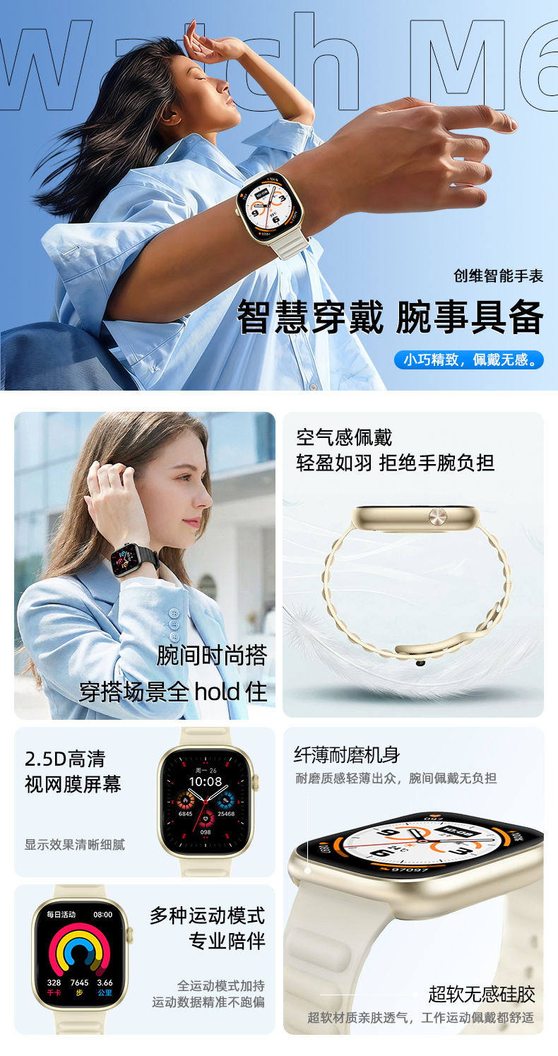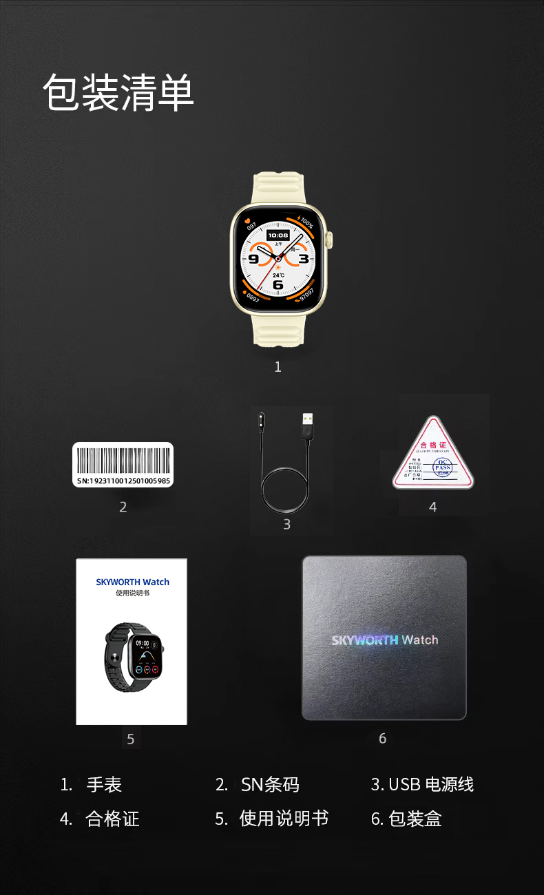 创维 智能手表 Watch 6 中国500强品牌,防跌倒SOS预警/健康监测/运动监测等多功能
