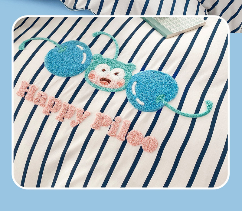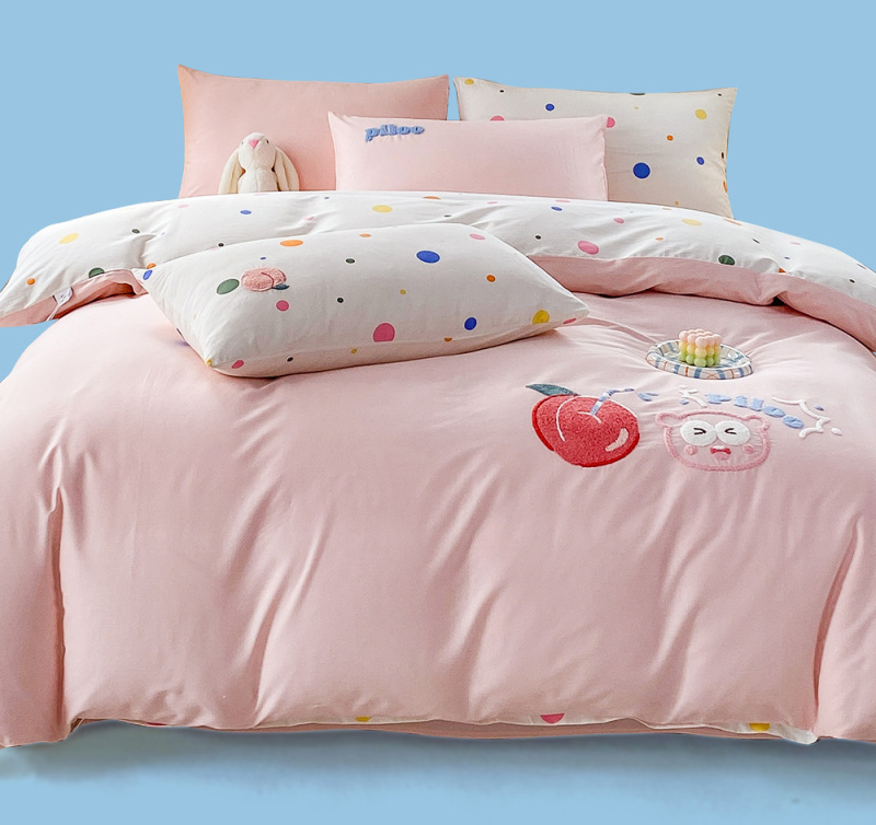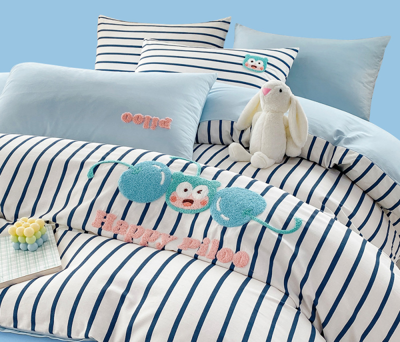 匹鲁儿童床品A类全棉绣花学生床单床笠被套纯棉可爱风床上用品件套