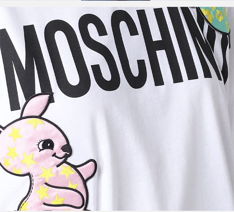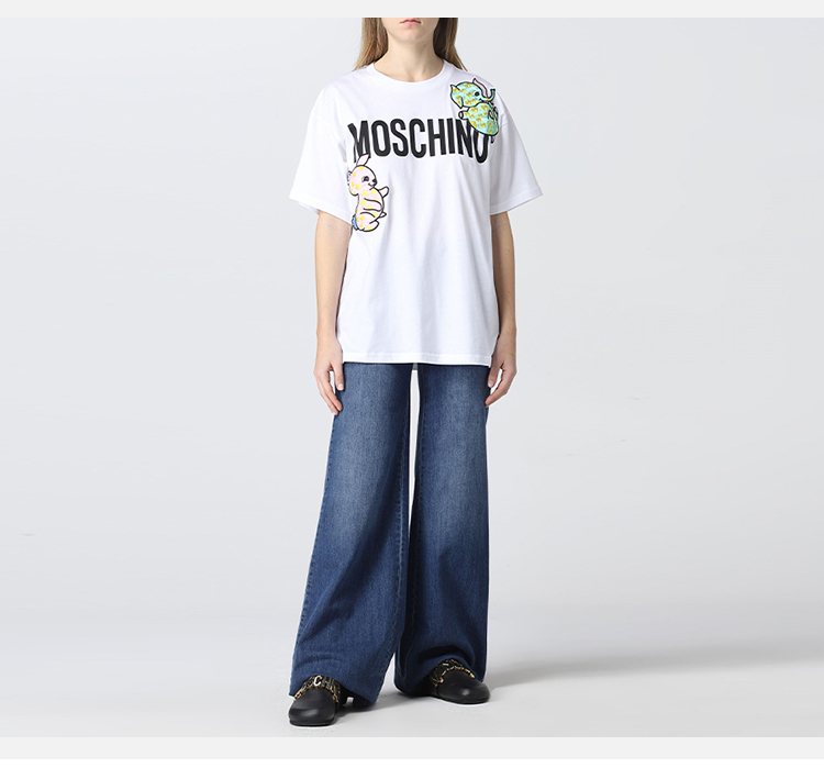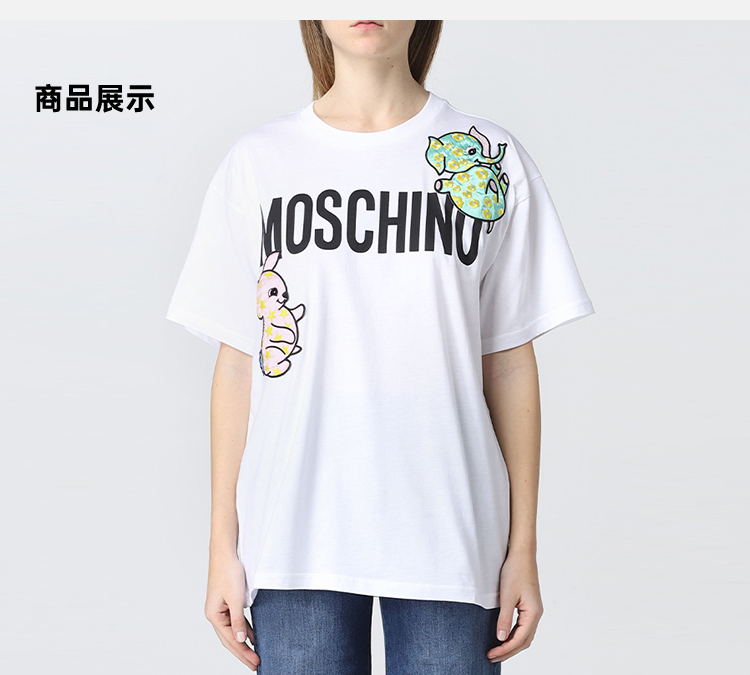 MOSCHINO 莫斯奇诺 女士棉质字母大象图案印花圆领短袖T恤 白色 0711 0441 3001