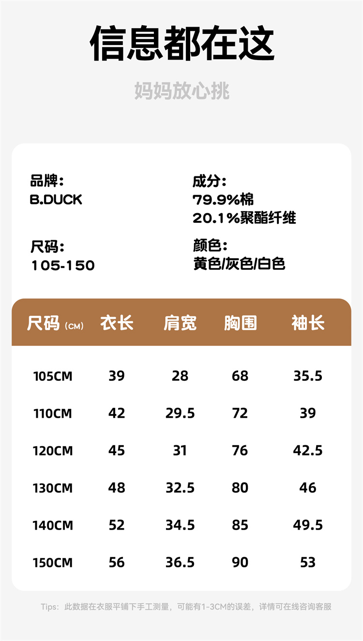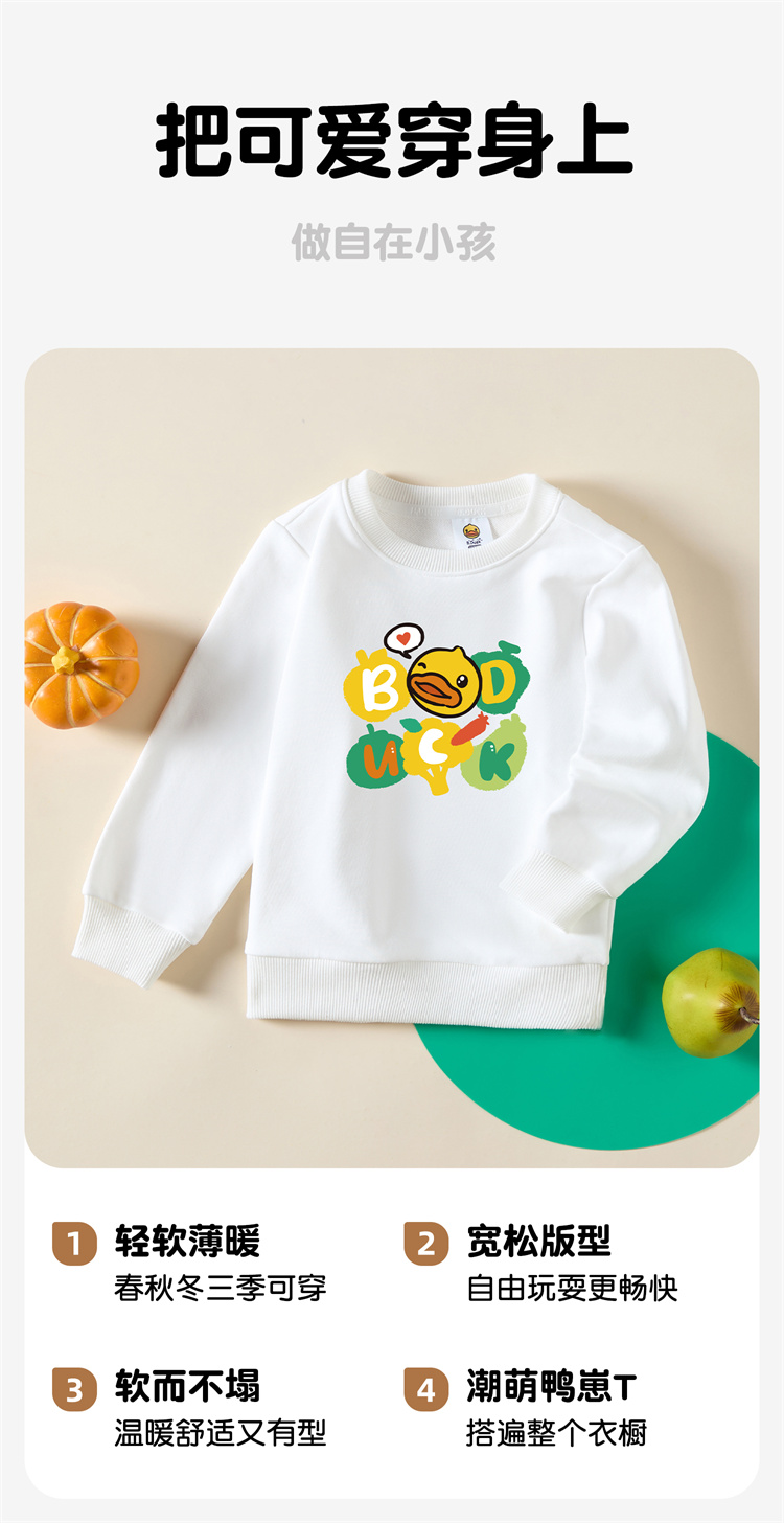 B.Duck小黄鸭童装圆领卫衣春春秋男童时尚卡通上衣潮105-150 BF3508963