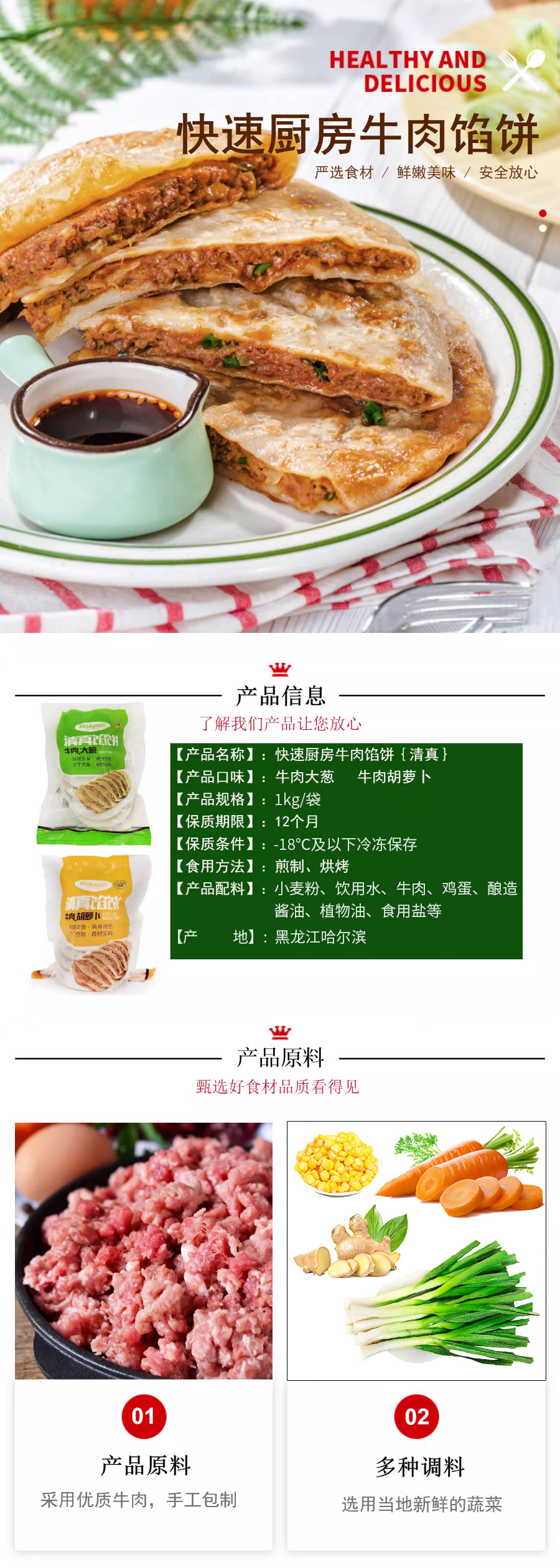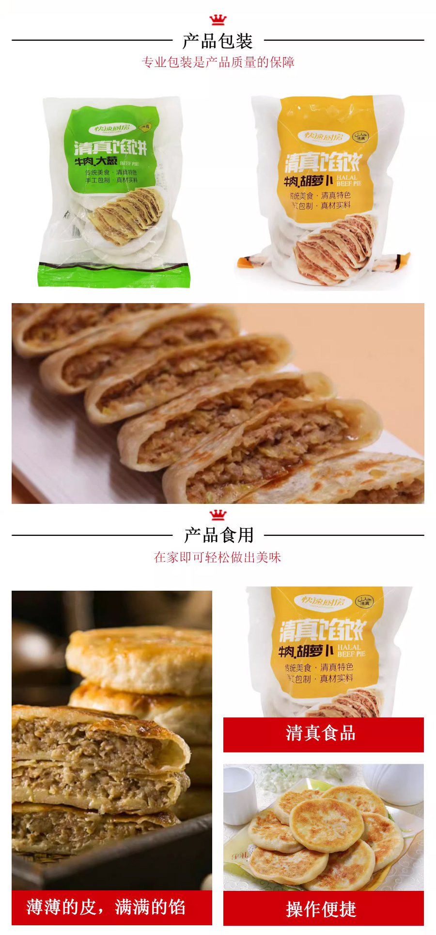 【清真】快速厨房牛肉大葱馅饼I 牛肉胡萝卜馅饼1kg 【10个装】