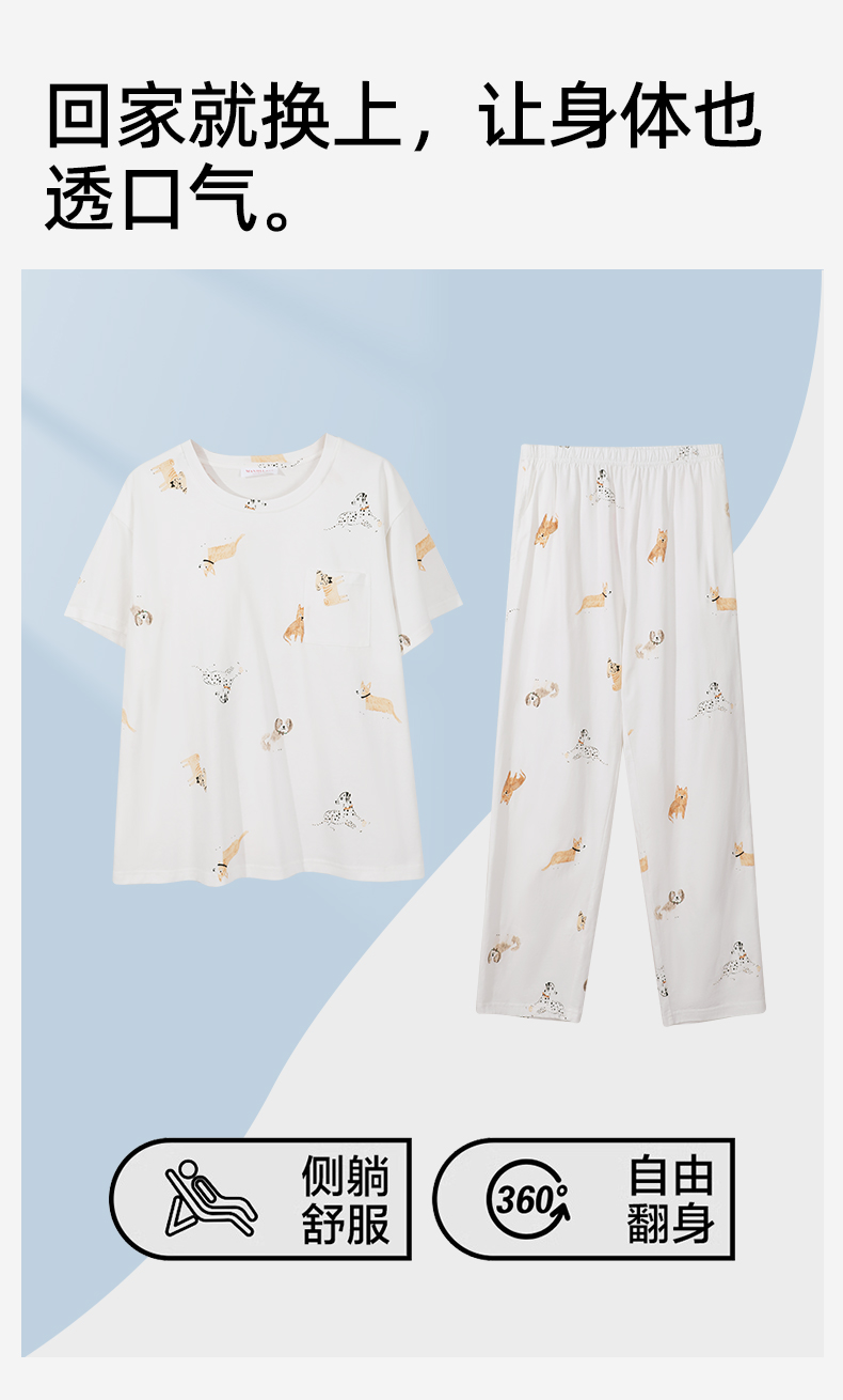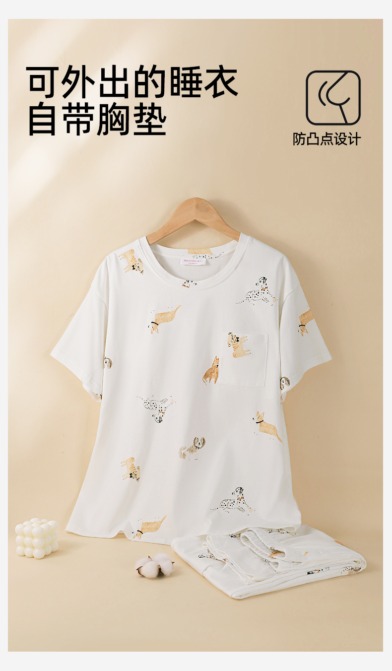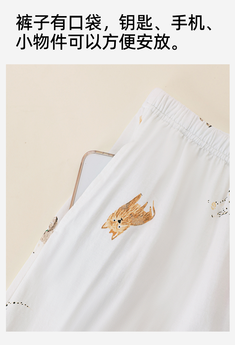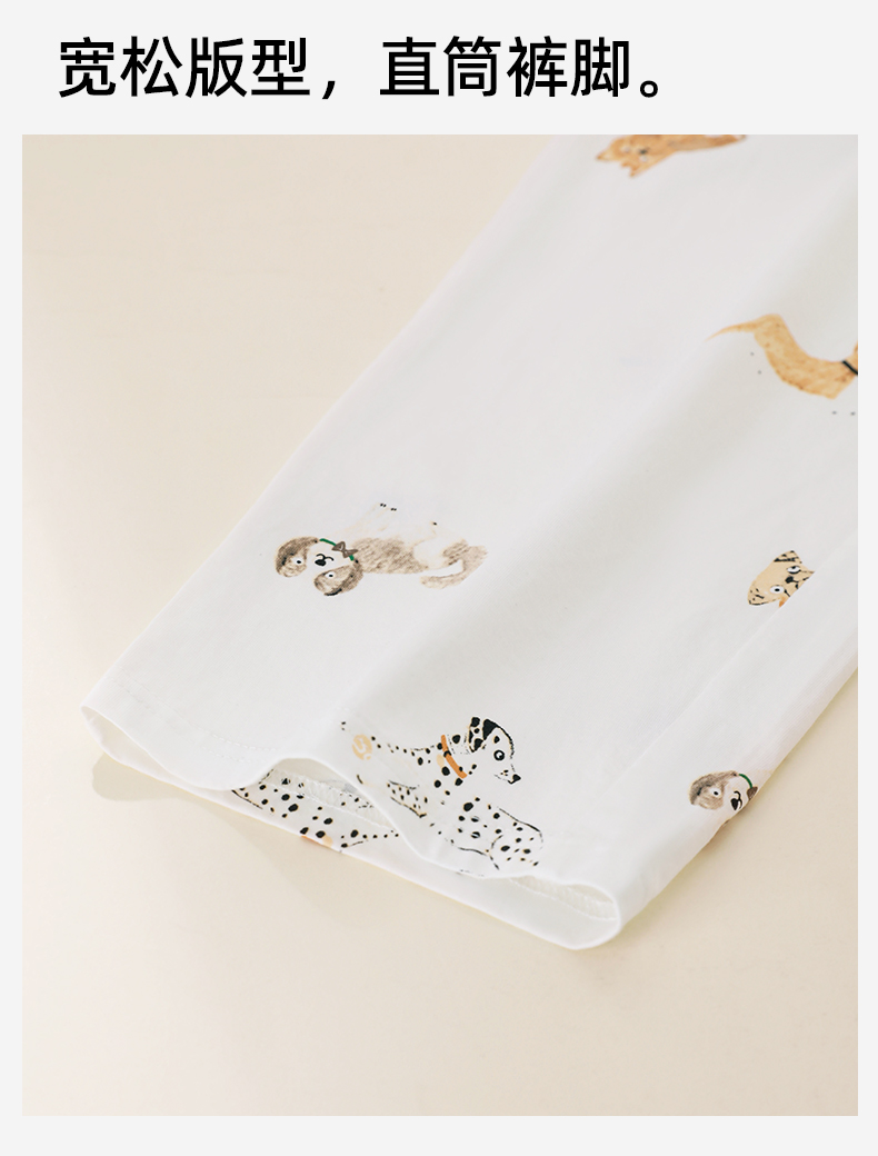 【带杯垫】熳洁儿 纯棉女士家居服短袖长裤套装卡通动物印花25263215