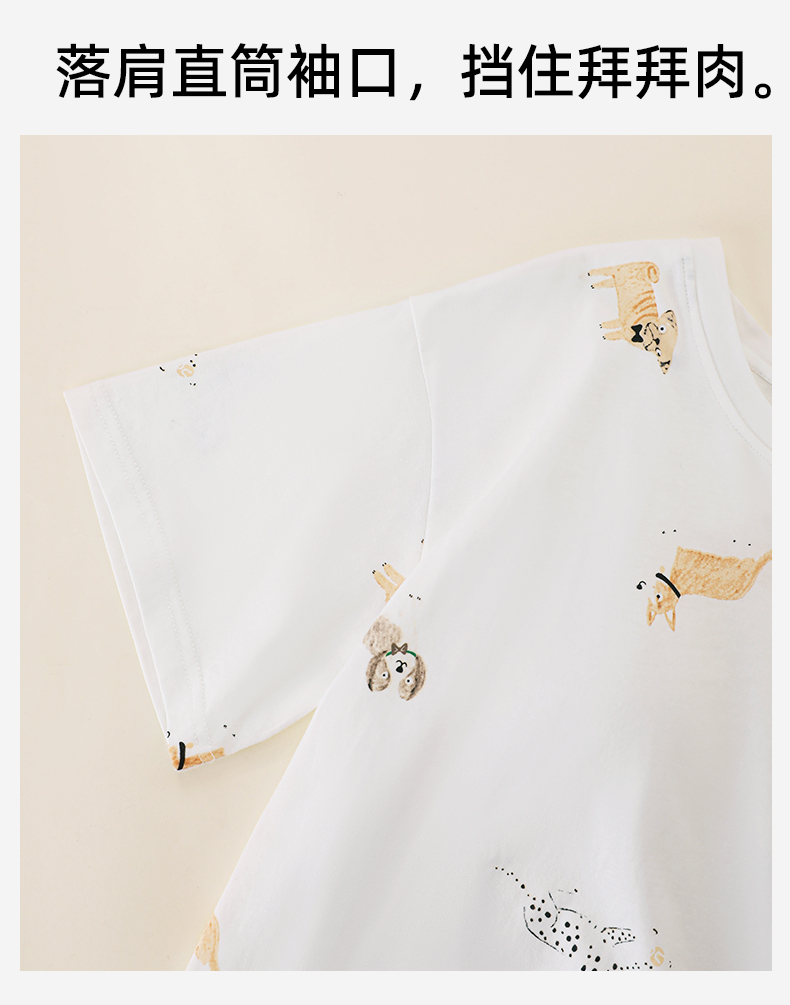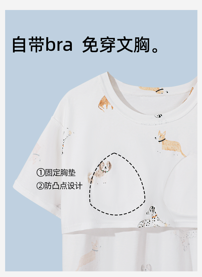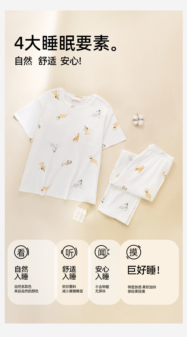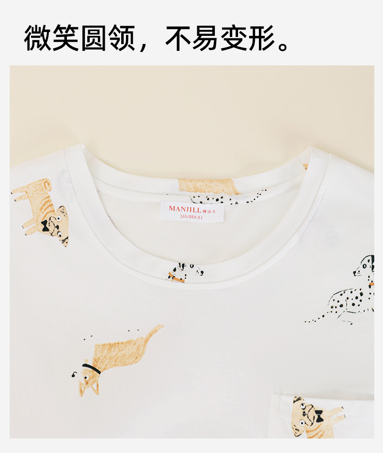 【带杯垫】熳洁儿 纯棉女士家居服短袖长裤套装卡通动物印花25263215