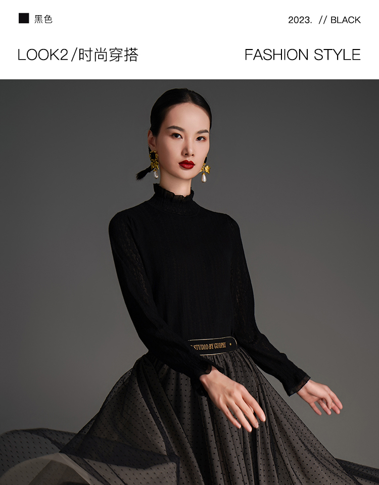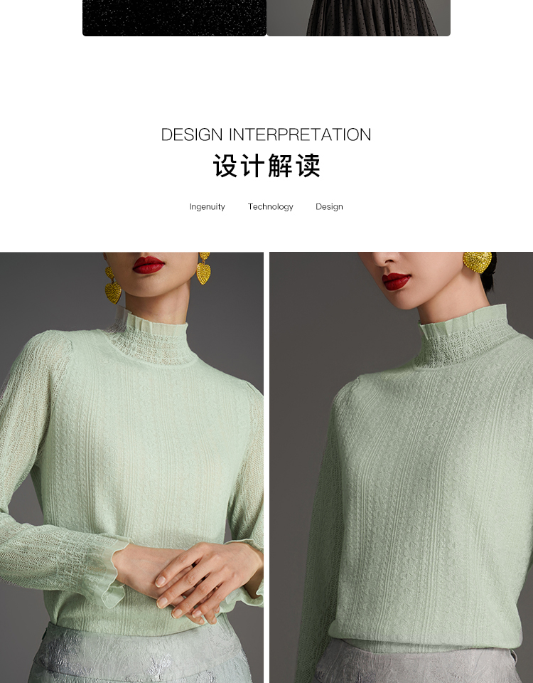 RSG2023郭培成衣品牌原创早秋浪漫荷叶边修身针织衫