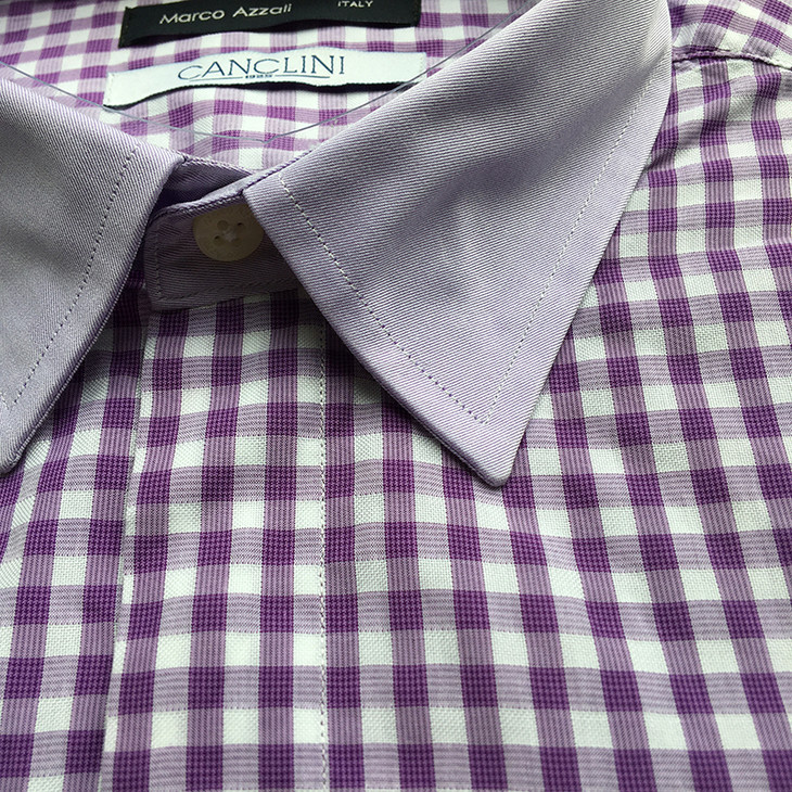 Marco Azzali 紫色小格子CANCLINI面料长袖衬衫 C3507A00