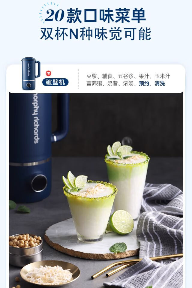英国摩飞morphy 多功能破壁豆浆机(蓝色)