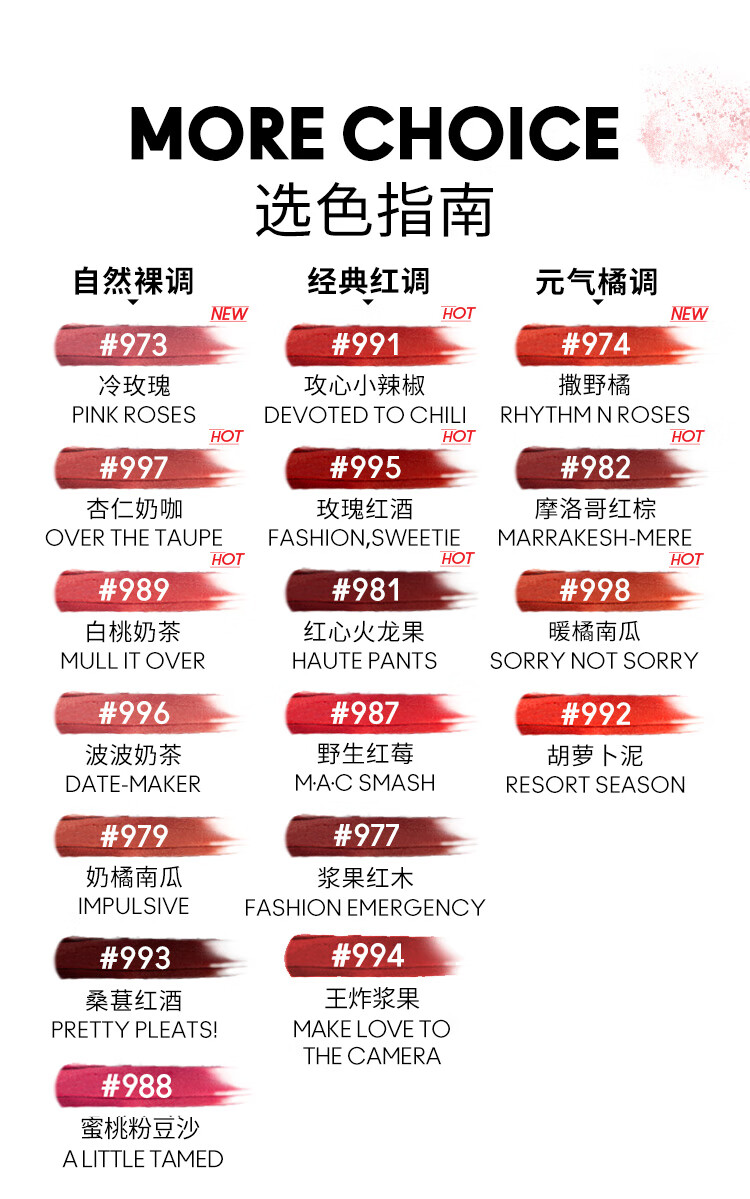 MAC魅可丝缎柔雾液体唇膏 991#997#998