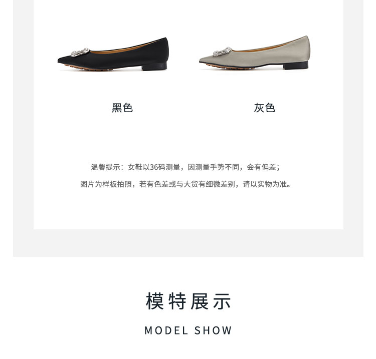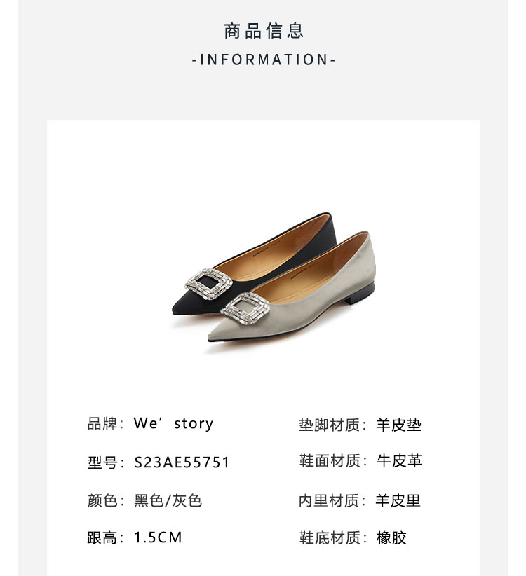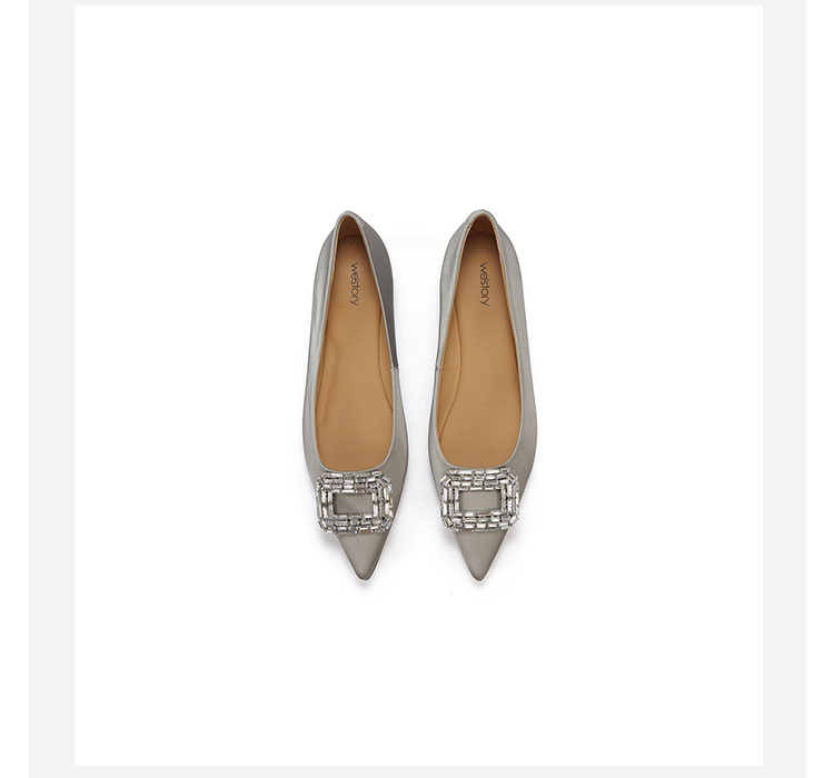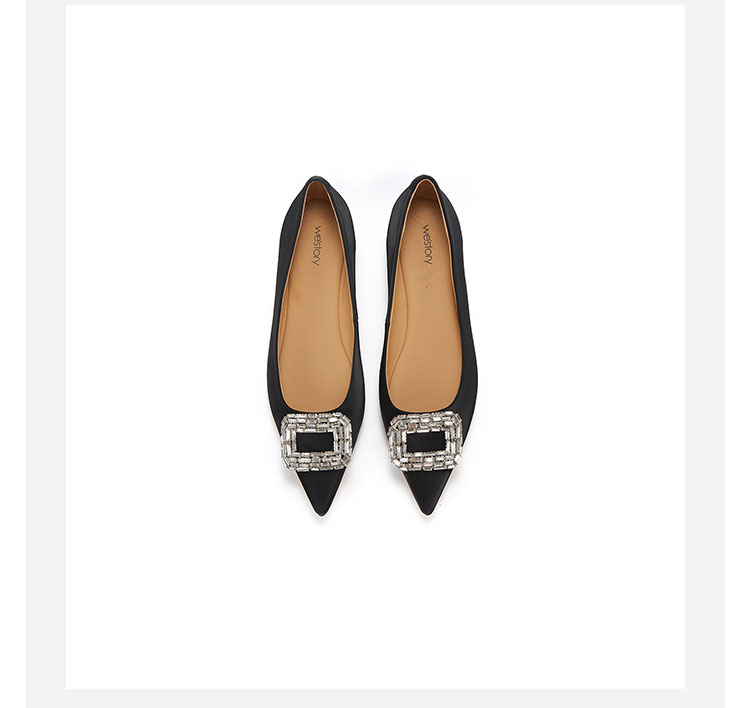【23年春季新款】气质尖头平底鞋水钻方扣舒适上班一脚蹬女单鞋55751