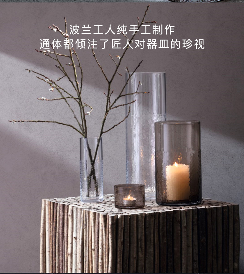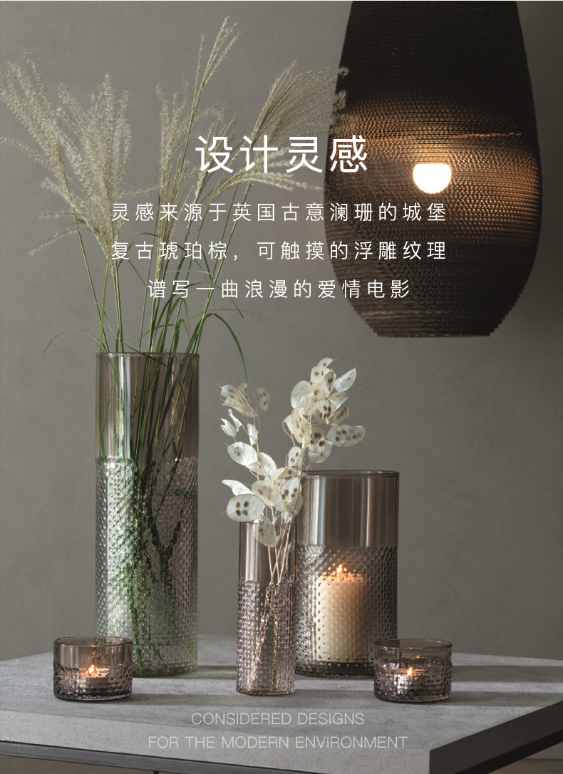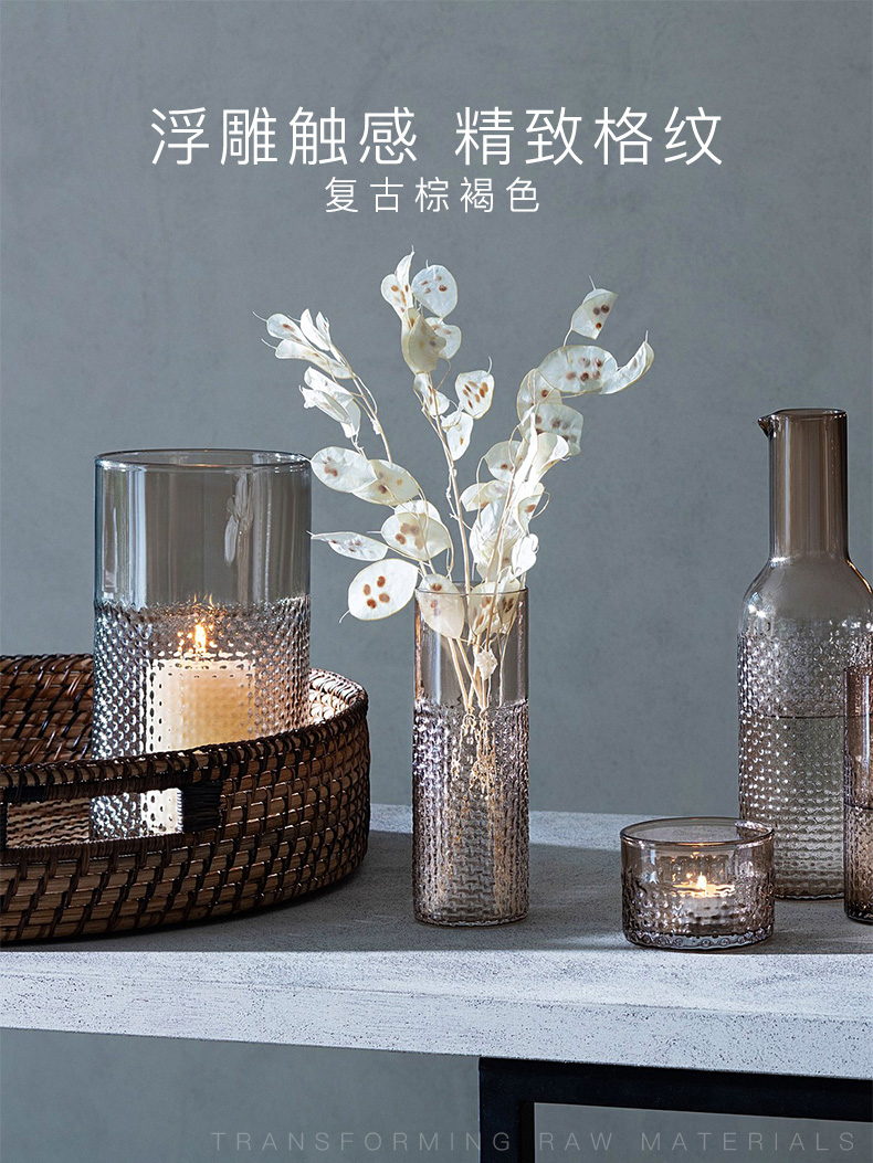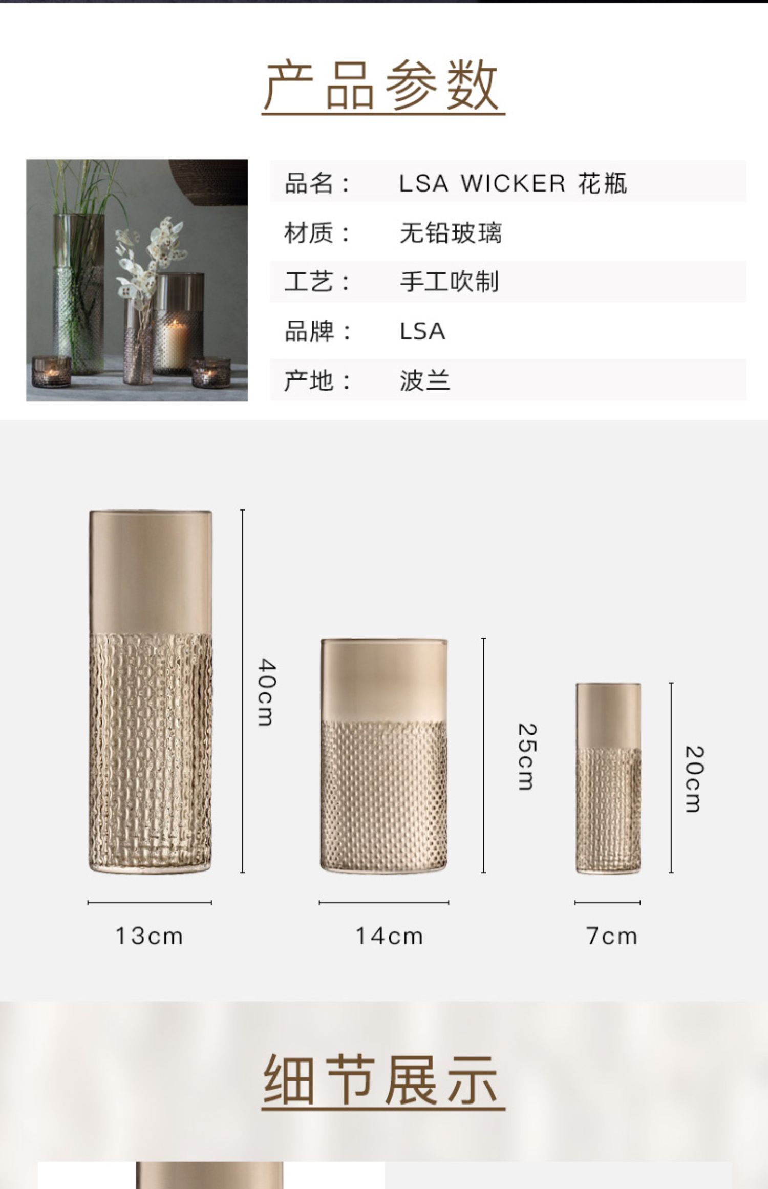 LSA Wicker 手工玻璃花瓶创意复古灰褐色北欧客厅插花花瓶摆件水培花瓶