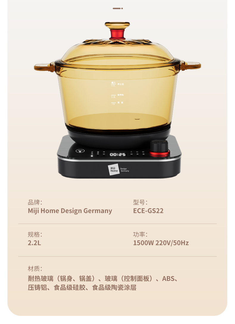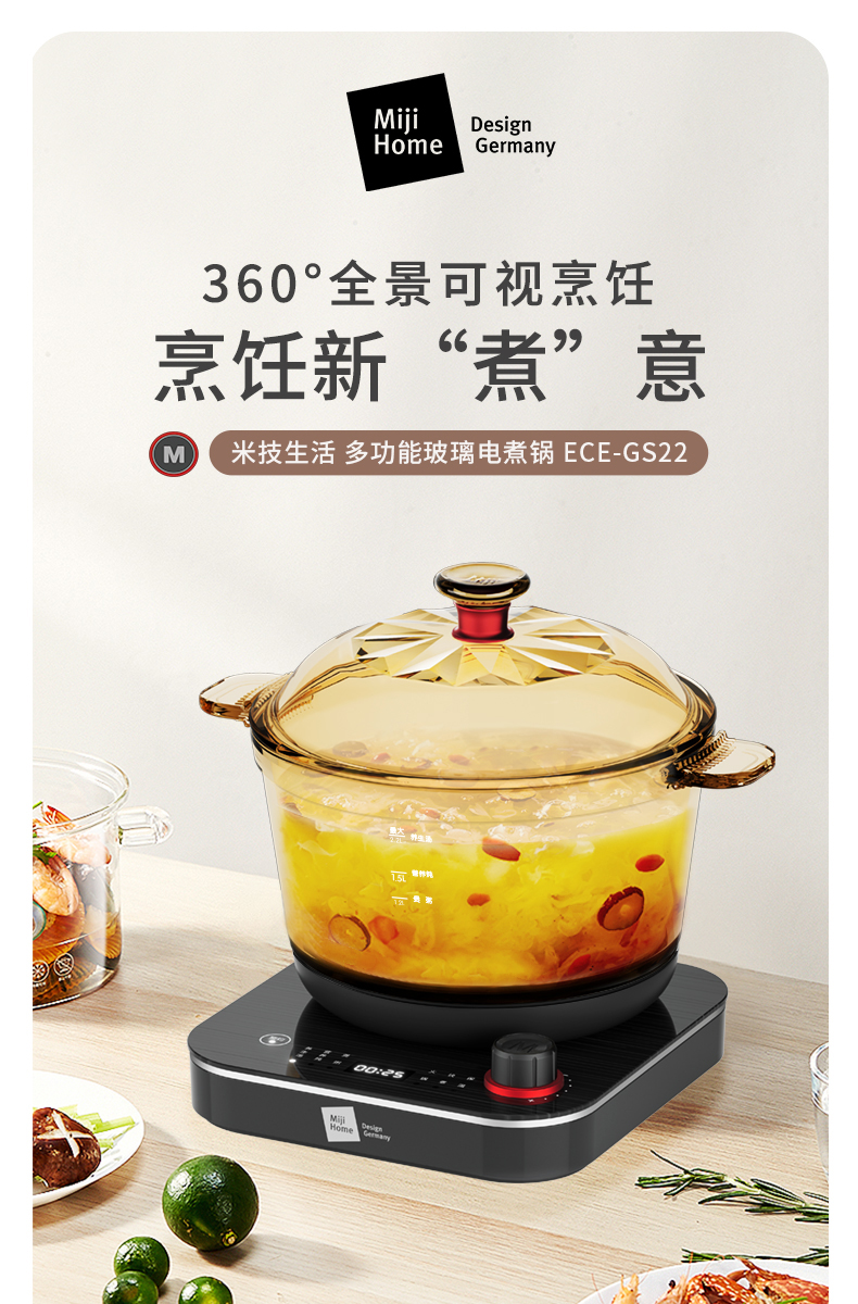 ECE-GS22米技 多功能玻璃电煮锅-S
