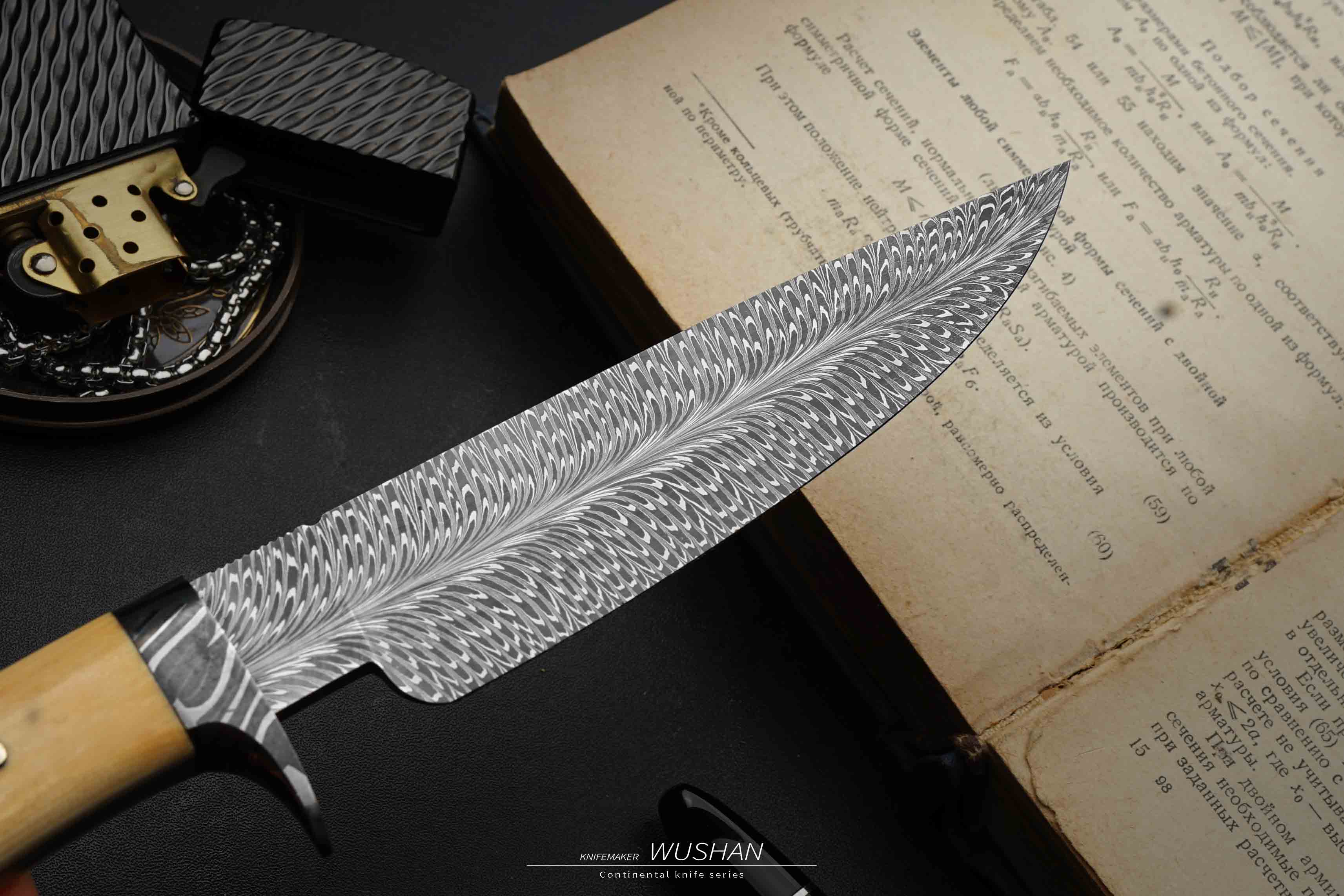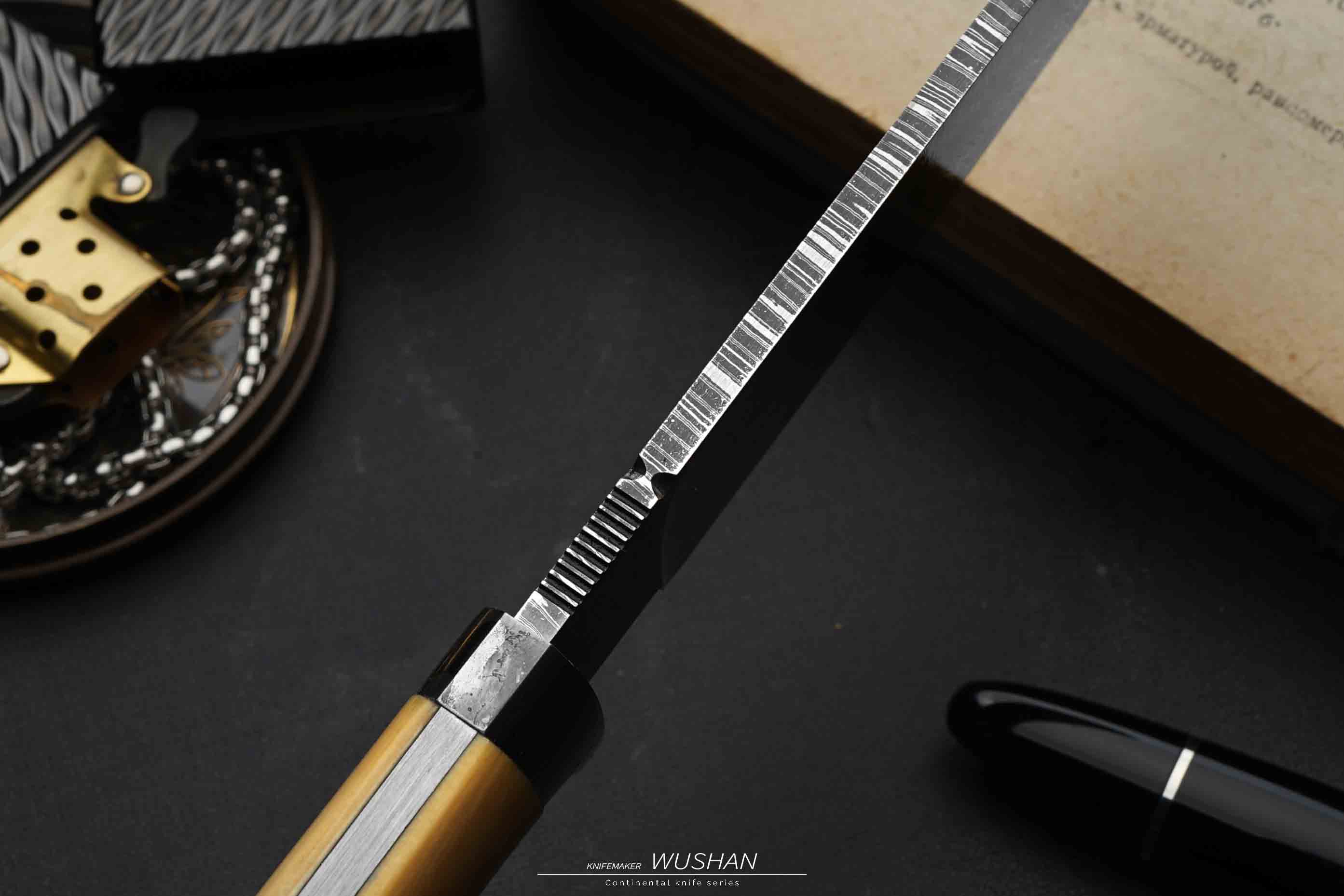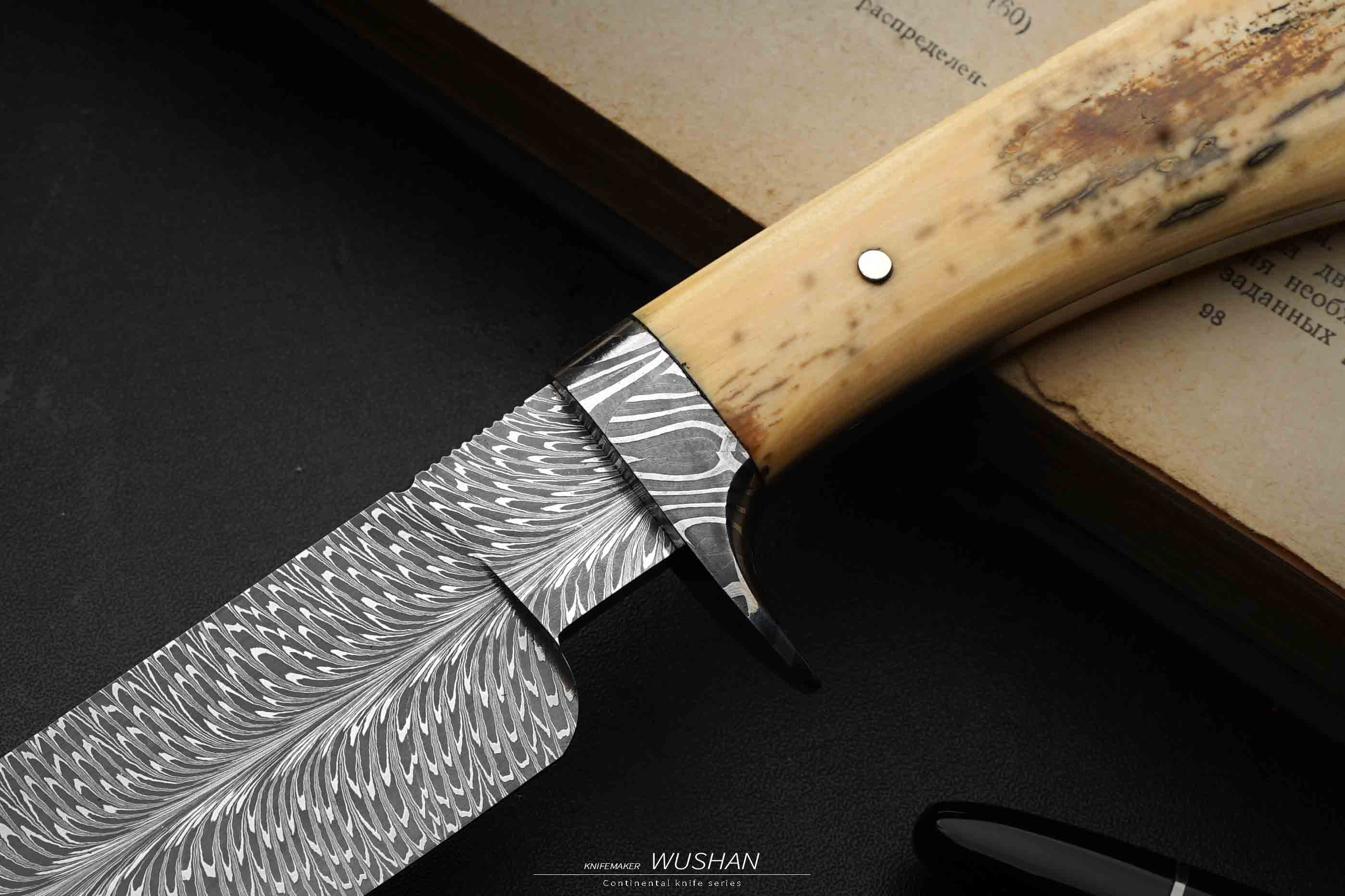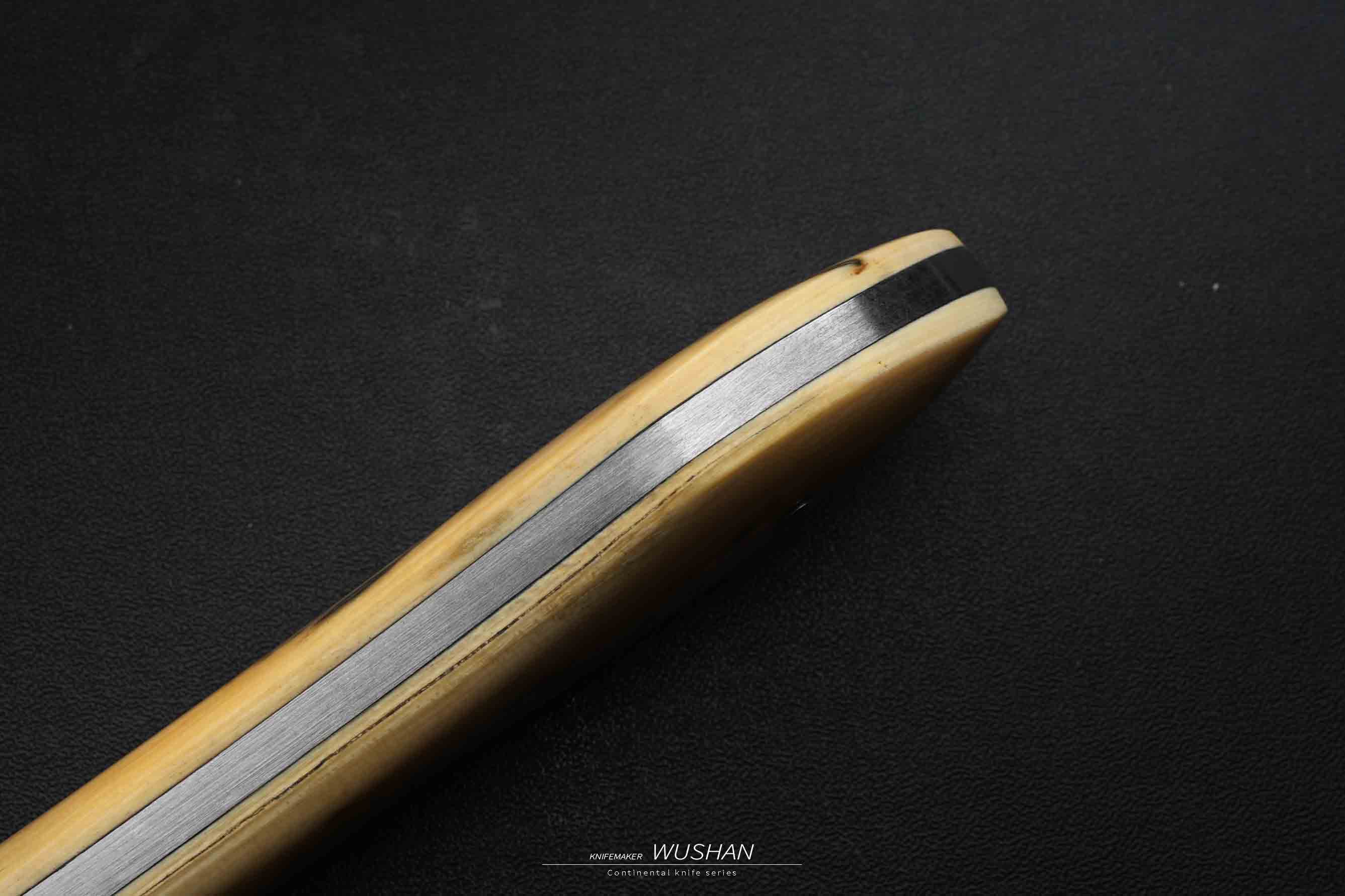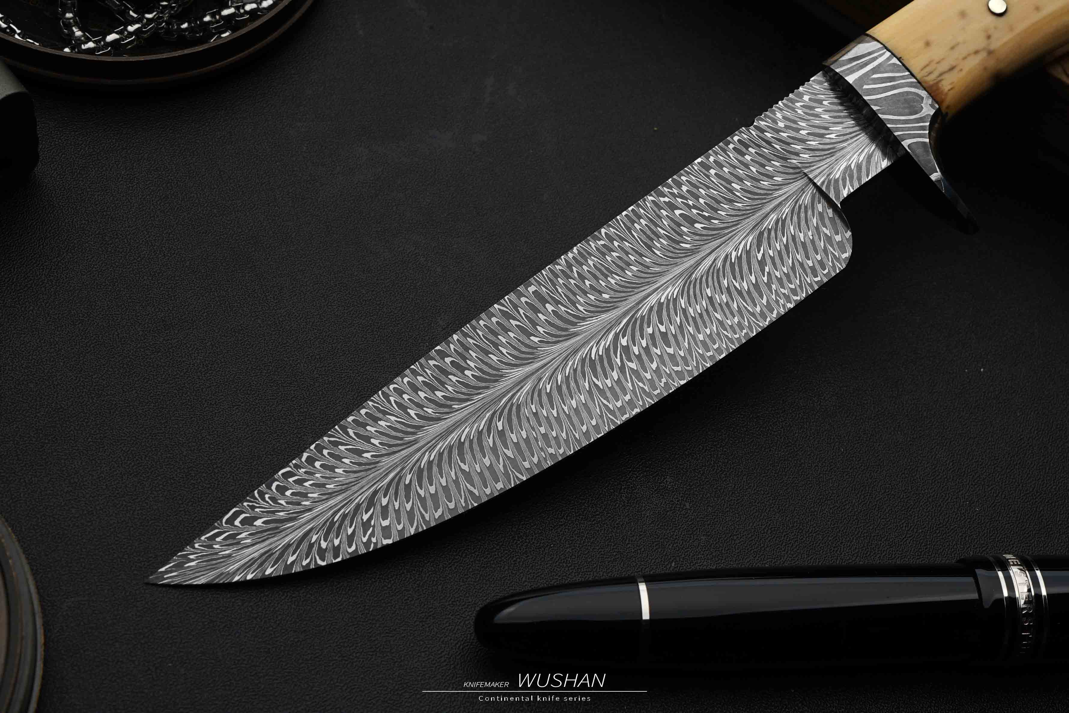 新款加长,整块冰料猛犸柄,我们经典的羽毛大马,黑白灰三色对比度高,纹路栩栩如生,没有丝毫变形