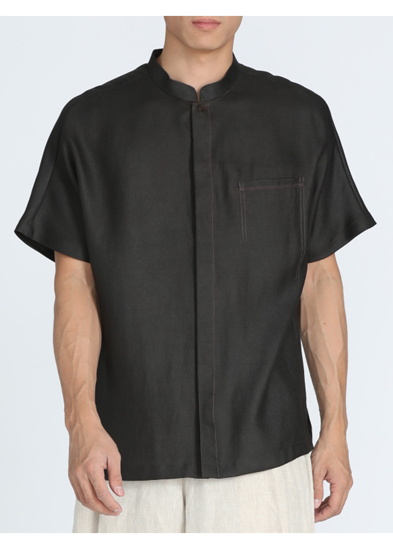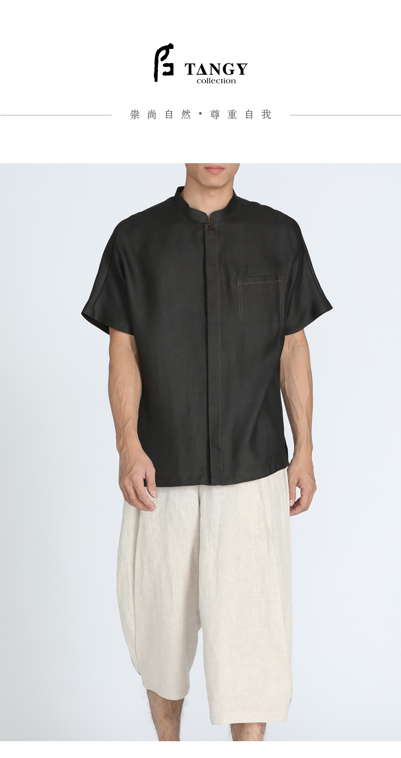 TANGY Collection/天意精品春夏新品原创设计中式立领莨绸短袖衬衫