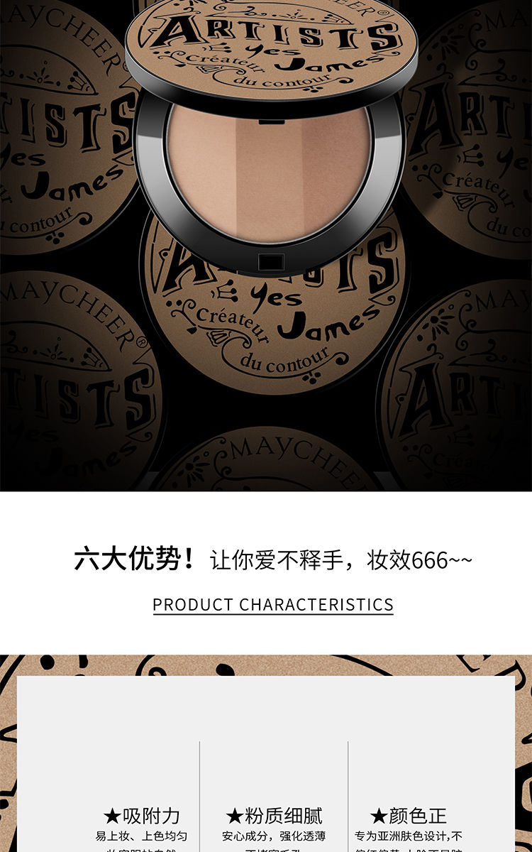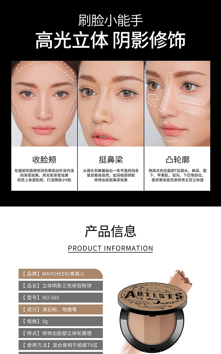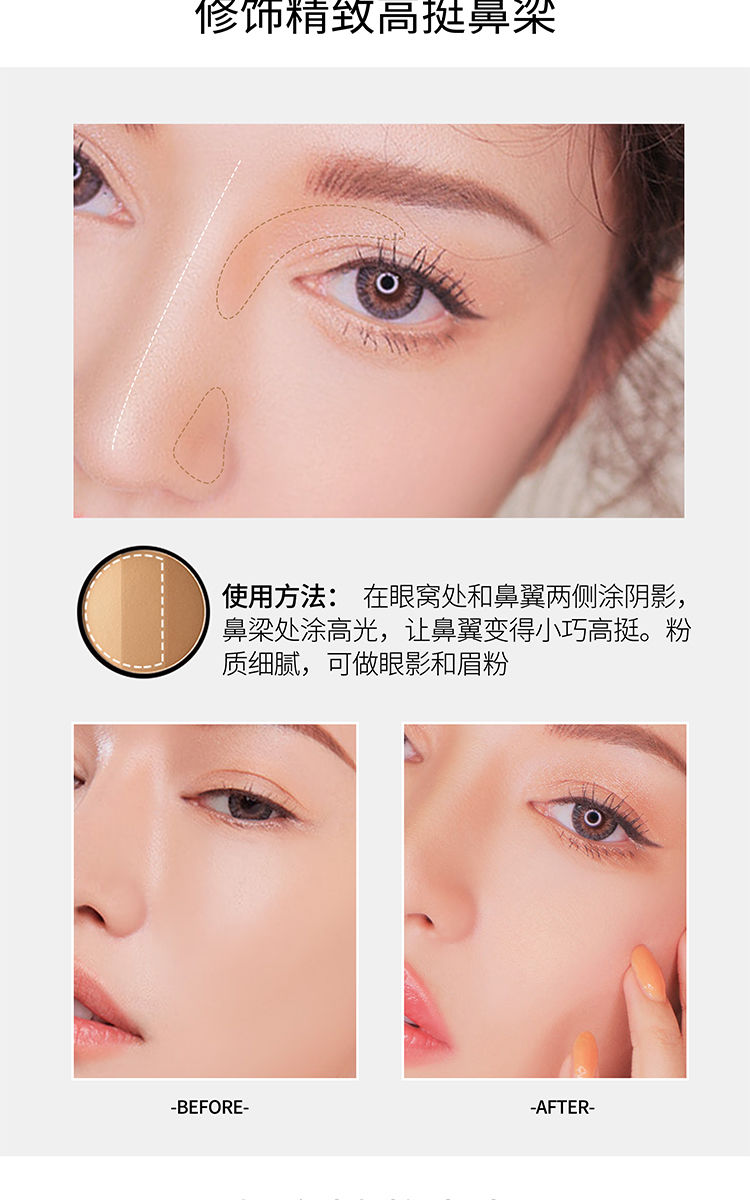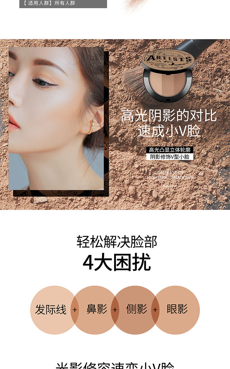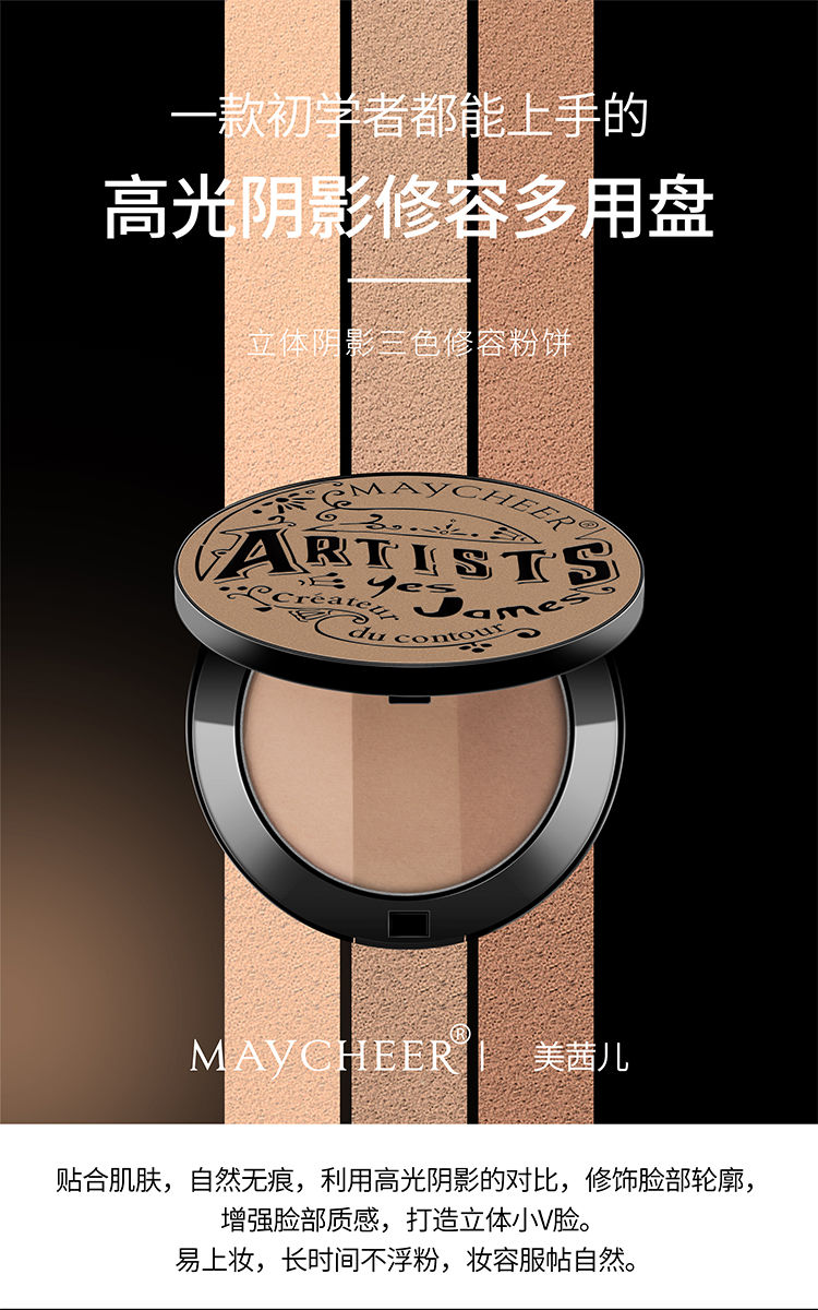 美茜儿立体阴影修容粉饼高光侧影鼻影V脸卧蚕修容盘学生 初学者