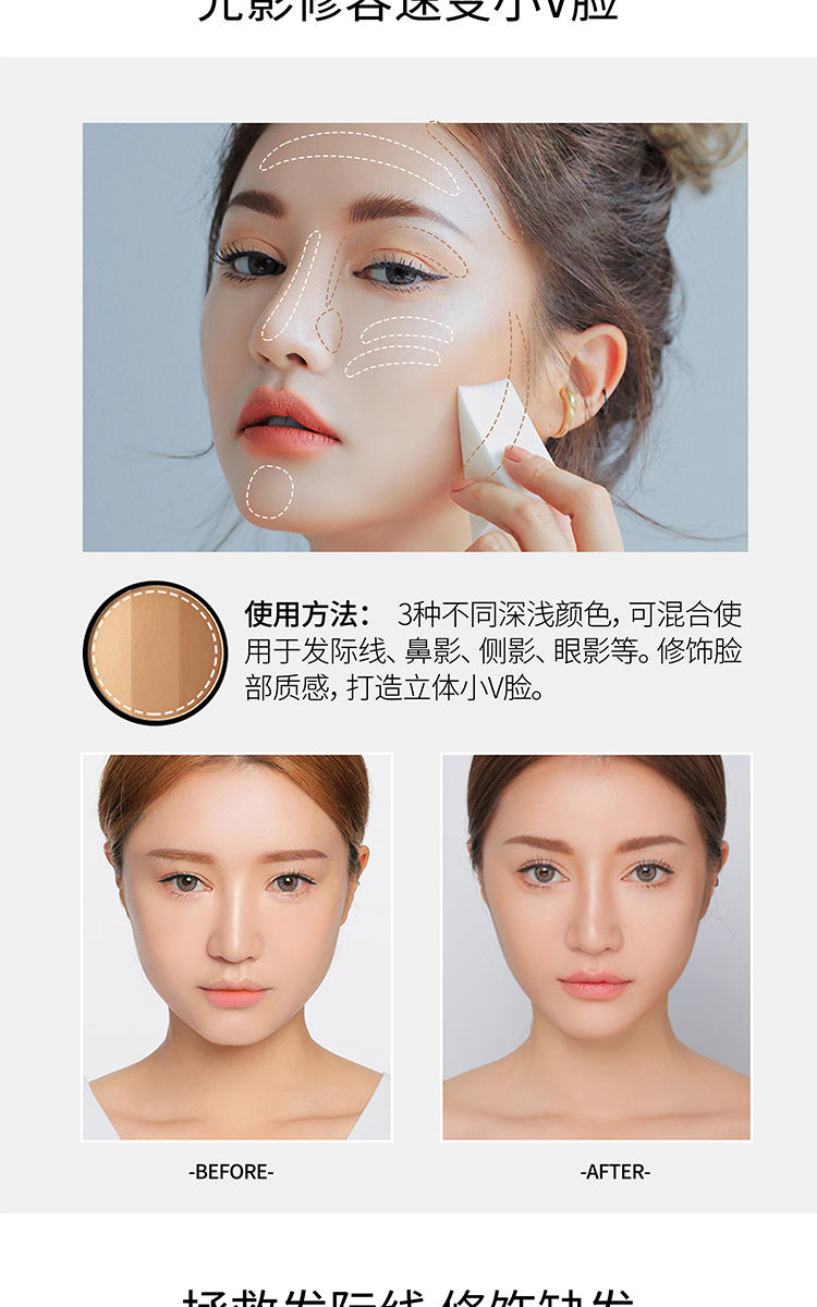 李佳琦推荐三色修容粉阴影鼻高光两用一体盘瘦脸发际线粉平价学生