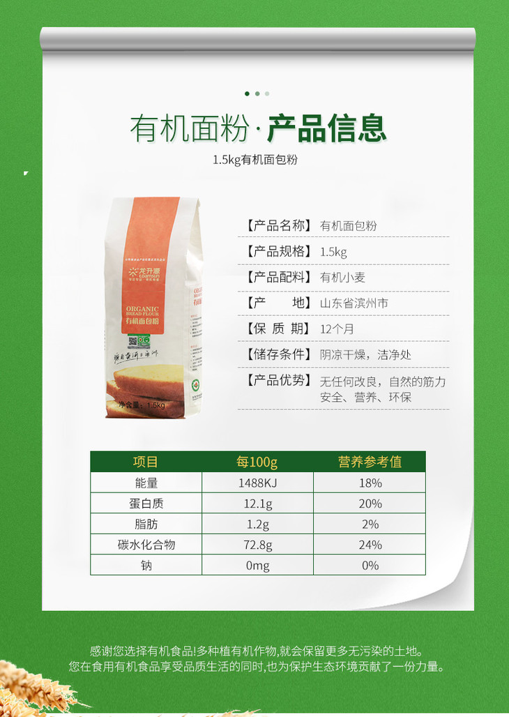 有机面包粉 1.5kg【面包爱好者】