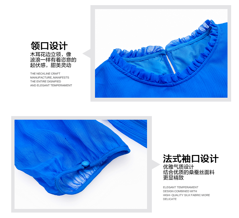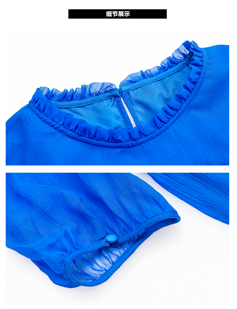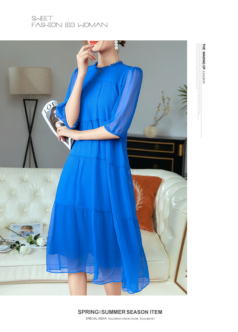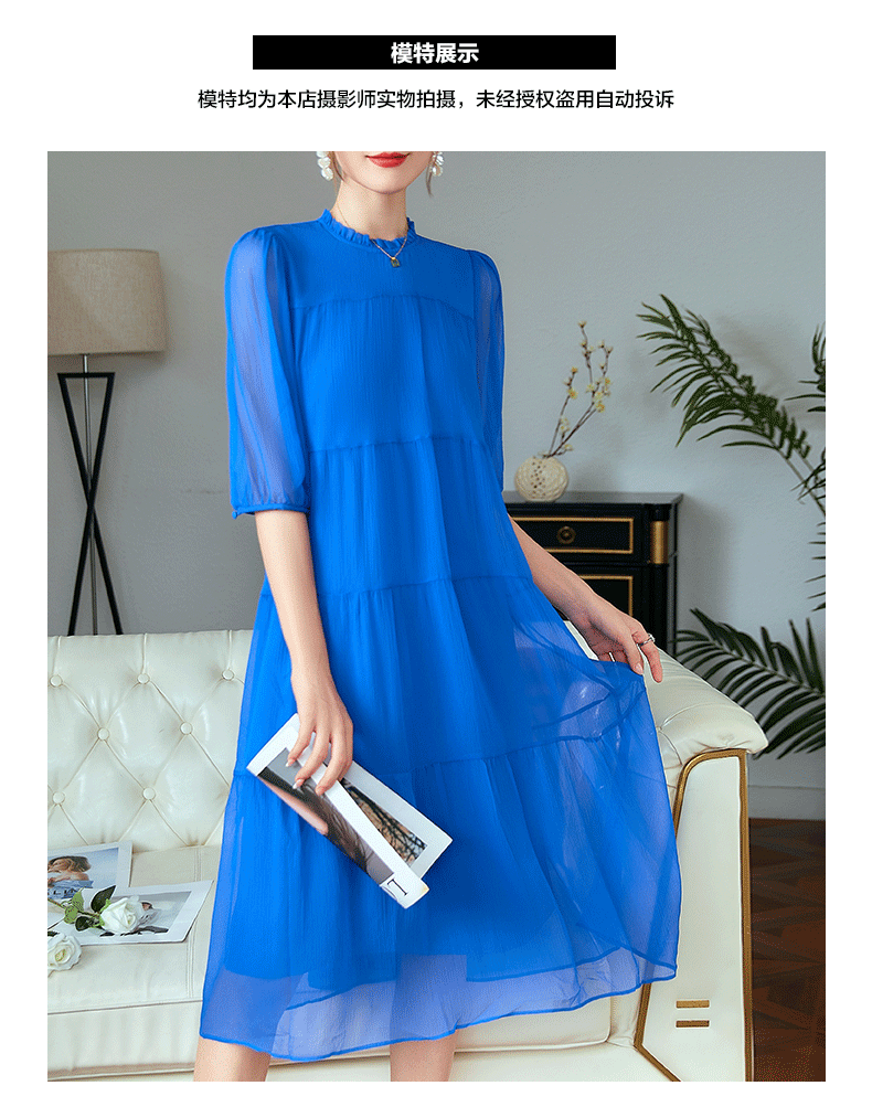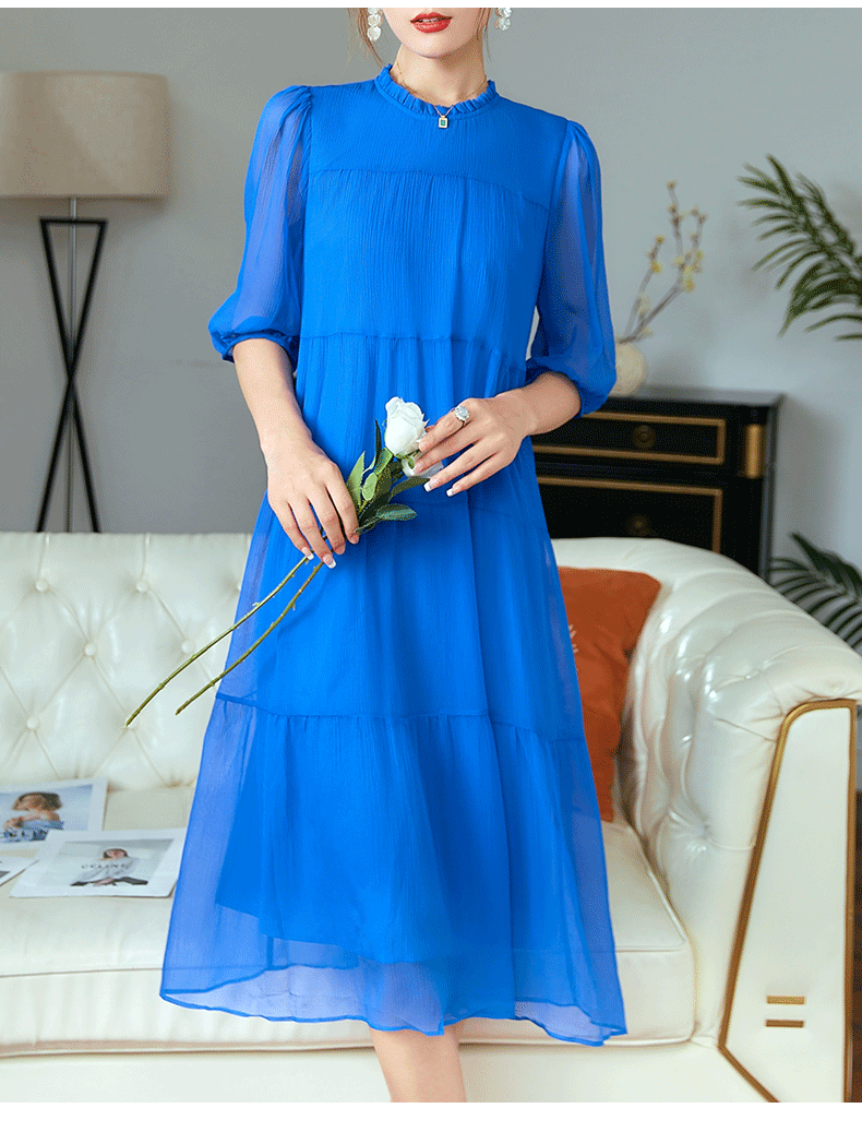 法式气质,新款优雅名媛桑蚕丝克莱因蓝真丝连衣裙SS-002