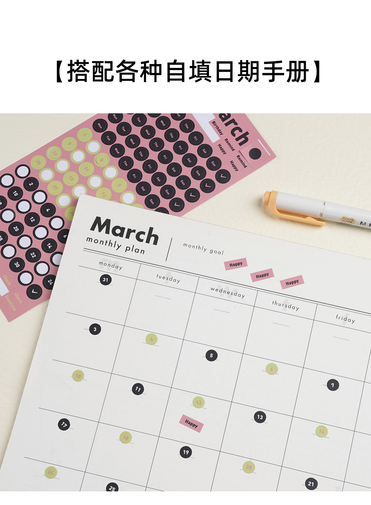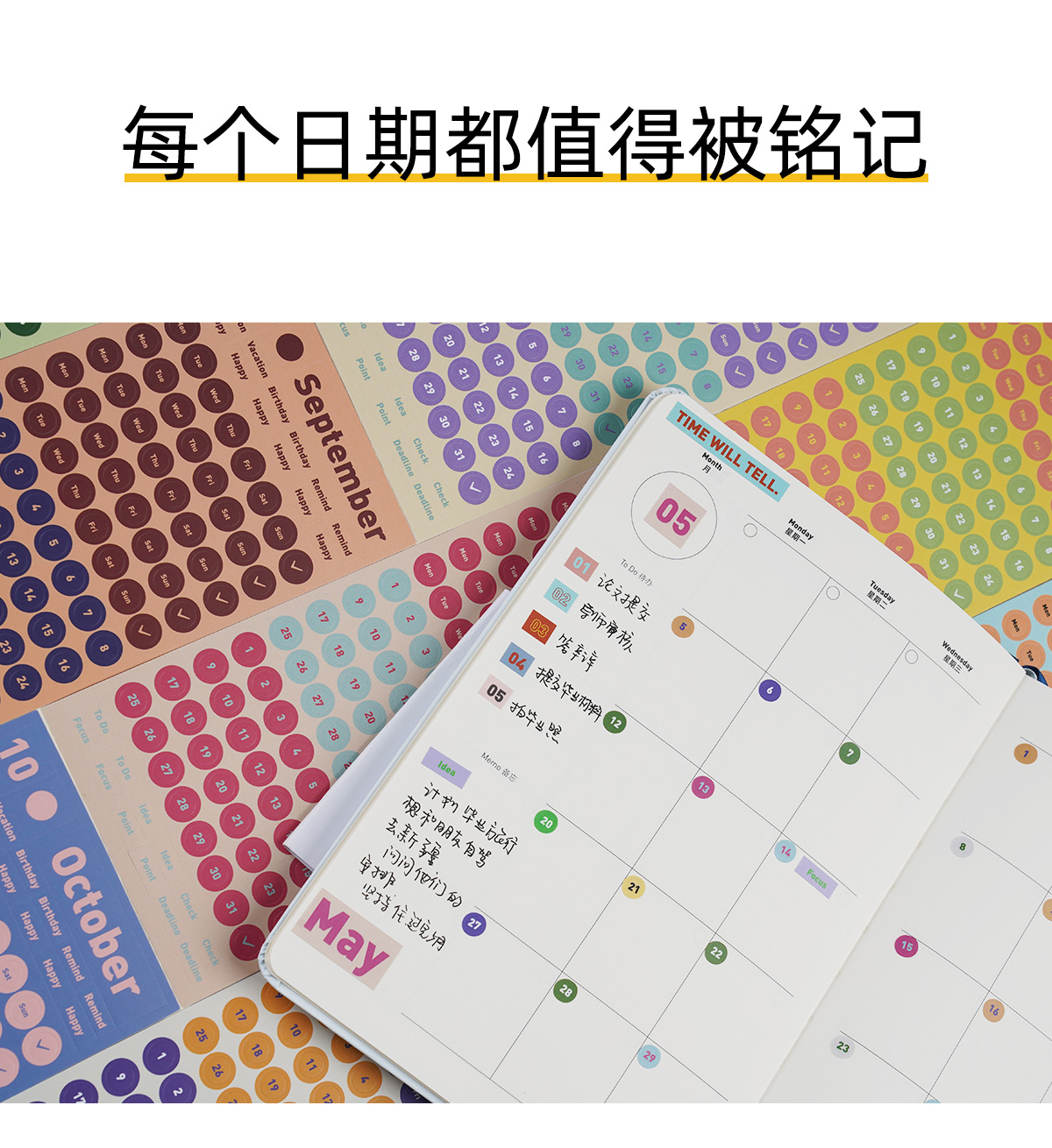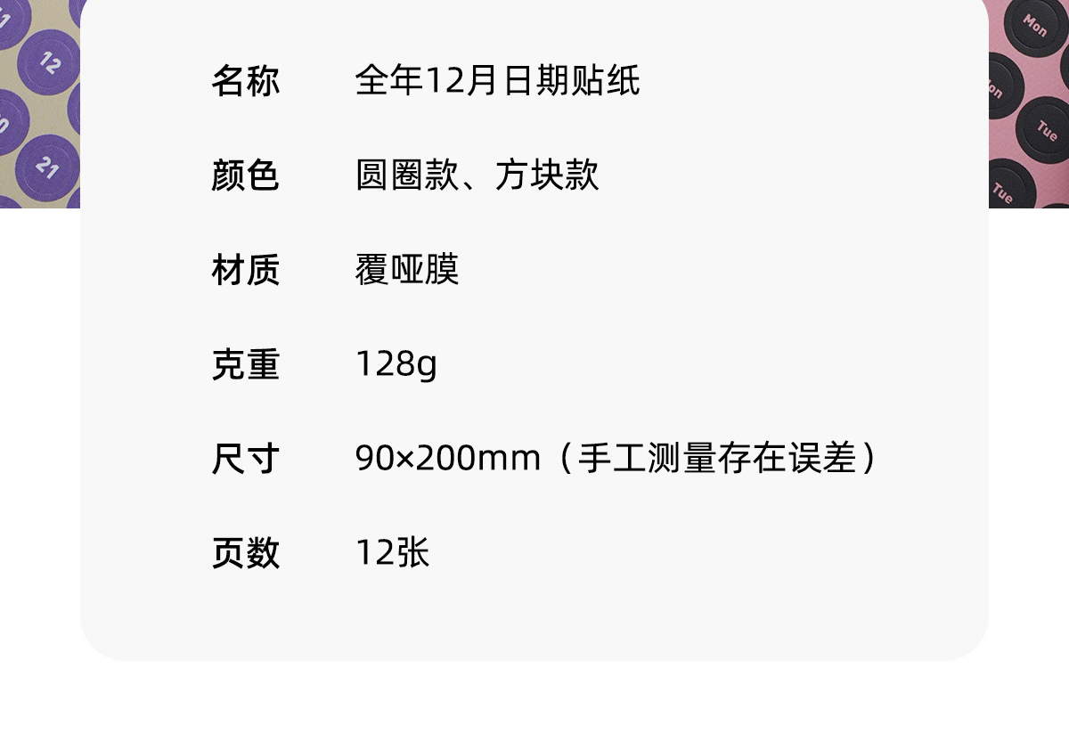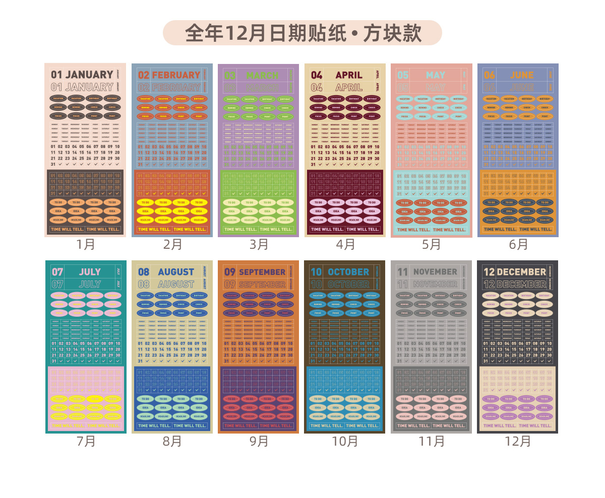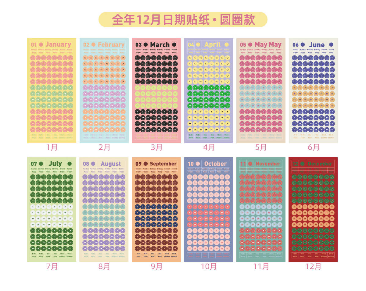 趁早全年12月日期贴纸数字字母英文语录不干胶装饰贴日期日历索引贴纸