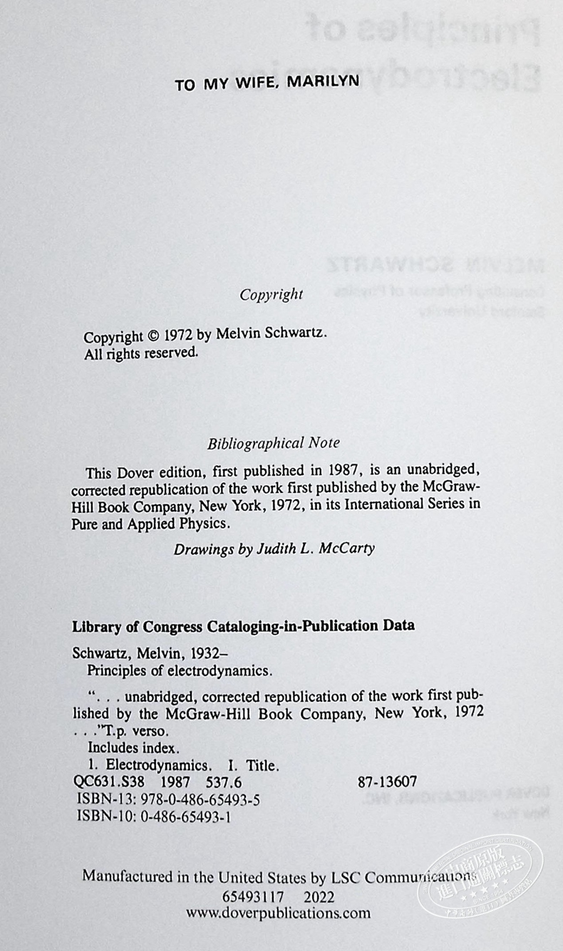 【中商原版】梅尔文 施瓦茨 电动力学原理 诺贝尔物理学奖 英文原版 Principles of Electrodynamics Melvin Schwartz