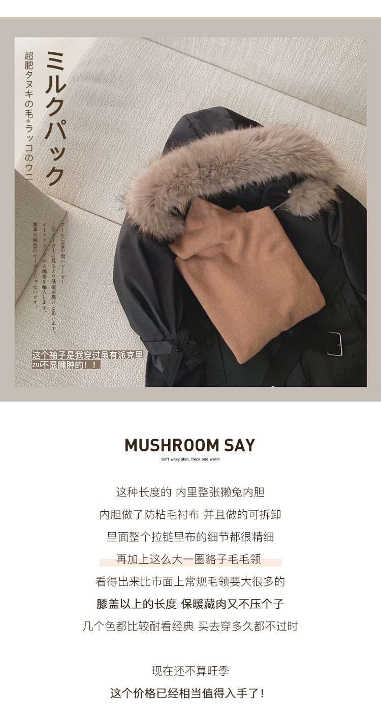 金蘑菇菇【牛乳派克】惊喜回馈价!超肥貉子毛+獭兔内胆派克服